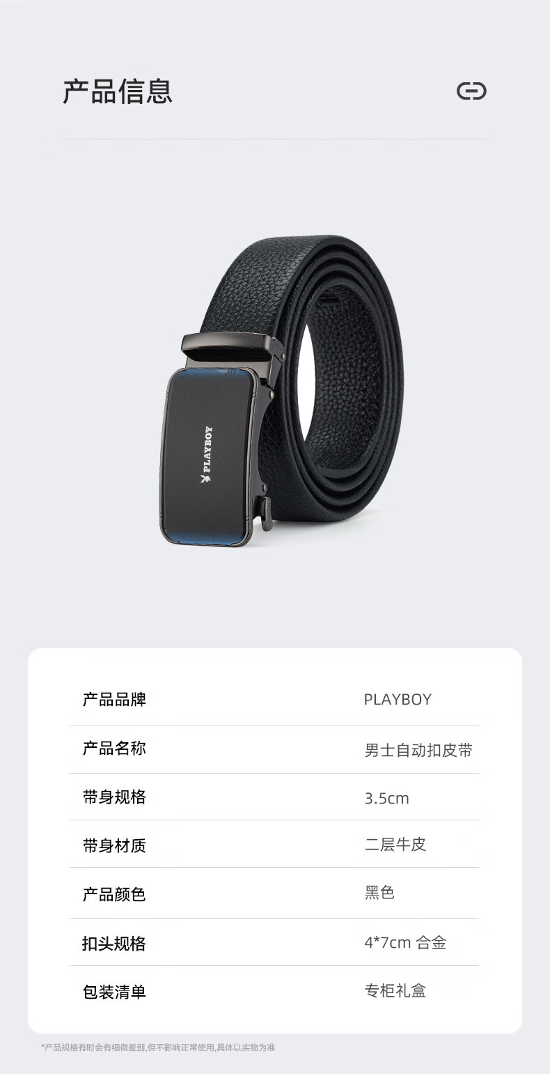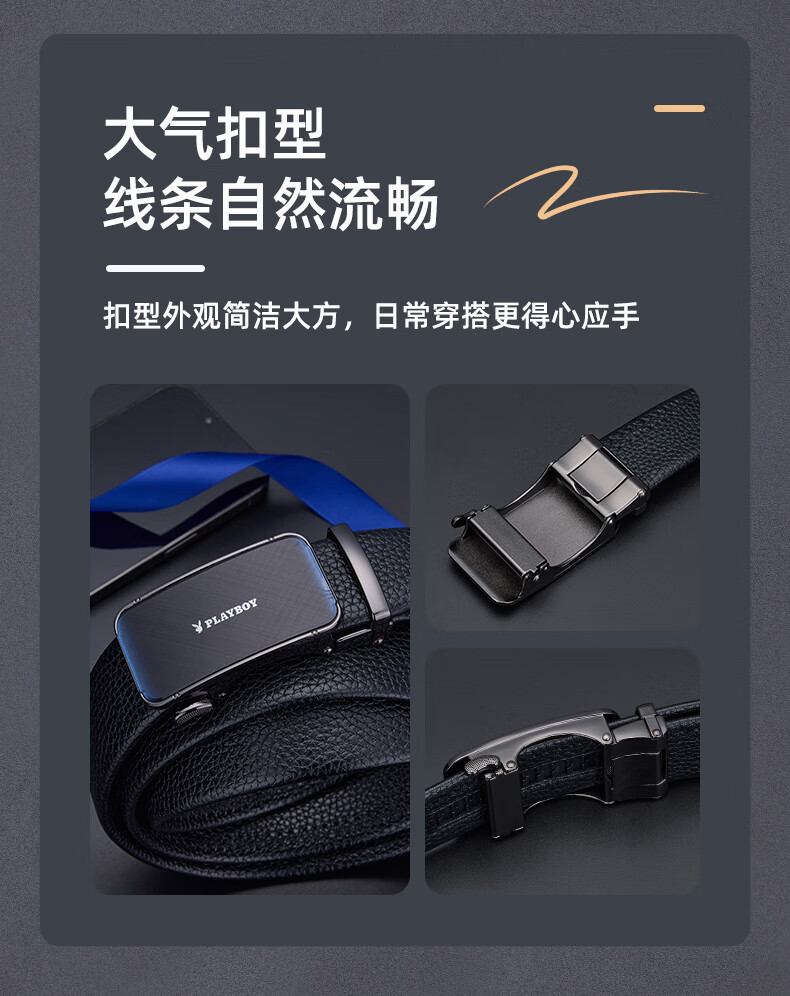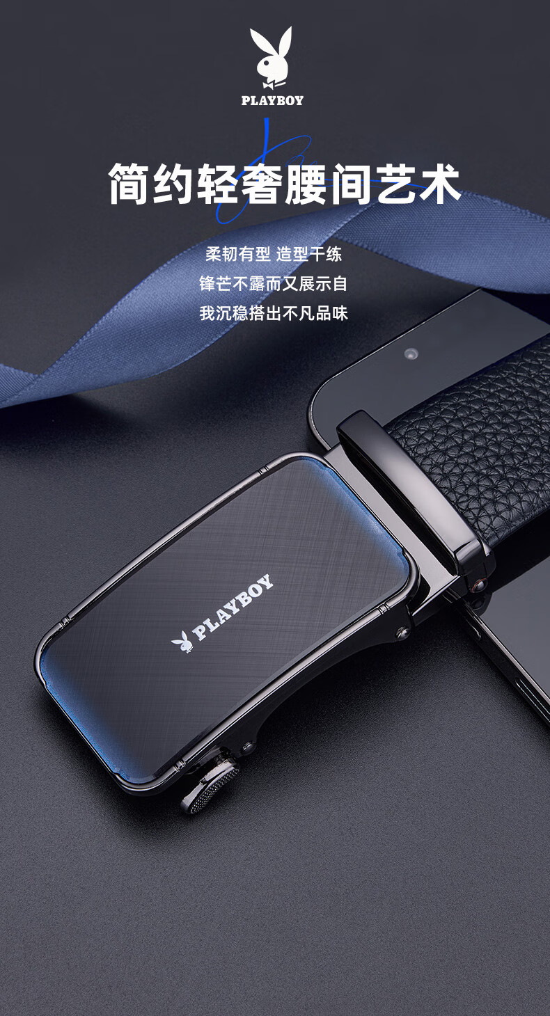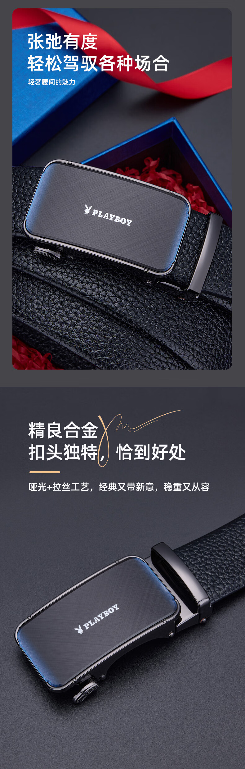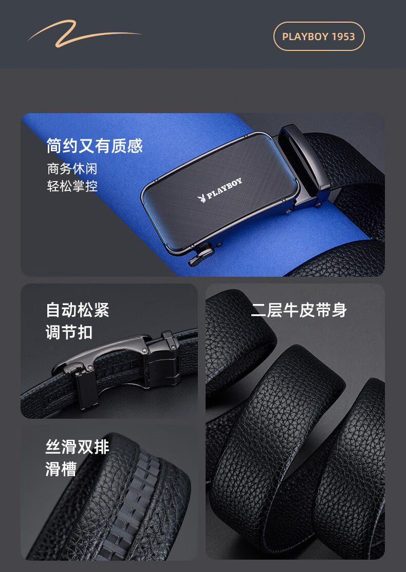 Playboy (PLAYBOY) men's belt genuine cowhide belt for young and middle-aged people with automatic buckle casual pants belt business versatile gift for boyfriend and husband
