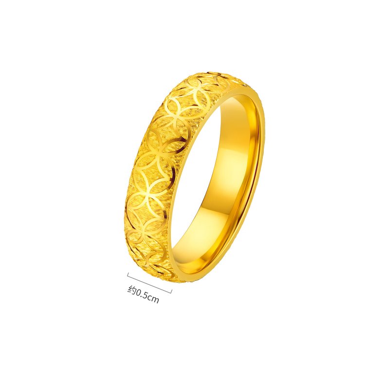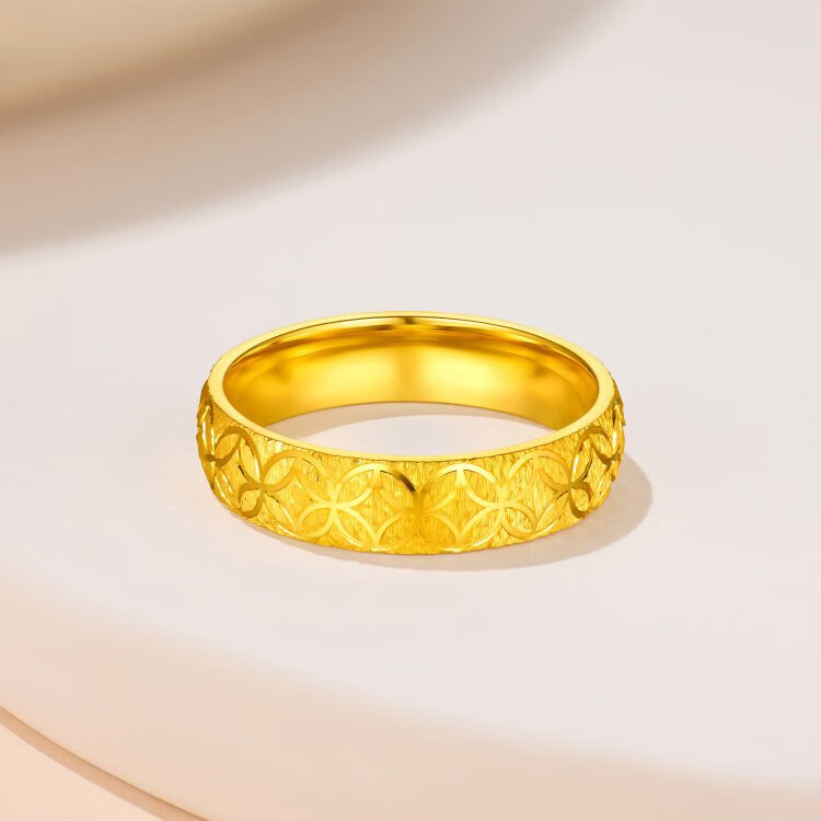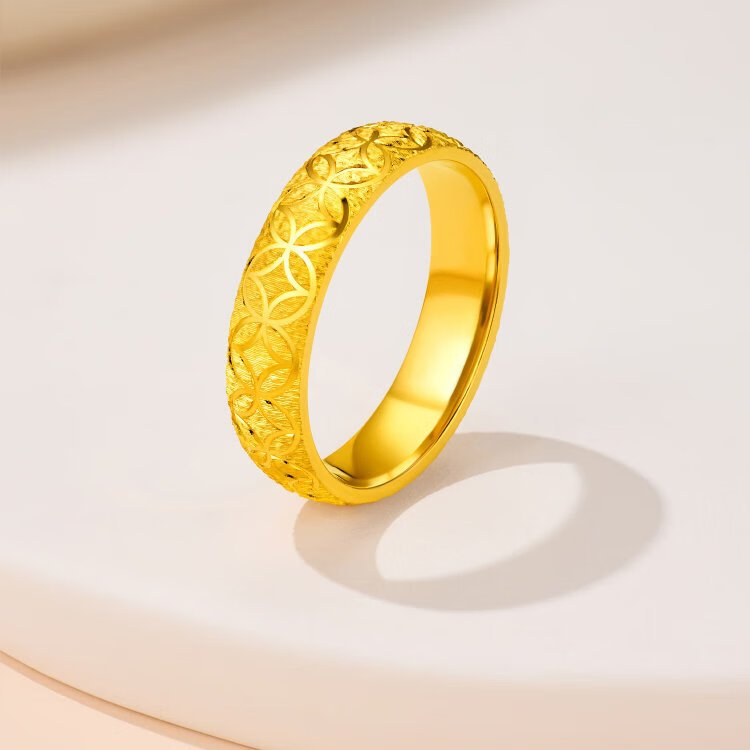 Lukfook Jewelry Gold Ring Qianduoduo Light and Shadow Gold Pure Gold Solid Copper Coin Engraving Craftsmanship Price No. 12 - About 7.20g
