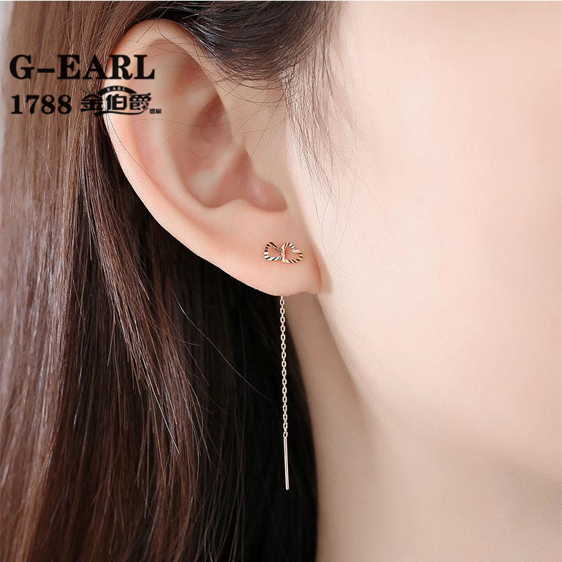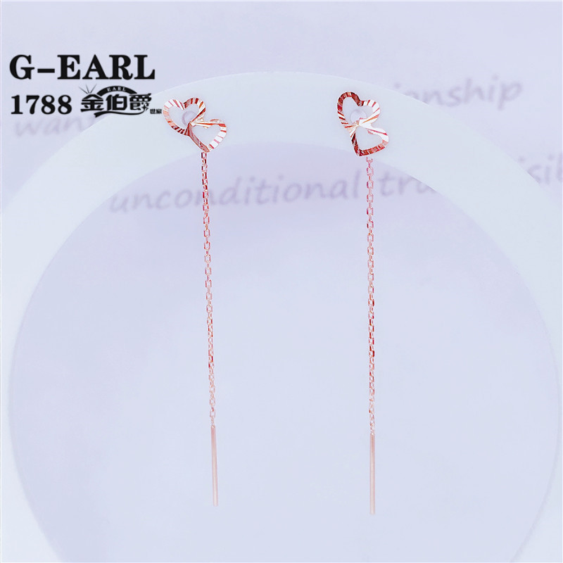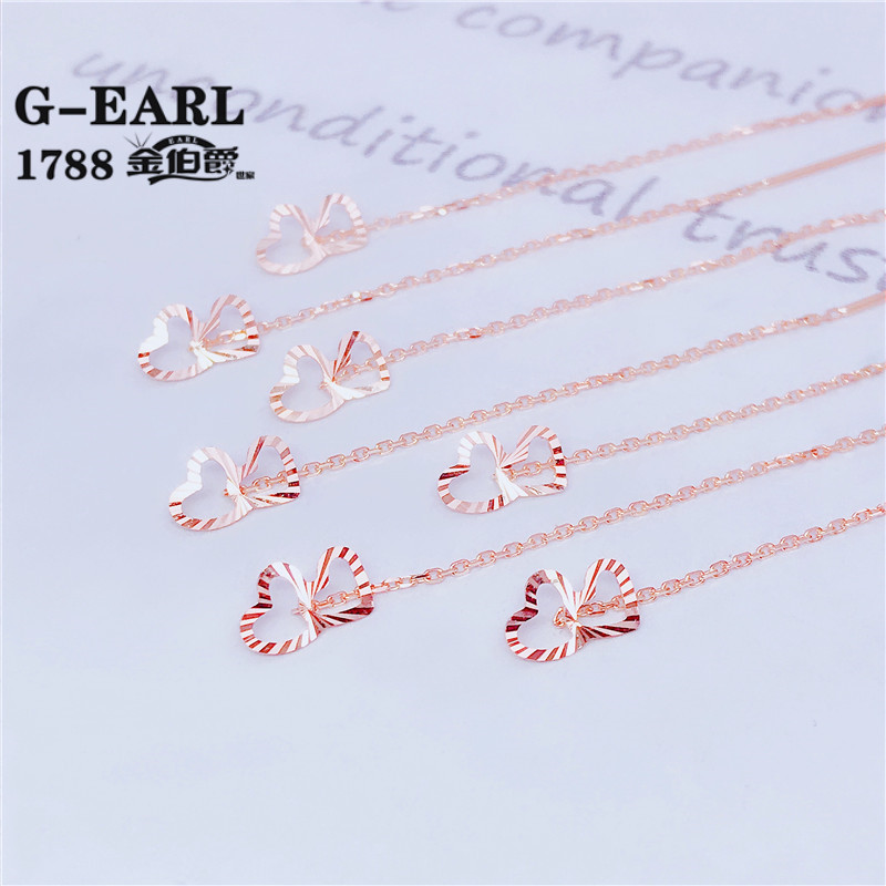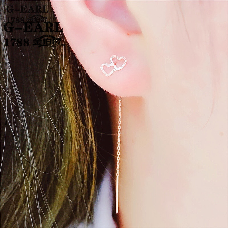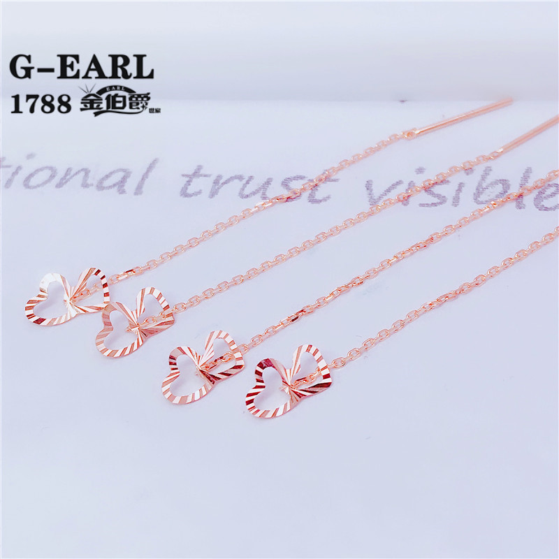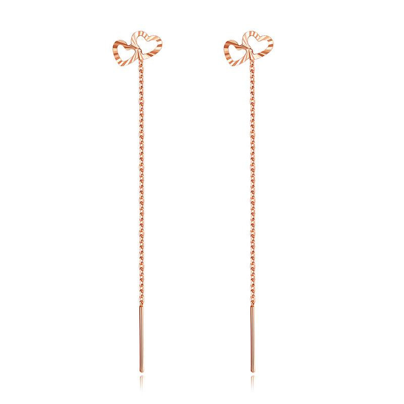 Luohe Russian Purple Gold Au585 Purple Gold Earrings for Women 14k Rose Gold Heart to Heart Chinese Valentine's Day Gift St. Ear Wire Length 4cm