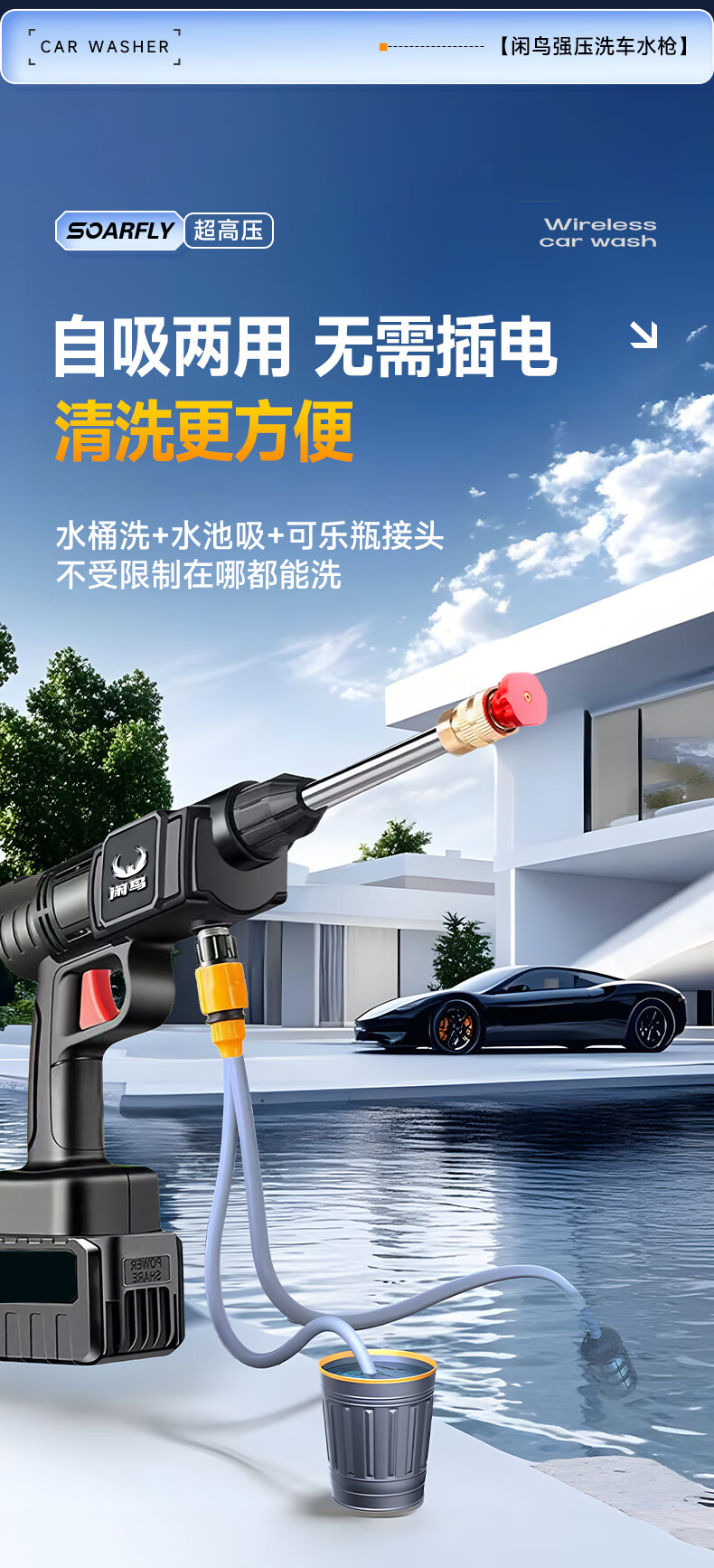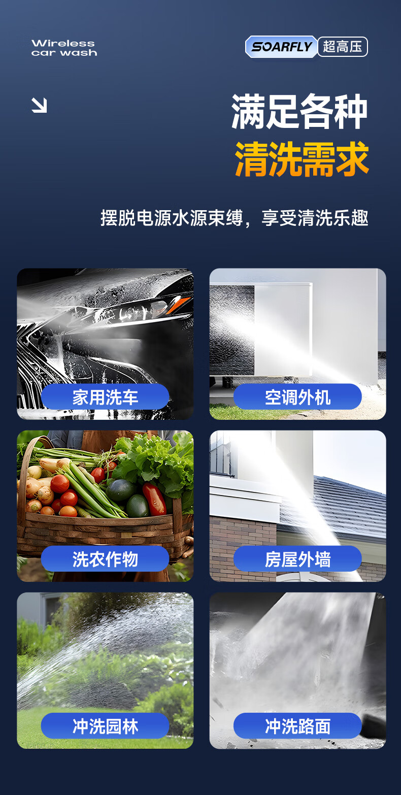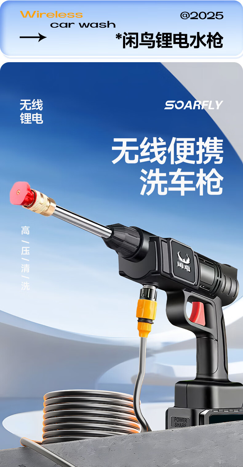 XIANNIAO wireless high-pressure water gun car washing machine household car washing artifact complete set of yard spray cleaning floor lithium battery car brush pump