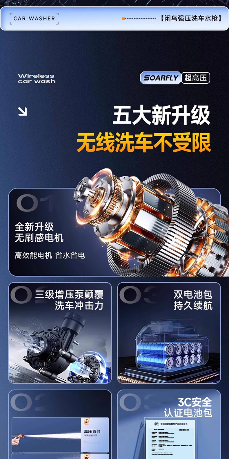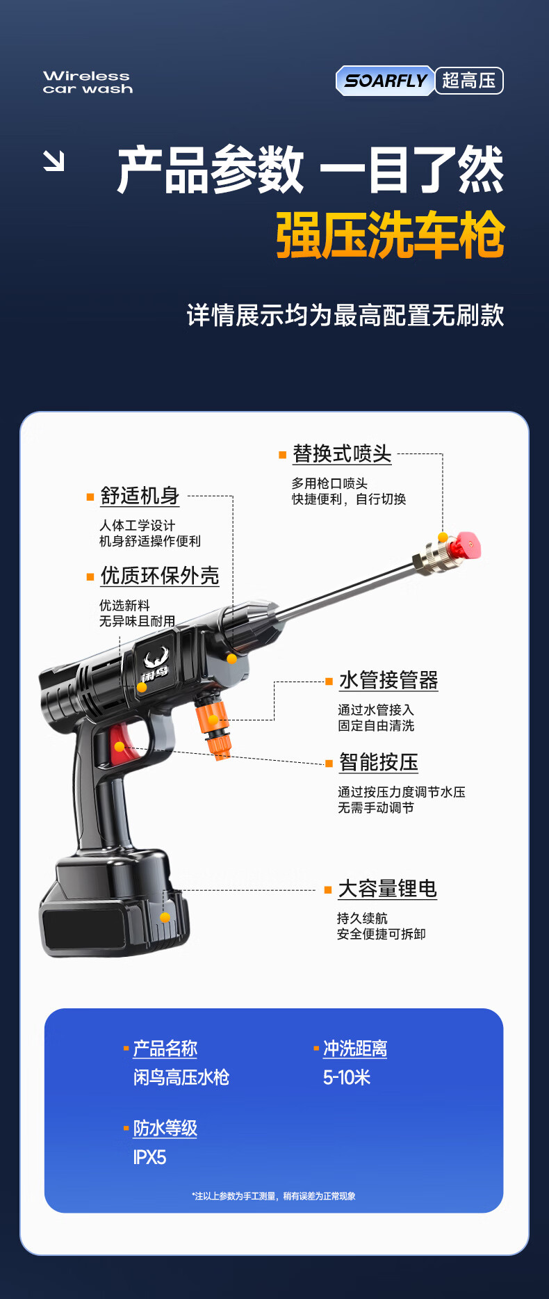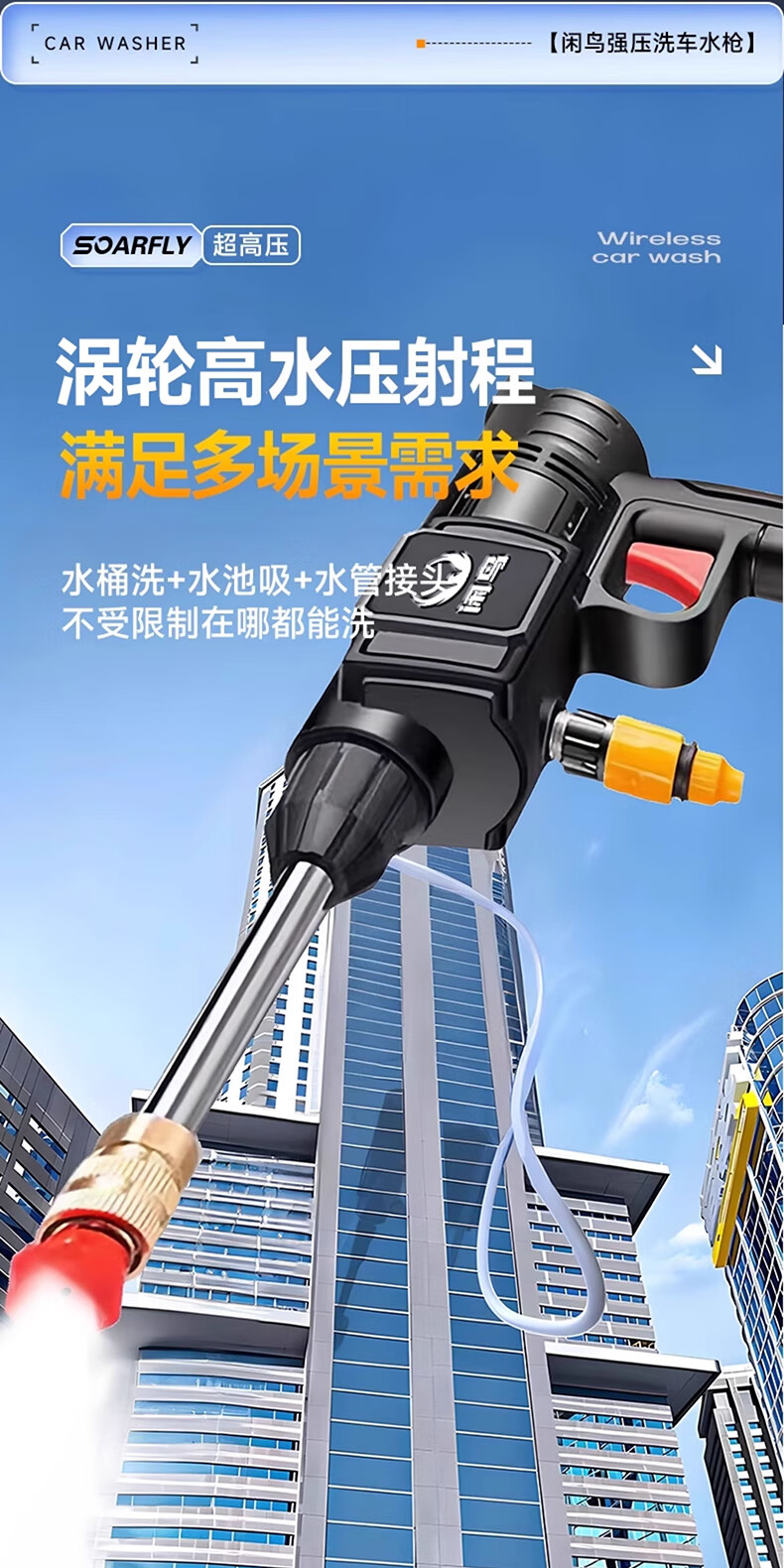 XIANNIAO wireless high-pressure water gun car washing machine household car washing artifact complete set of yard spray cleaning floor lithium battery car brush pump