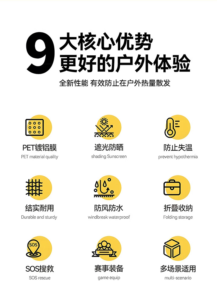 YOMO 2 pack emergency blanket thermal blanket outdoor camping emergency outdoor life-saving cold-proof thermal blanket 2.1x1.6 meters