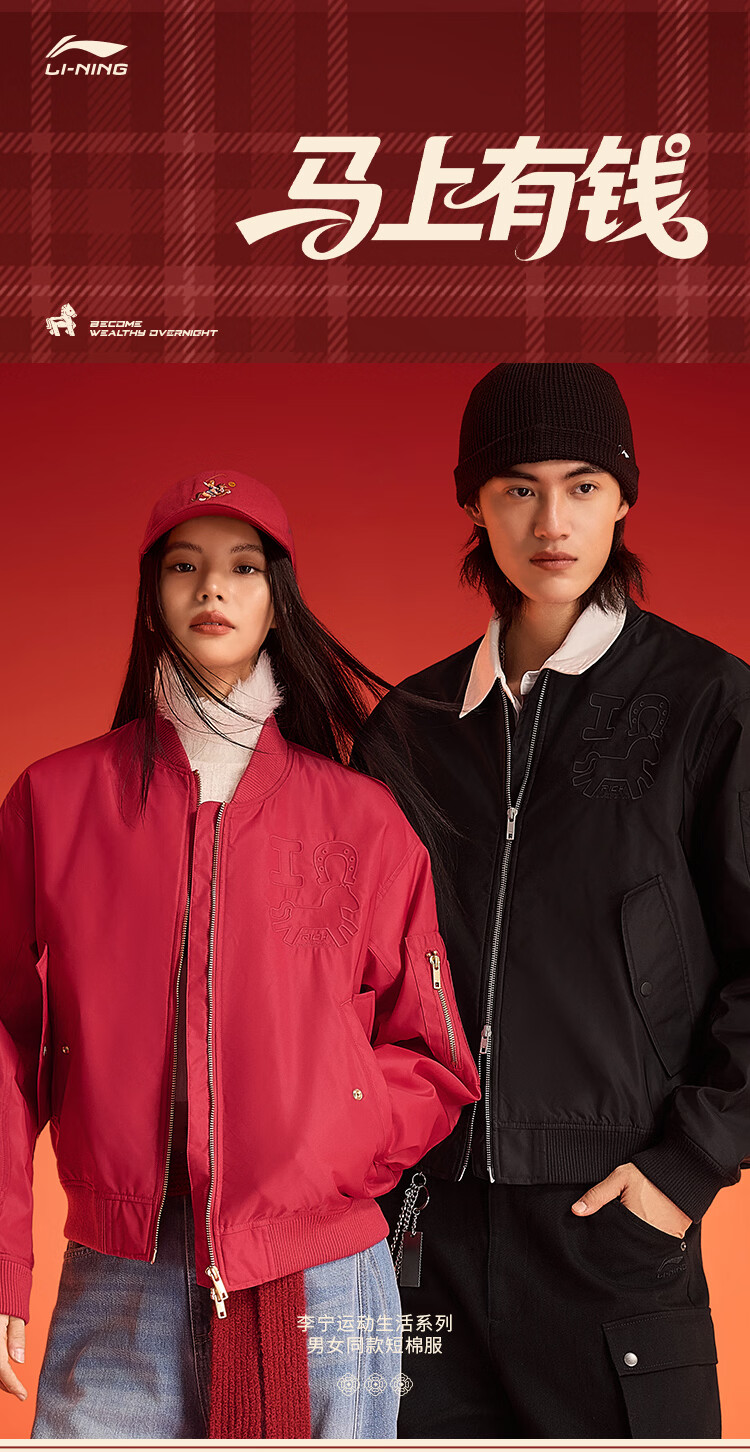Li Ning Make Money Now Short Cotton Clothes for Men and Women New Year's Warm and Comfortable Embroidered Casual Sports Jackets AJMW199