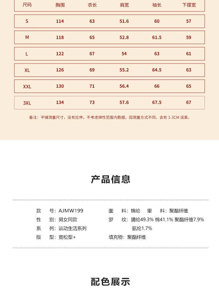 China (cm) 165 / 88-90 170 / 96-98 175 / 108-110 180 / 118-122 185 / 126-130