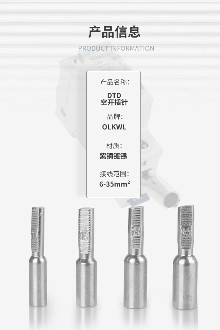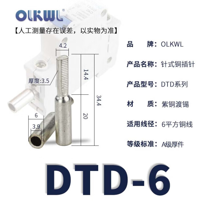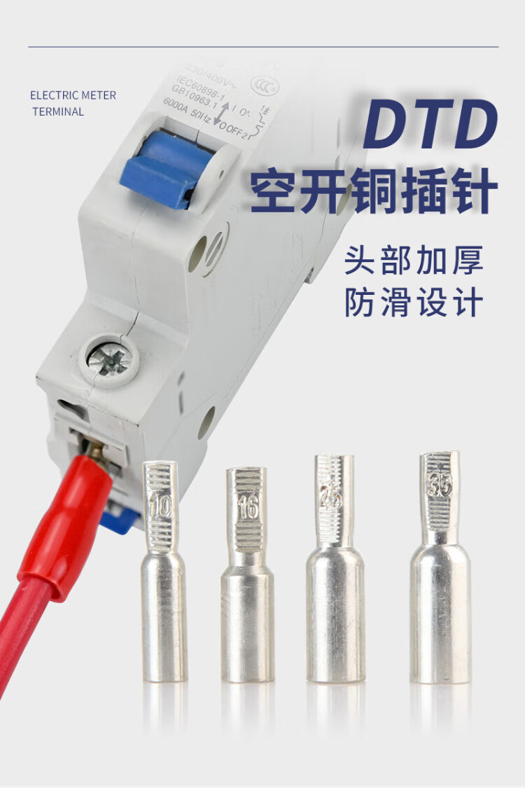OLKWL (Wali) Haushalts-Luftschalter, verdickte Anschlussnase aus reinem Kupfer, 6 quadratische Kupferdrahtohren mit isolierter Ummantelung, Leistungsschalter, Luftschalter-Anschluss DTD-6 (10 Stück)