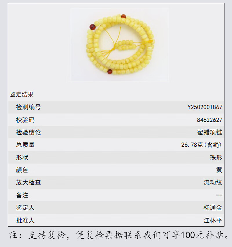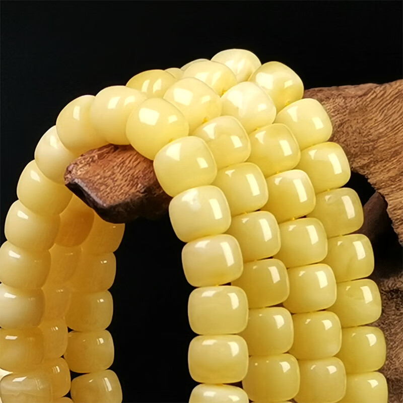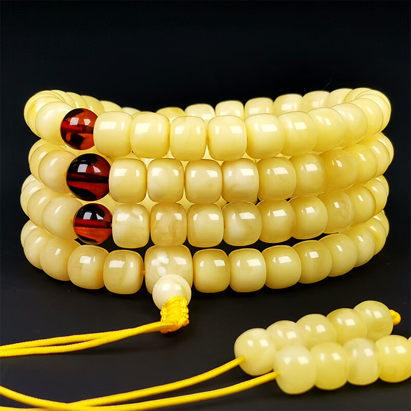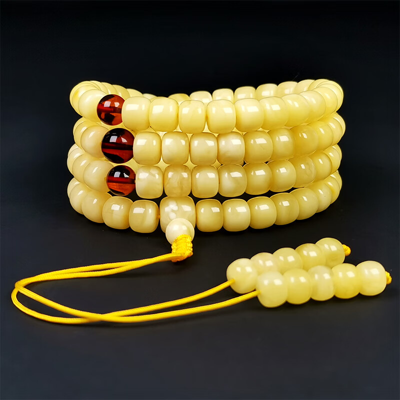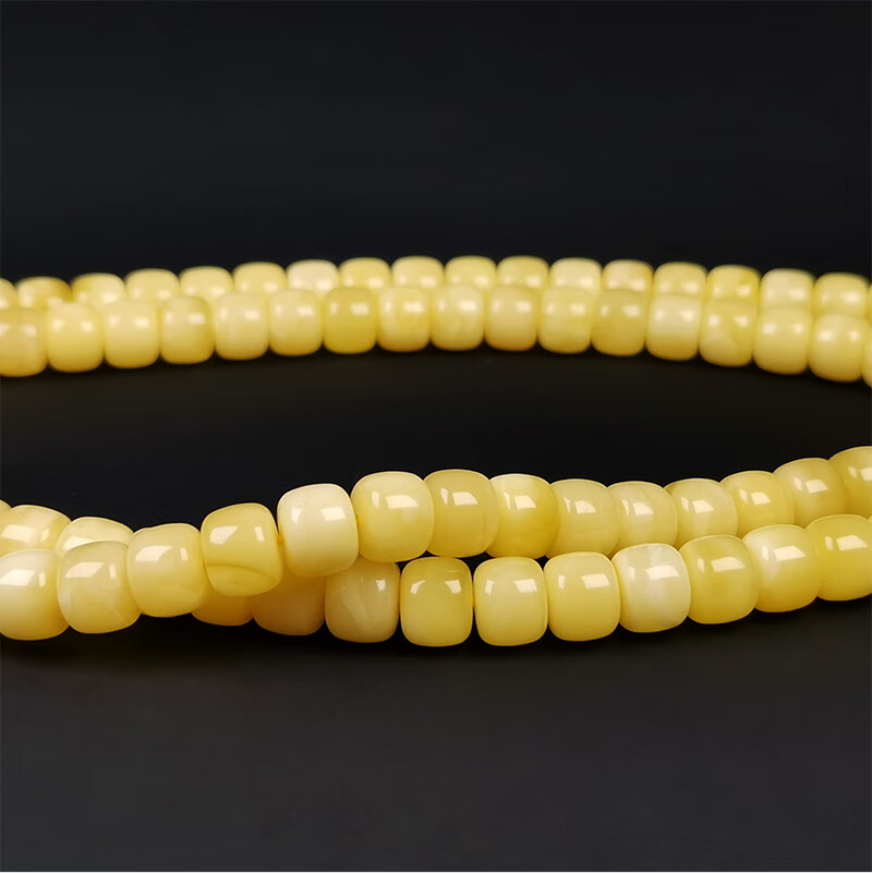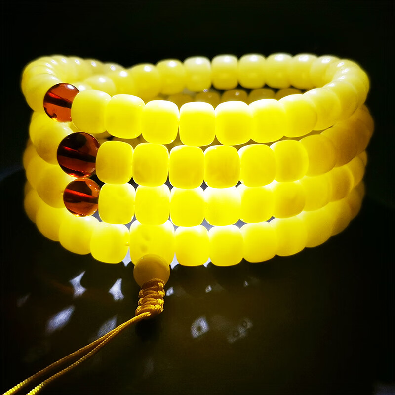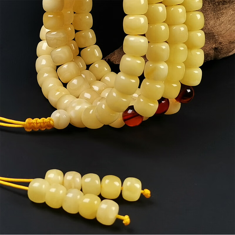 Hupai One thing, one picture, one certificate, natural beeswax bracelet, 108 pieces, Buddha beads, rosary necklace, old barrel bead bracelet, bracelet, 26.78g, 7*5.6mm