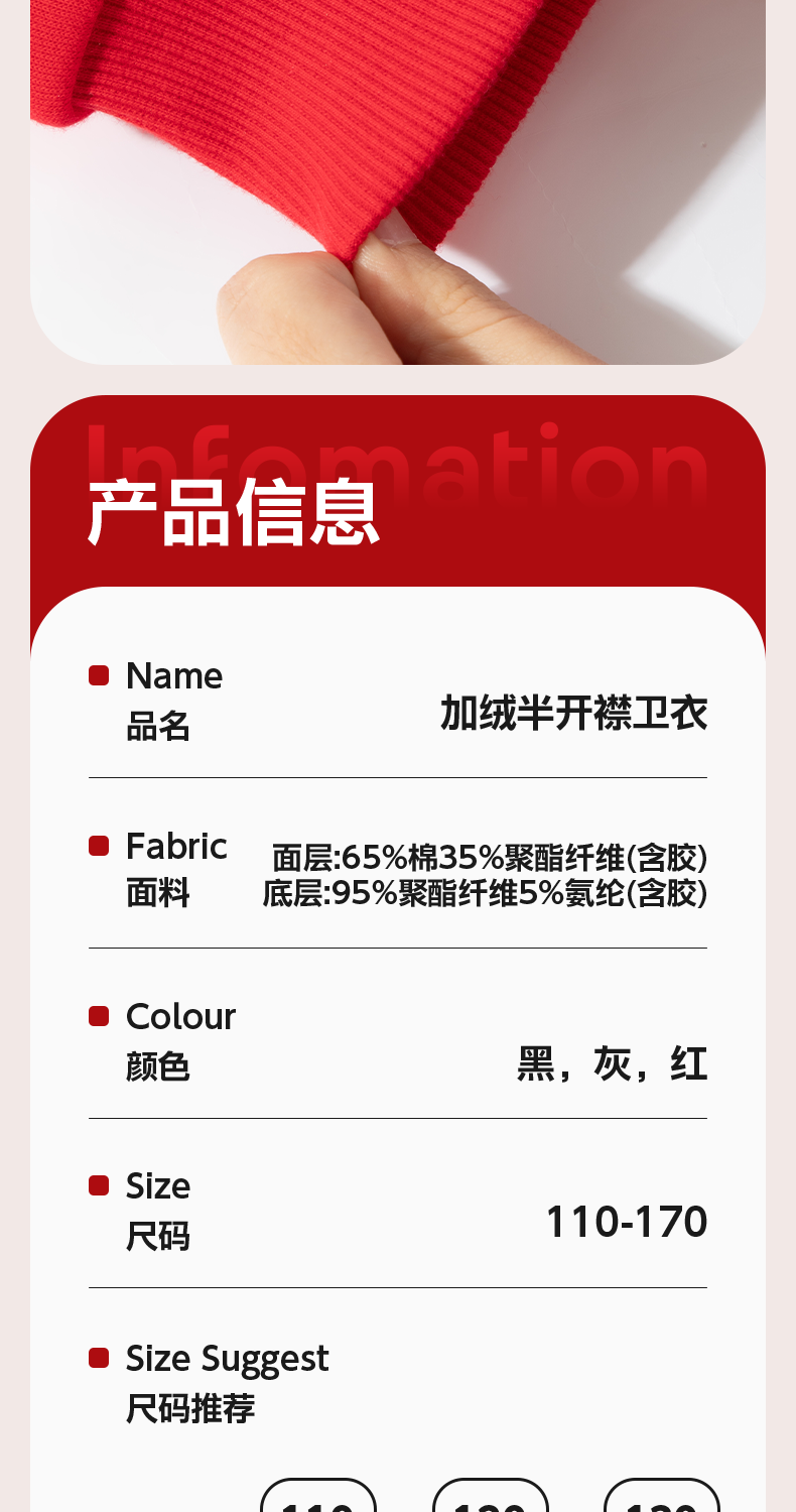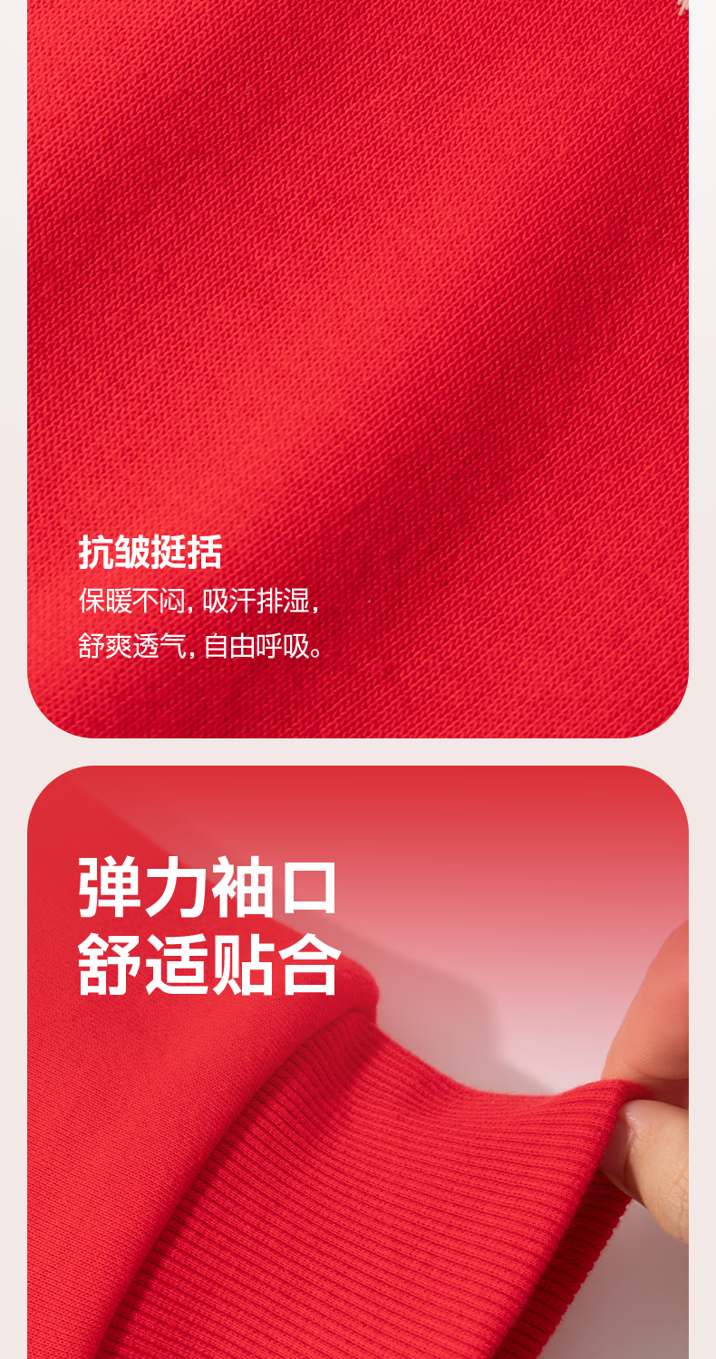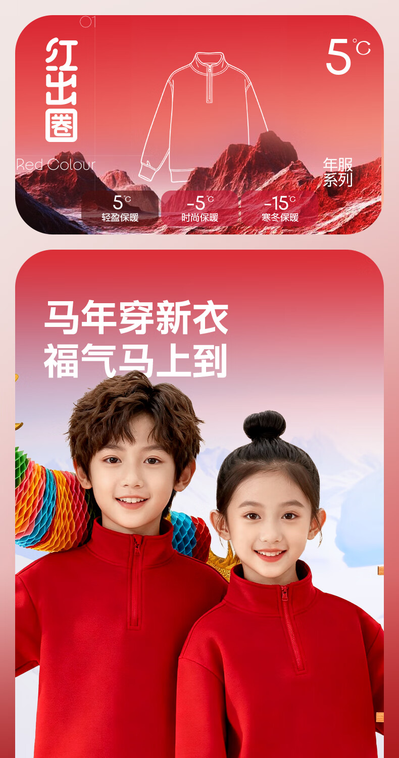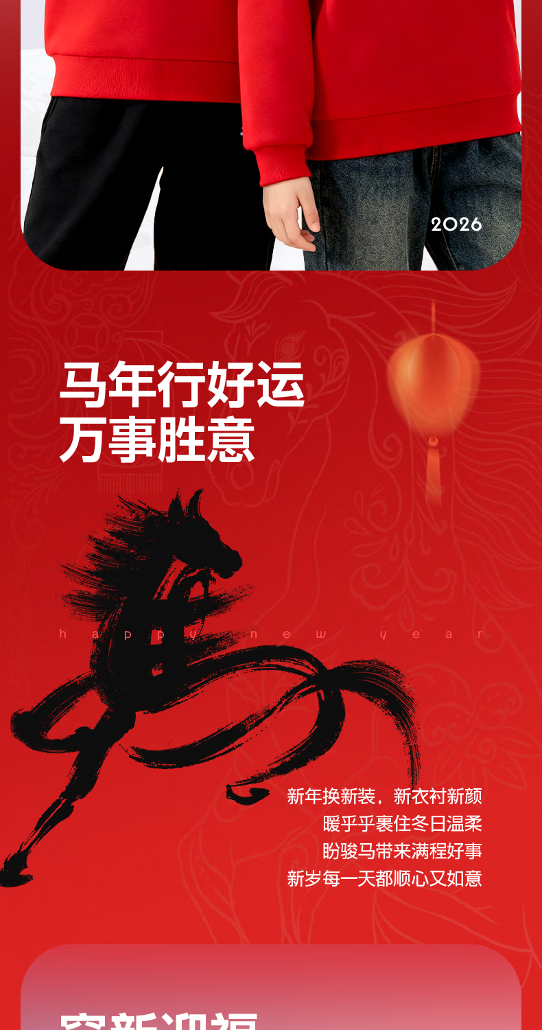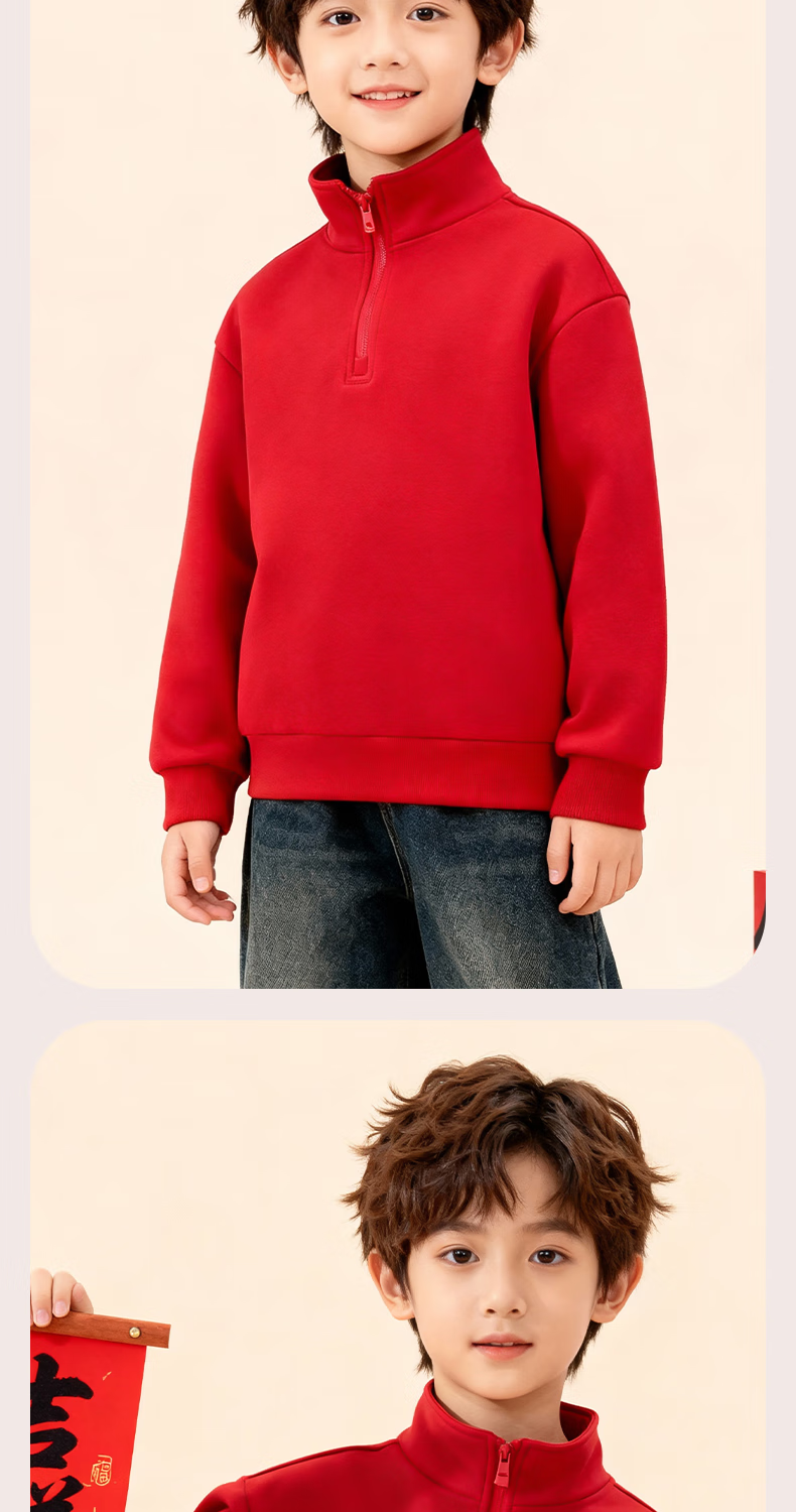 Jeanswest children's red sweatshirt children's autumn and winter 2025 new boys' New Year's greetings clothes plus velvet half-cardigan New Year's clothes for the Year of the Horse