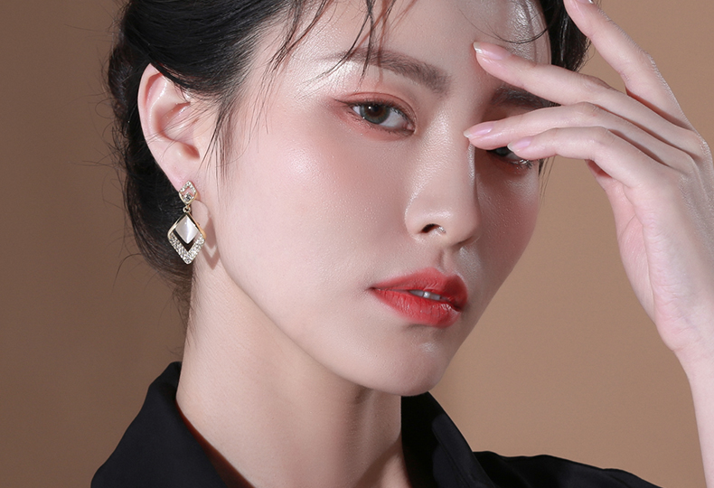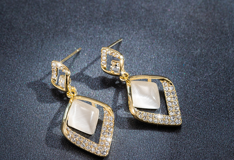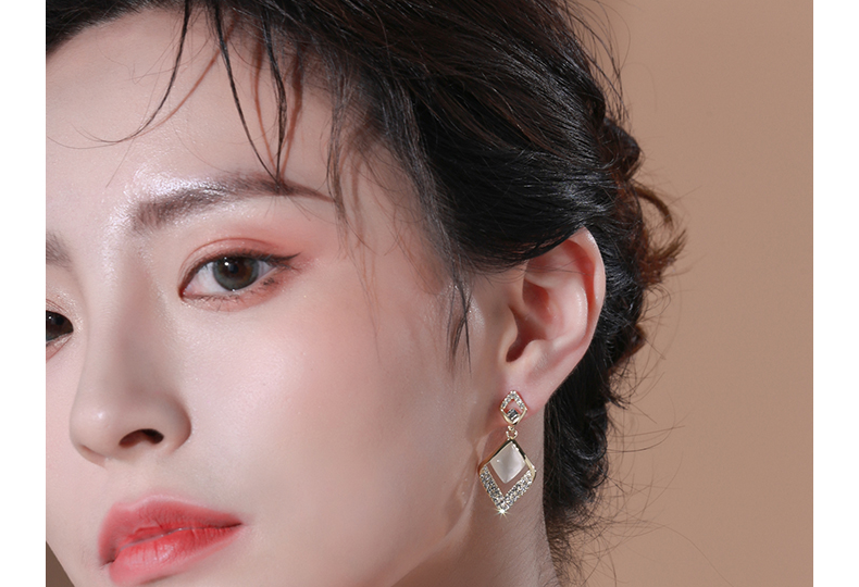 Idel diamond-shaped synthetic cat's eye earrings summer style 2025 new trendy small earrings exquisite high-end light luxury earrings prismatic synthetic cat's eye earrings E0529