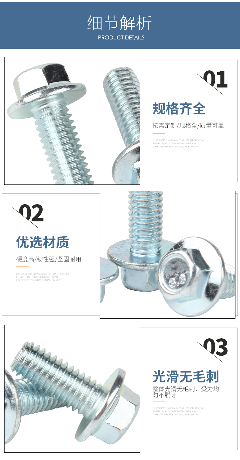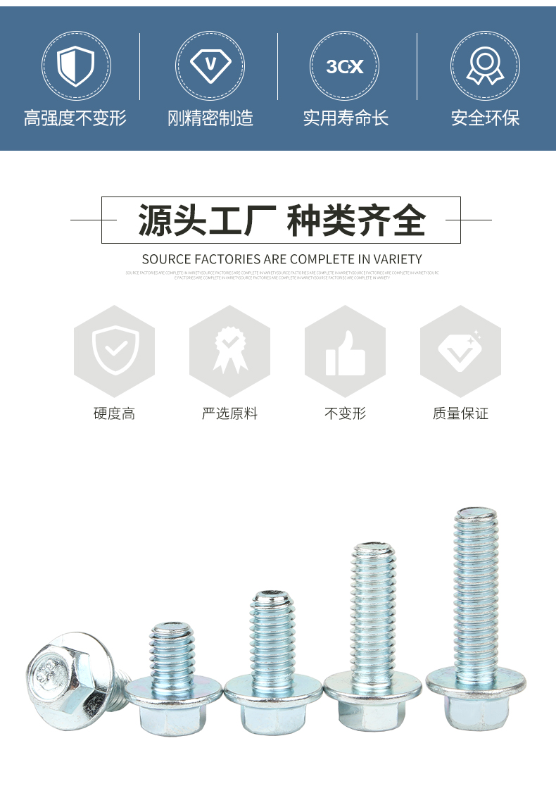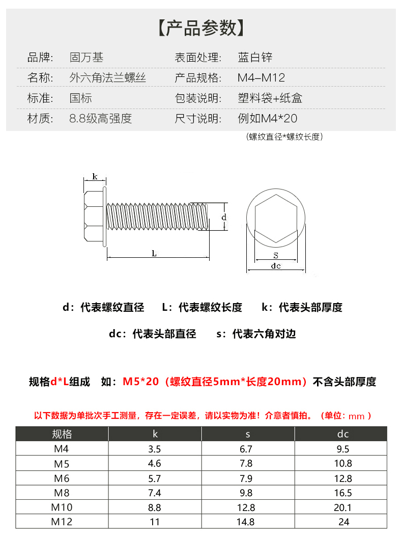 Guwanji Grade 8.8 galvanized external hexagonal flange screws hexagonal padded anti-slip screws and bolts M6*20 (10 pieces)