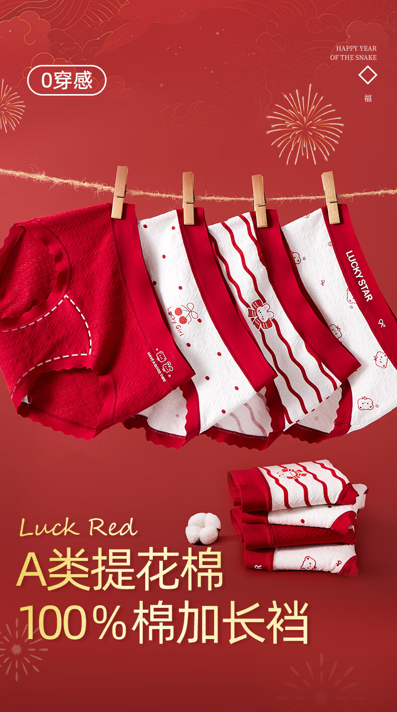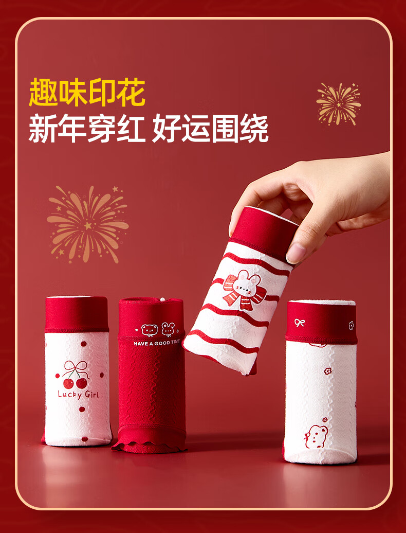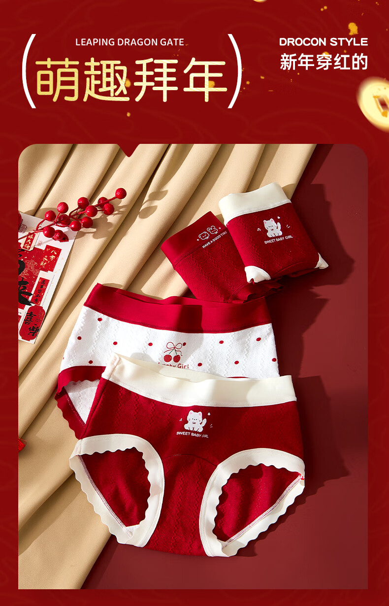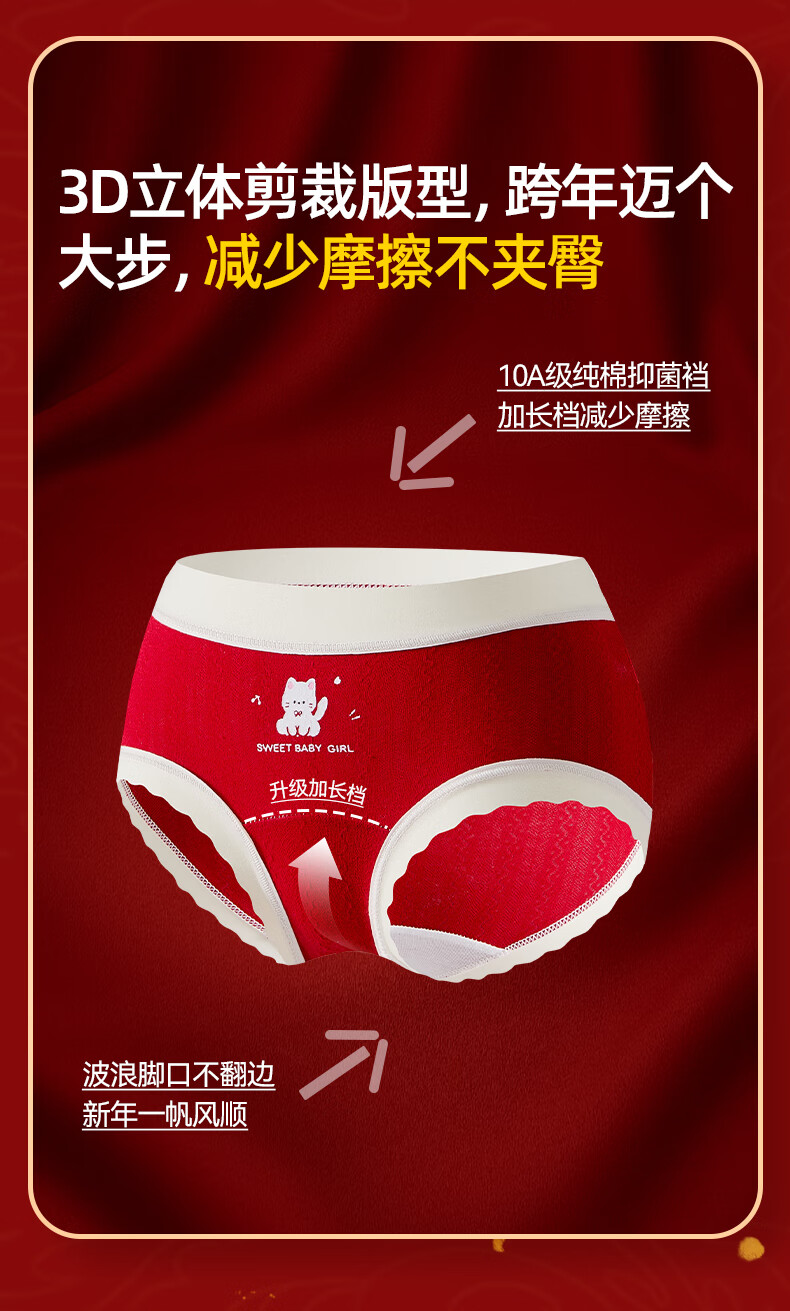 Fenton zodiac year girl underwear pure cotton antibacterial girls 12 developmental stage red horse year middle-aged girl triangle shorts