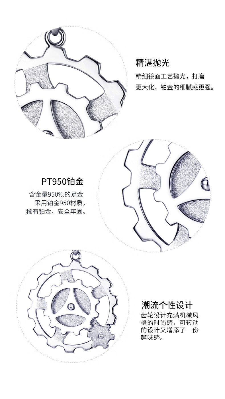 Aidozuan pt950 platinum mechanical gear pendant men's fashionable platinum pendant can rotate pendant 8.9-9.1 grams + delivery leather rope