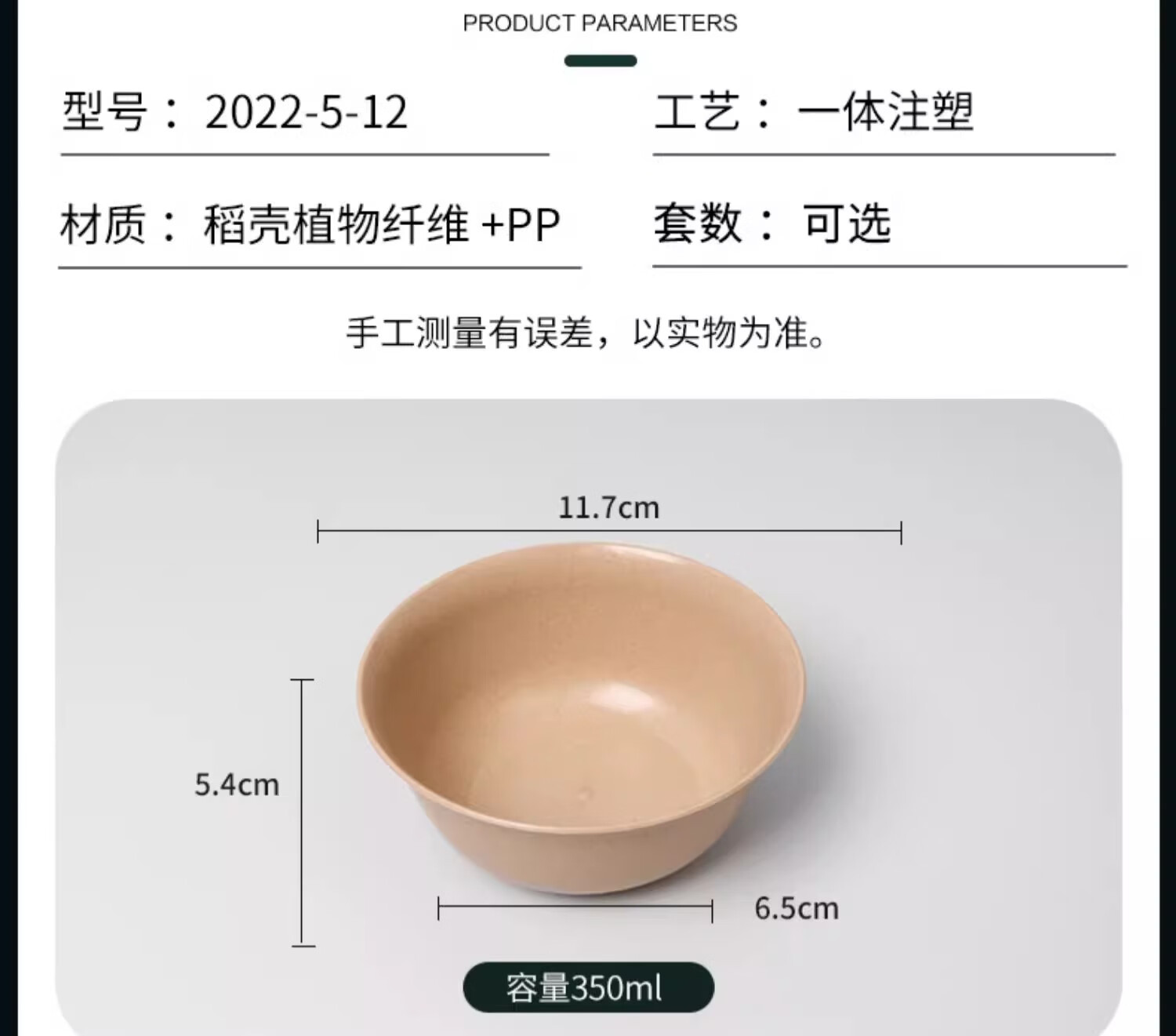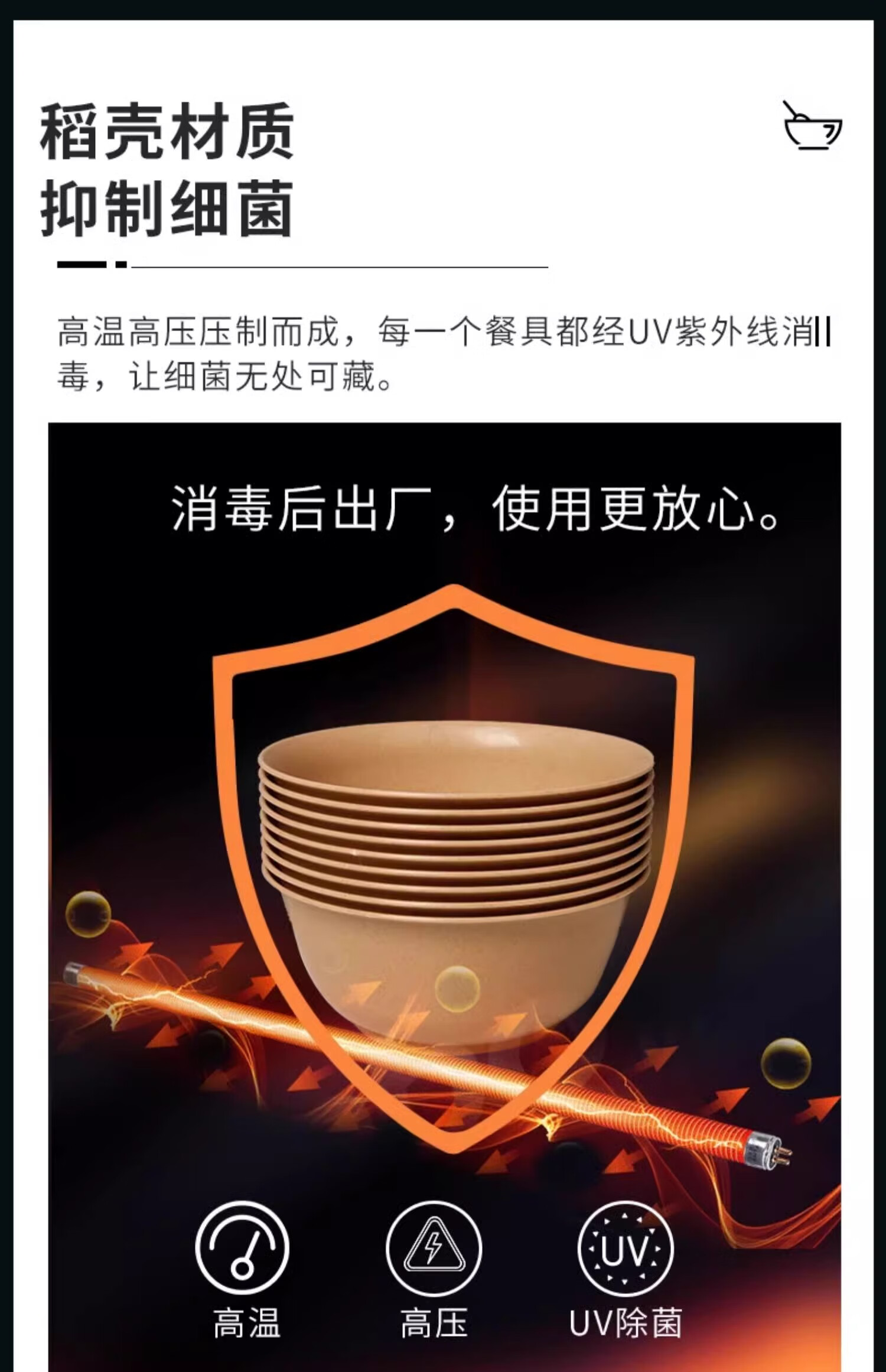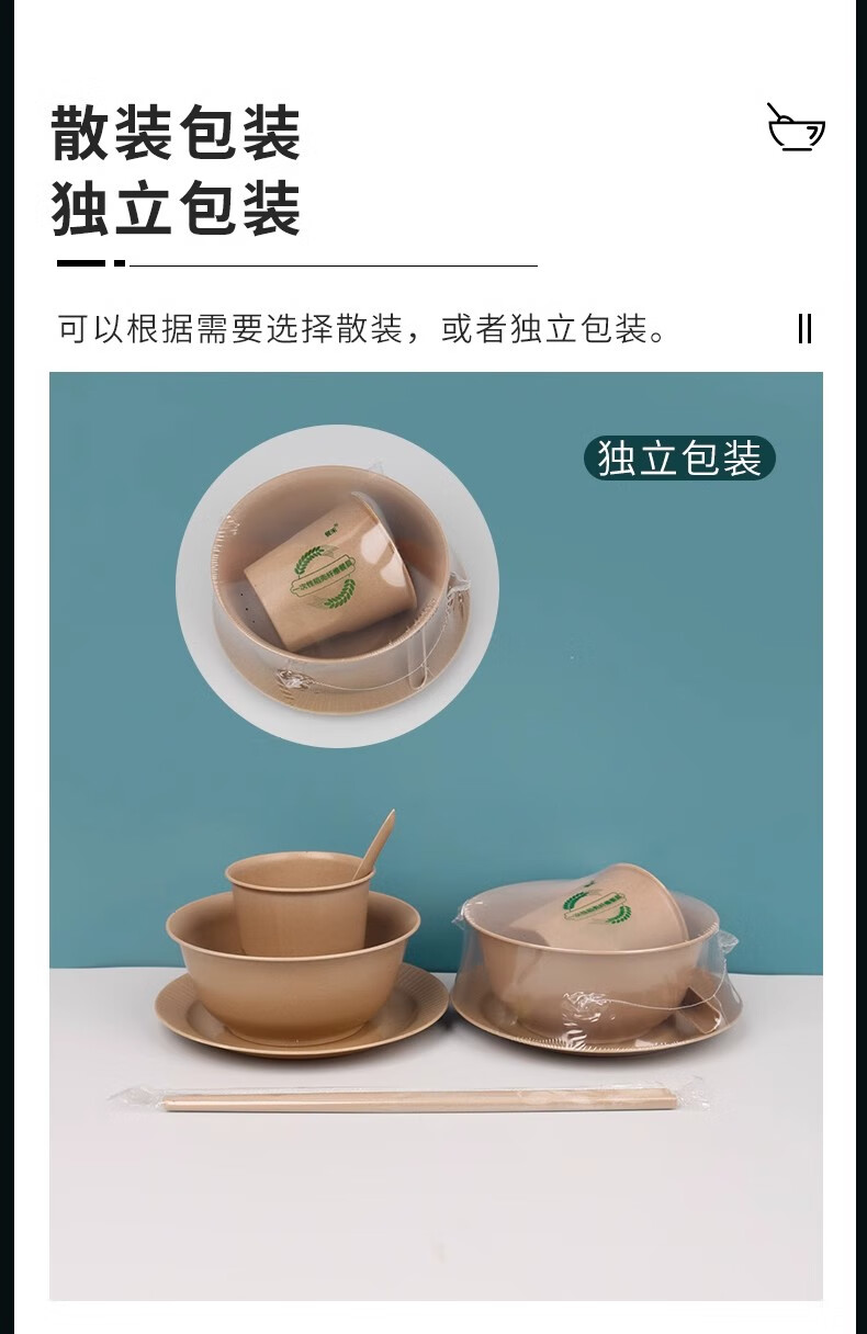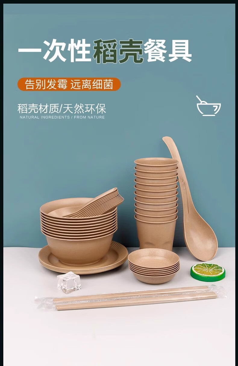 Shenfu disposable tableware set, biodegradable four-piece set of bowls, chopsticks, cups, spoons, bone plates, banquets, hotel home thickened lunch boxes, 50 rice husk bowls in bulk