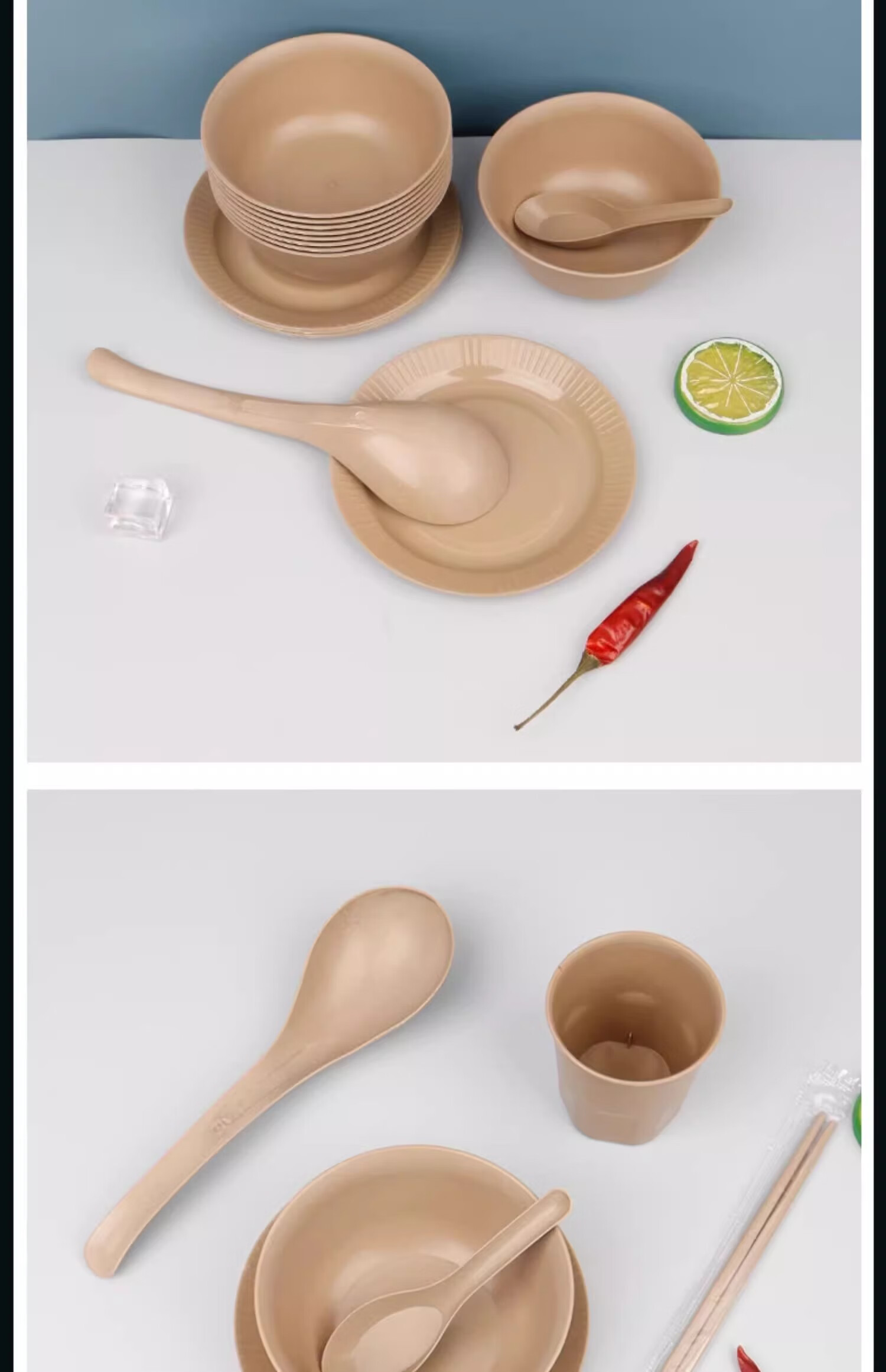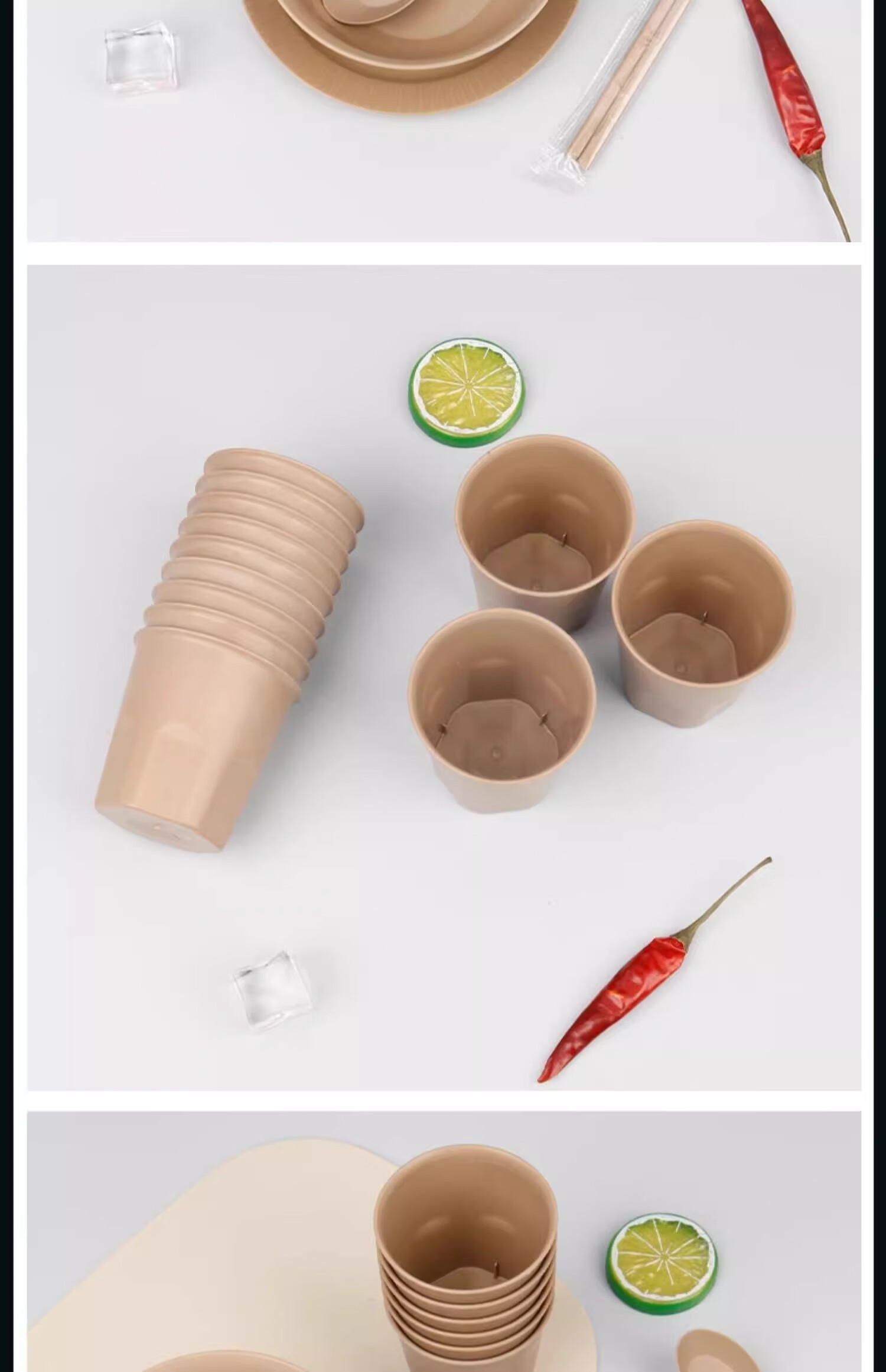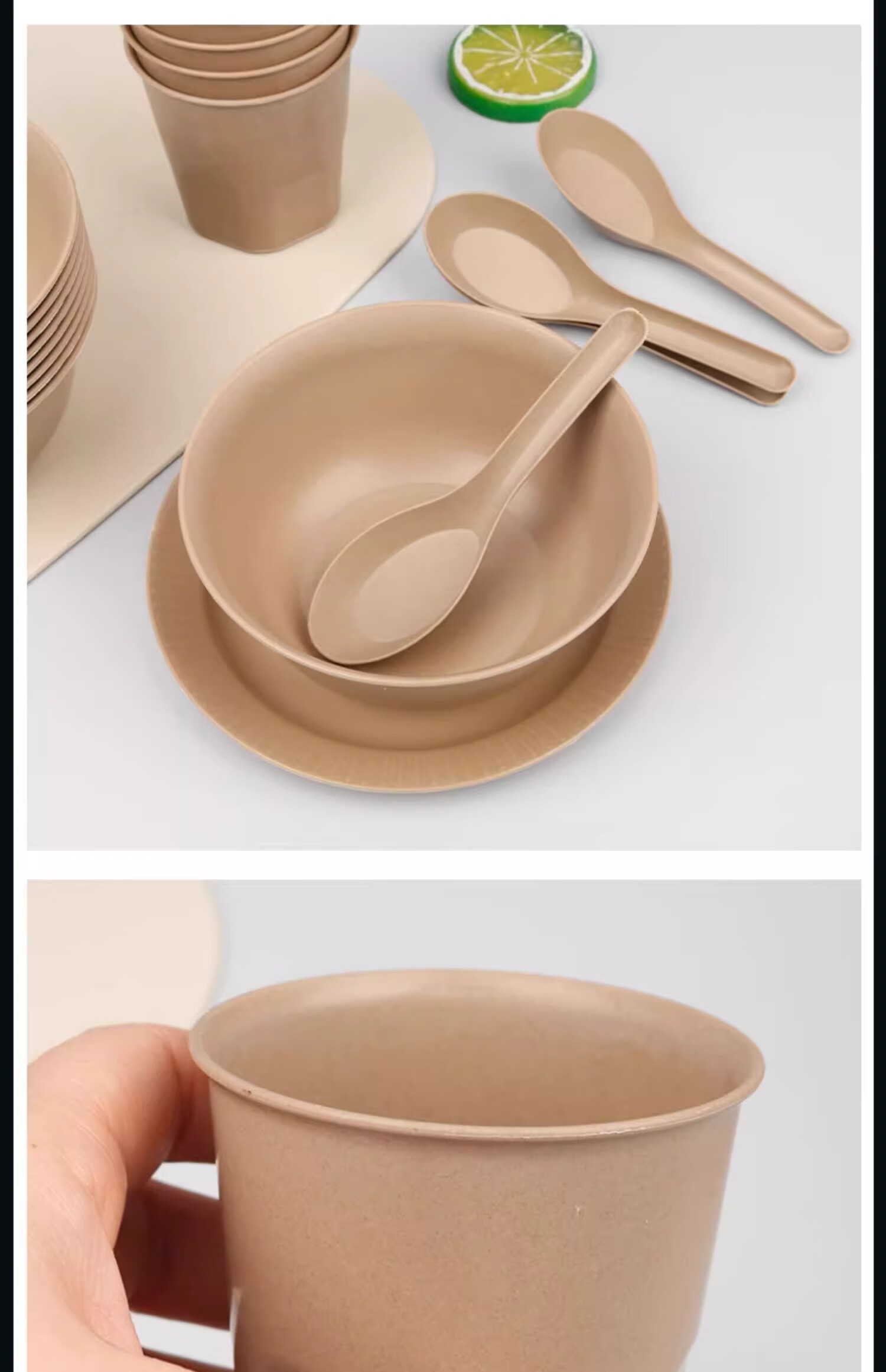 Shenfu disposable tableware set, biodegradable four-piece set of bowls, chopsticks, cups, spoons, bone plates, banquets, hotel home thickened lunch boxes, 50 rice husk bowls in bulk