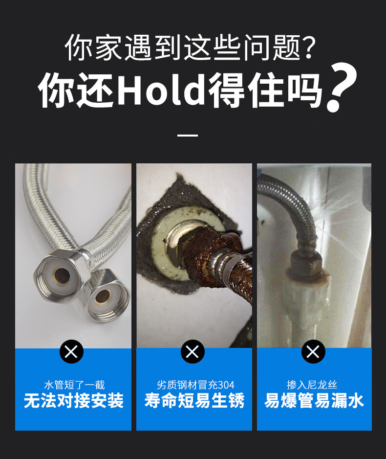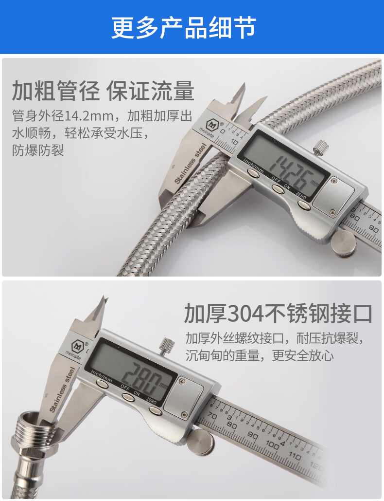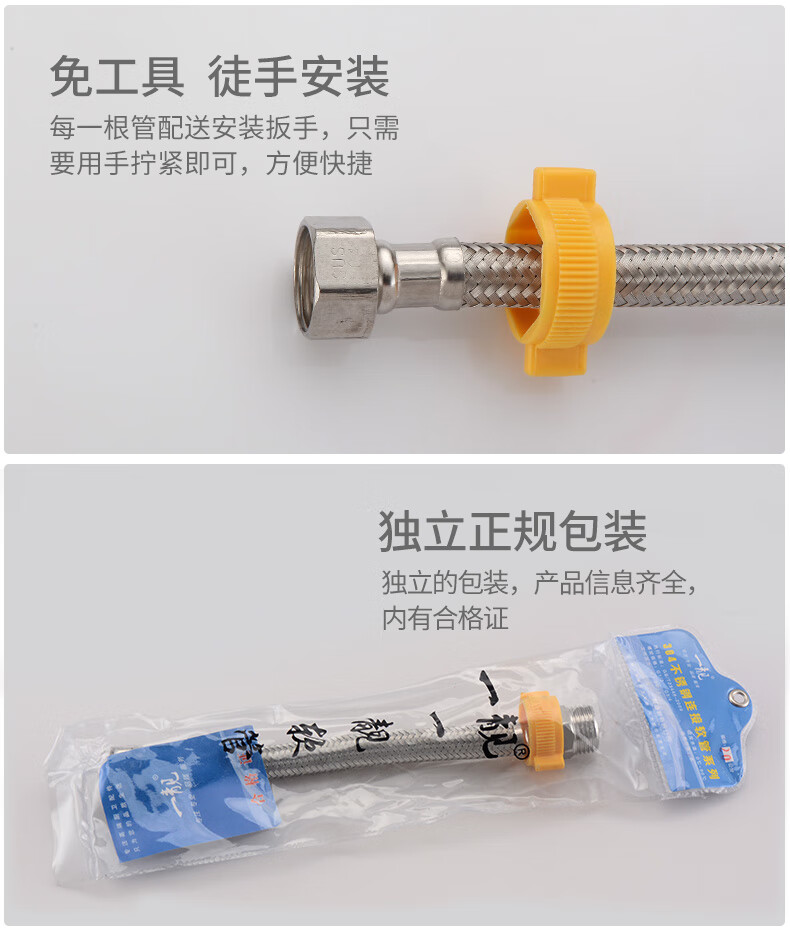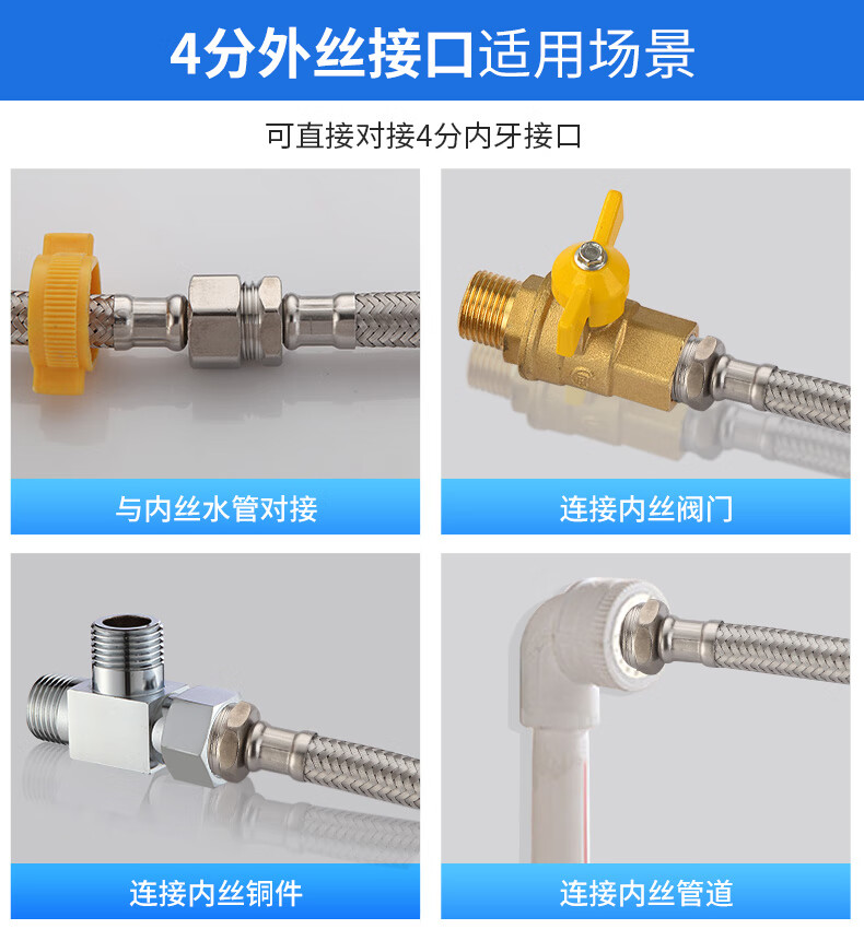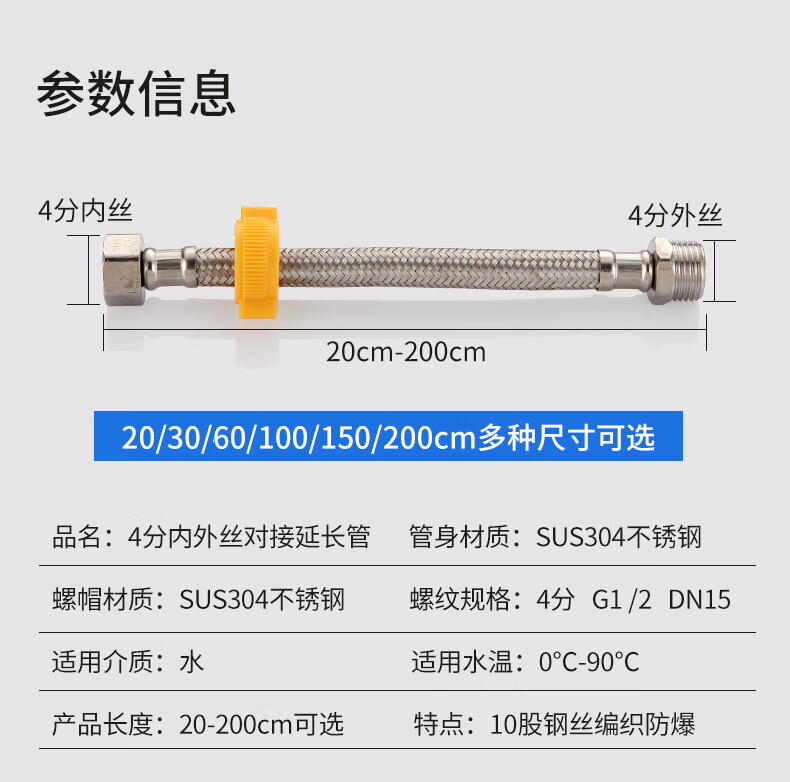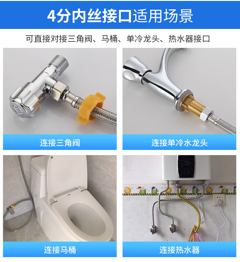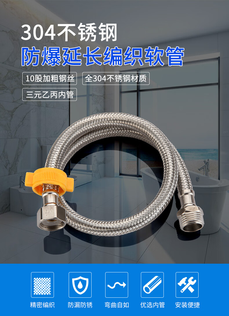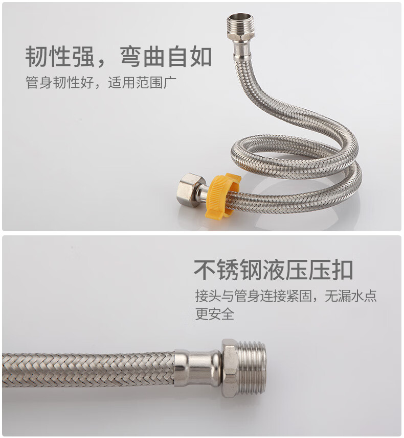 A beautiful 4-minute inner and outer wire extension tube stainless steel water supply hose extension angle valve hot and cold faucet braided pipe water inlet pipe 1.5 meters ten-strand steel wire 4-minute inner and outer wire extension tube