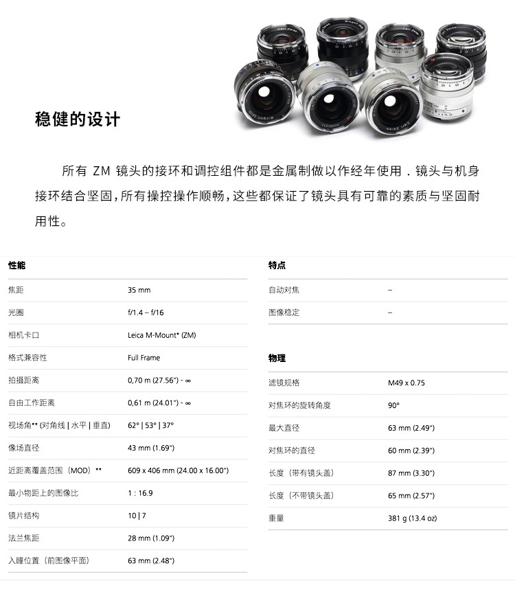 Zeiss ZEISS Distagon T* 1.4/35 ZM 35/1.4 Zeiss lens Leica mount silver