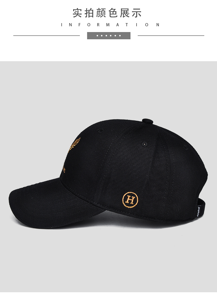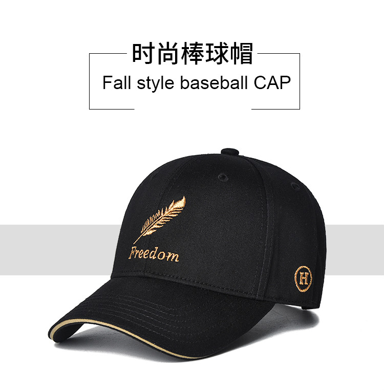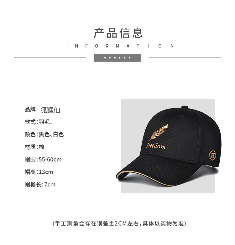 Fox fairy hat for men and women, Korean version ins, trendy peaked cap, four seasons baseball cap, fashionable and versatile embroidered Internet celebrity feather hat, feather style, black M adjustable (55-60c)
