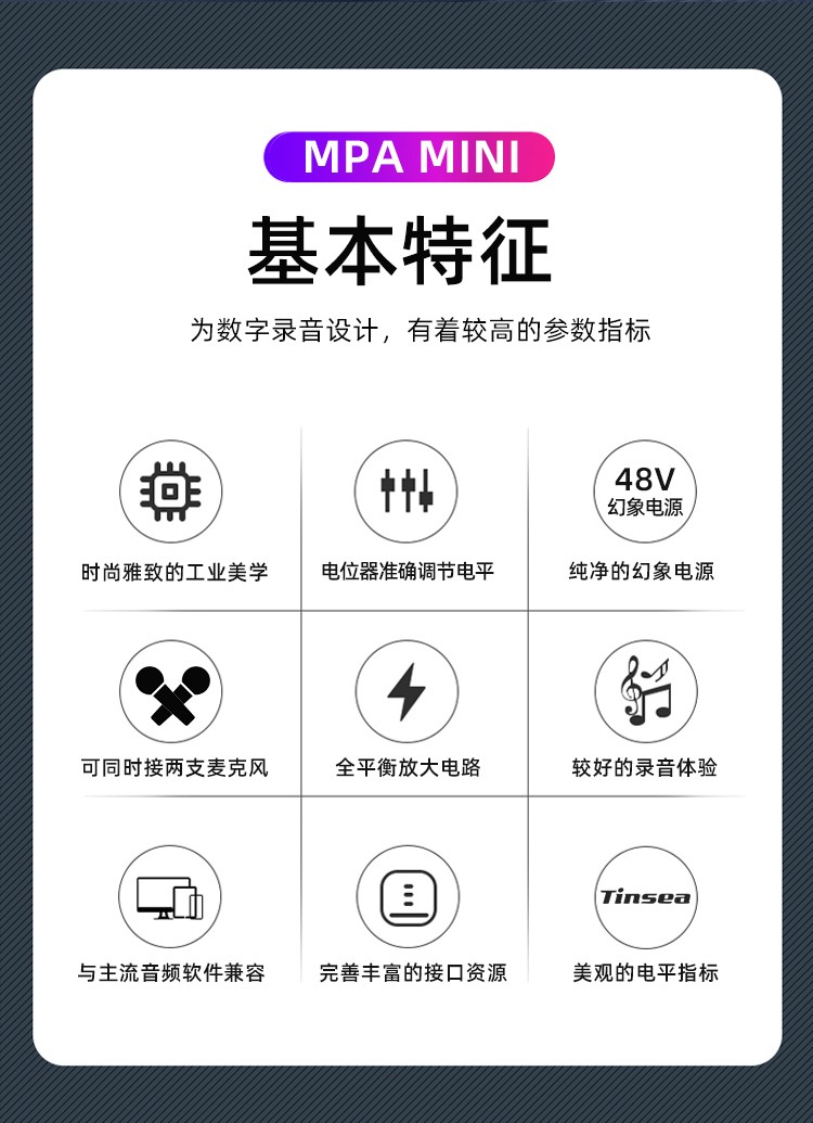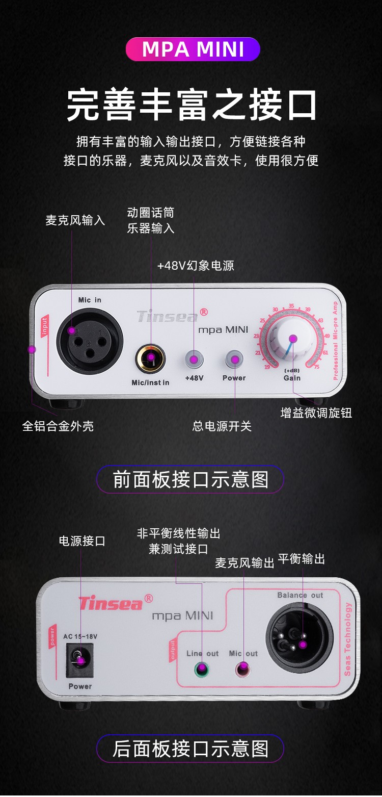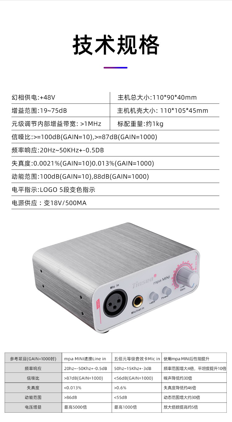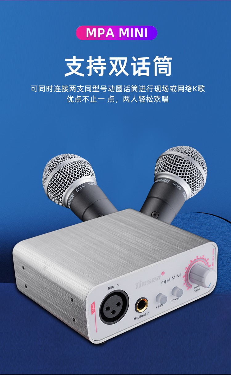 Tinsea mpa mini dynamic microphone sound gain amplifier large diaphragm condenser microphone amplifier So8 mobile live broadcast sound card dedicated preamp