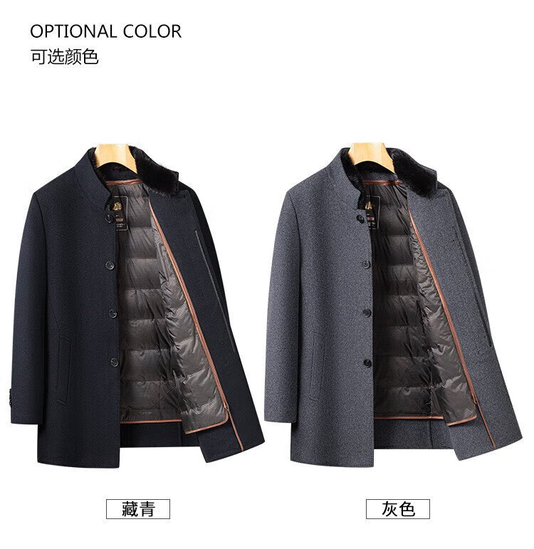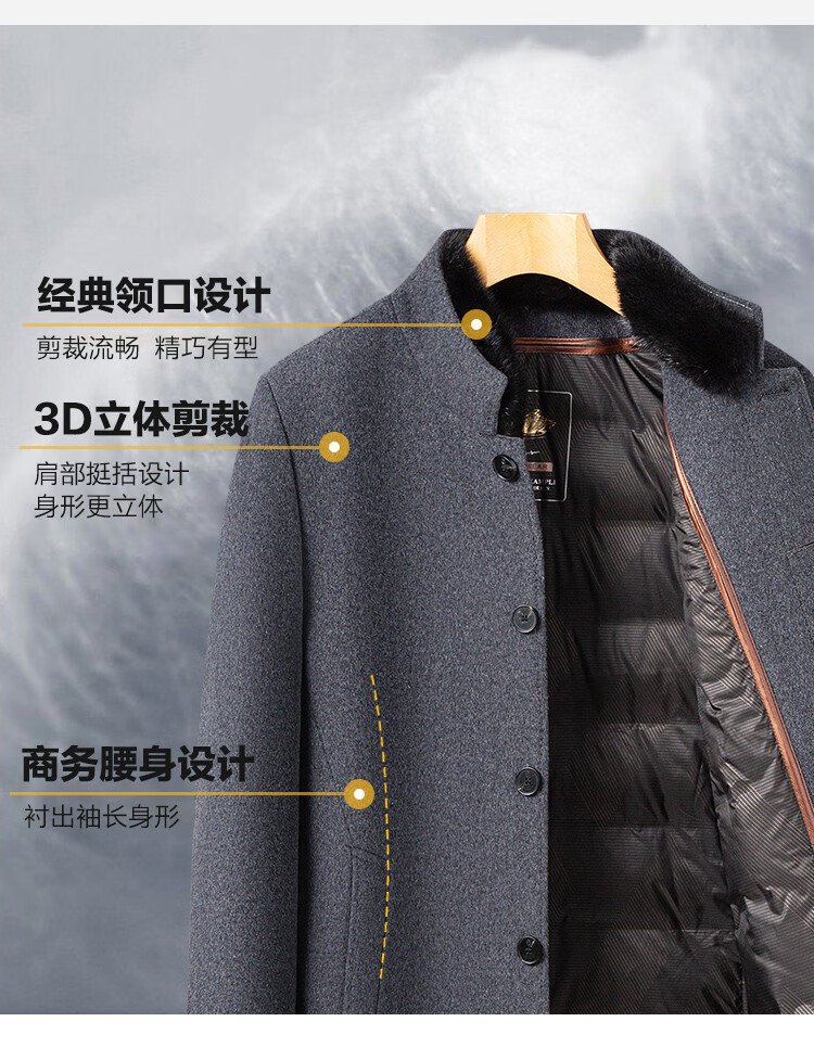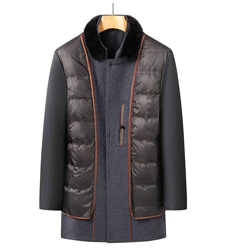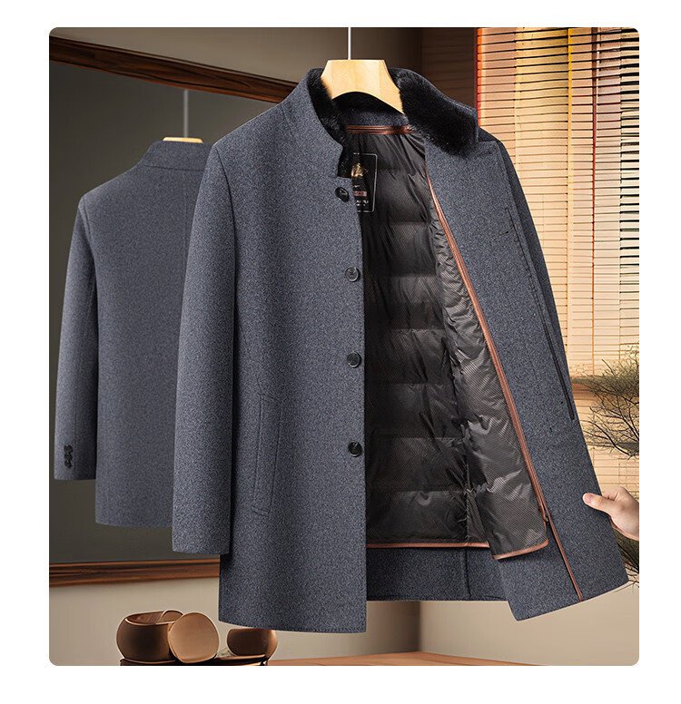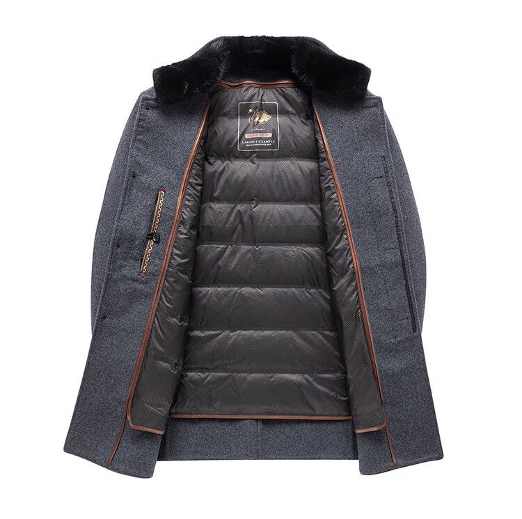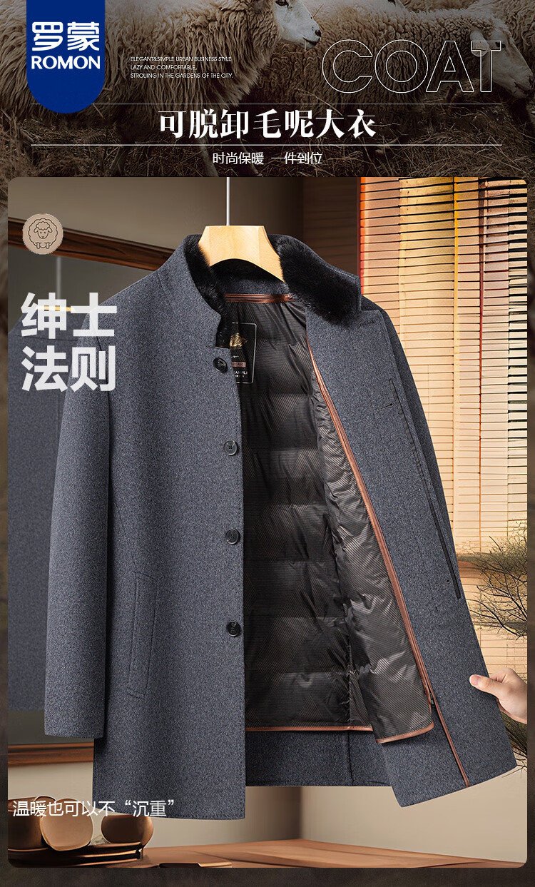 Romon sheep wool woolen woolen coat men's mid-length autumn and winter removable goose down lining warm coat
