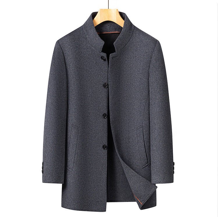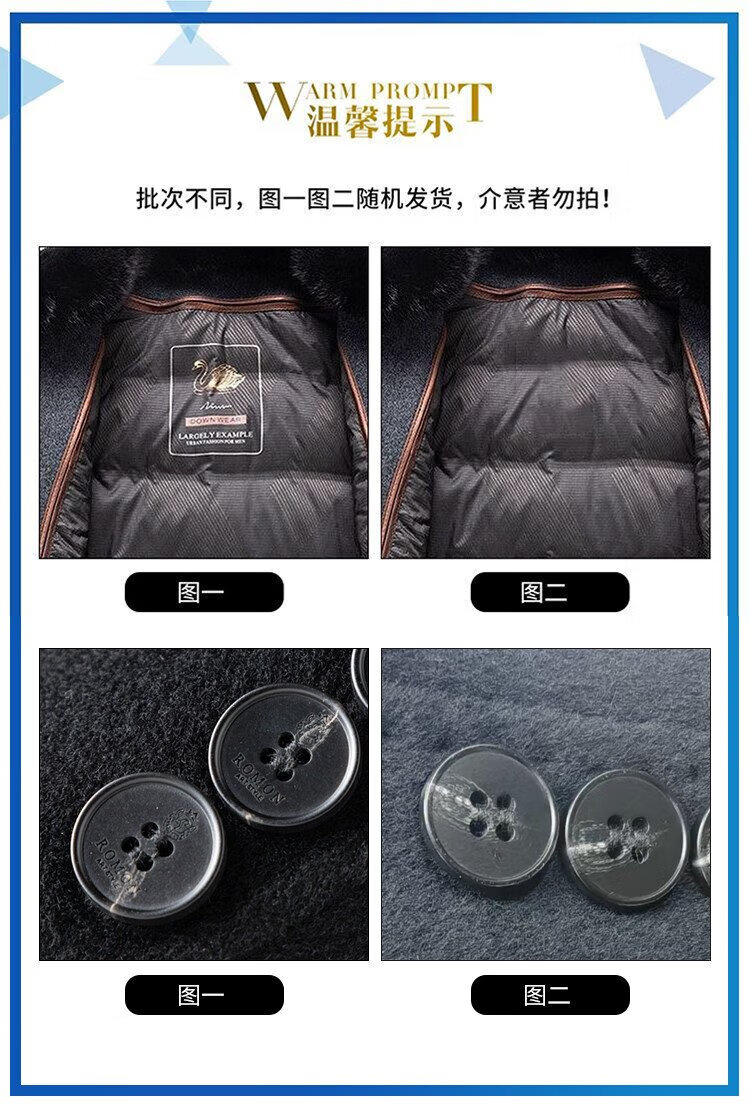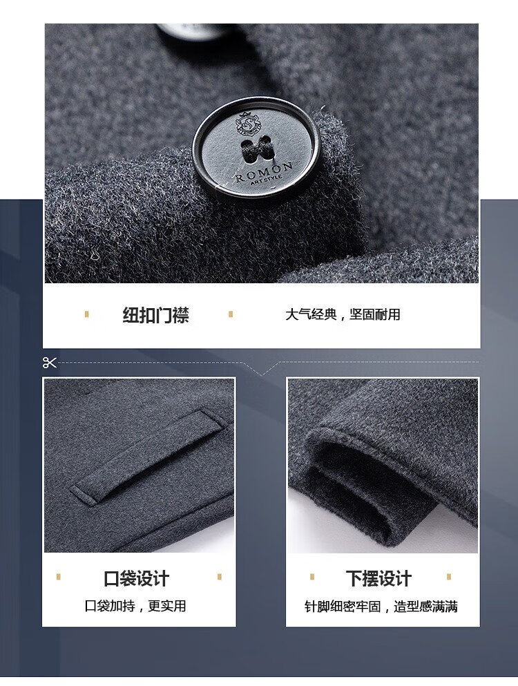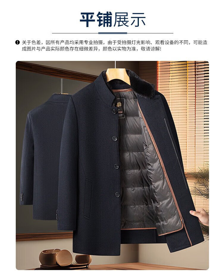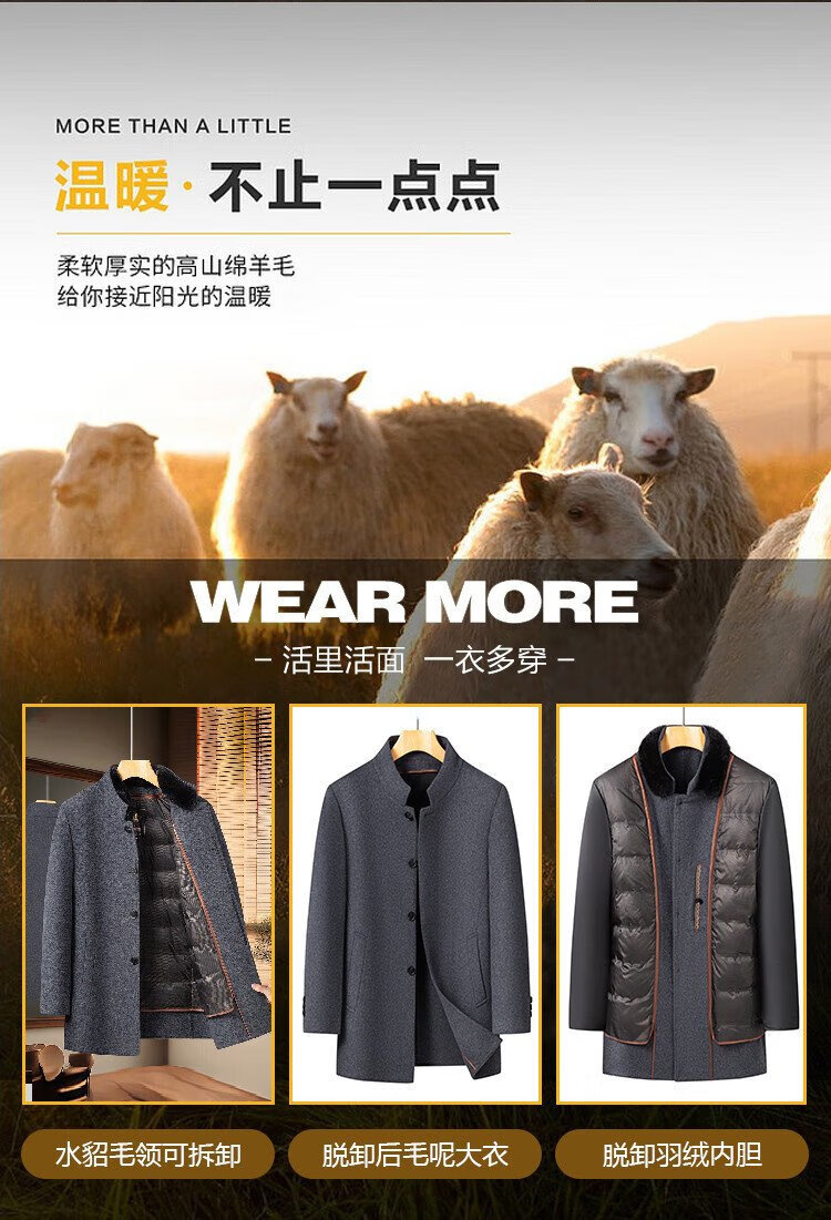 Romon sheep wool woolen woolen coat men's mid-length autumn and winter removable goose down lining warm coat