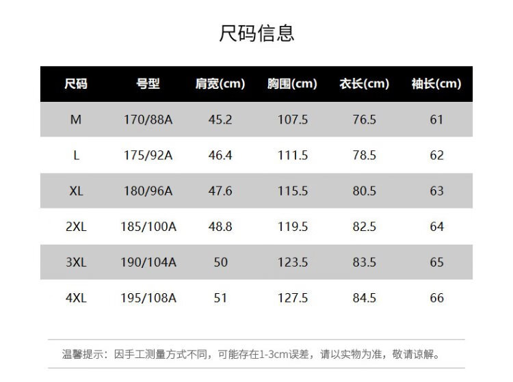 China (cm) 165 / 88-90 170 / 96-98 175 / 108-110 180 / 118-122 185 / 126-130