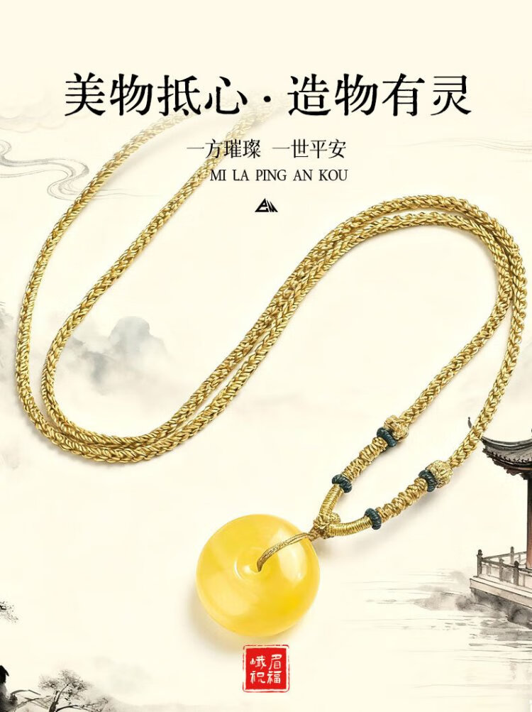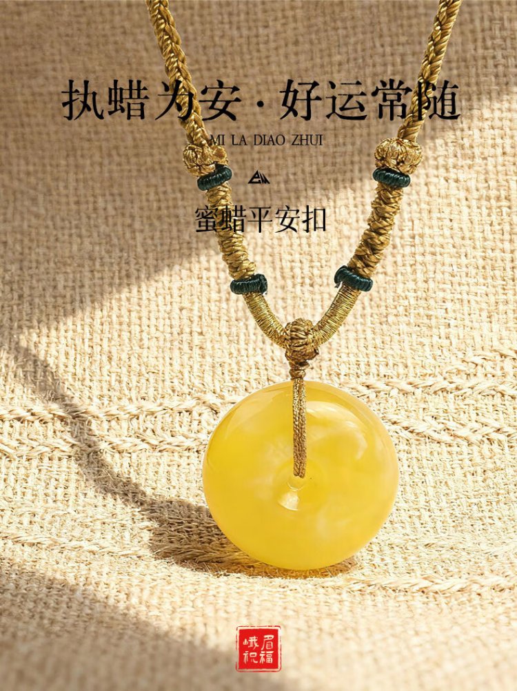 Emeishan has been fragrant natural beeswax safety buckle pendant raw ore chicken oil yellow beeswax men and women couple necklace