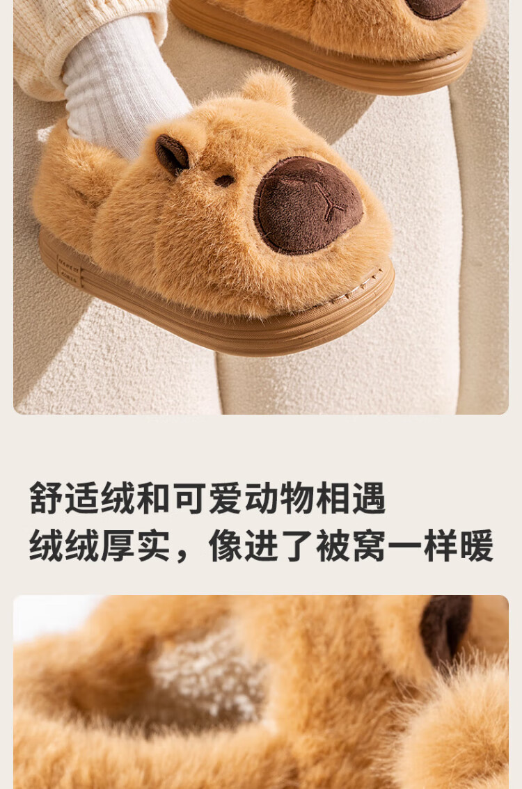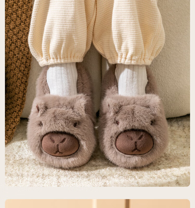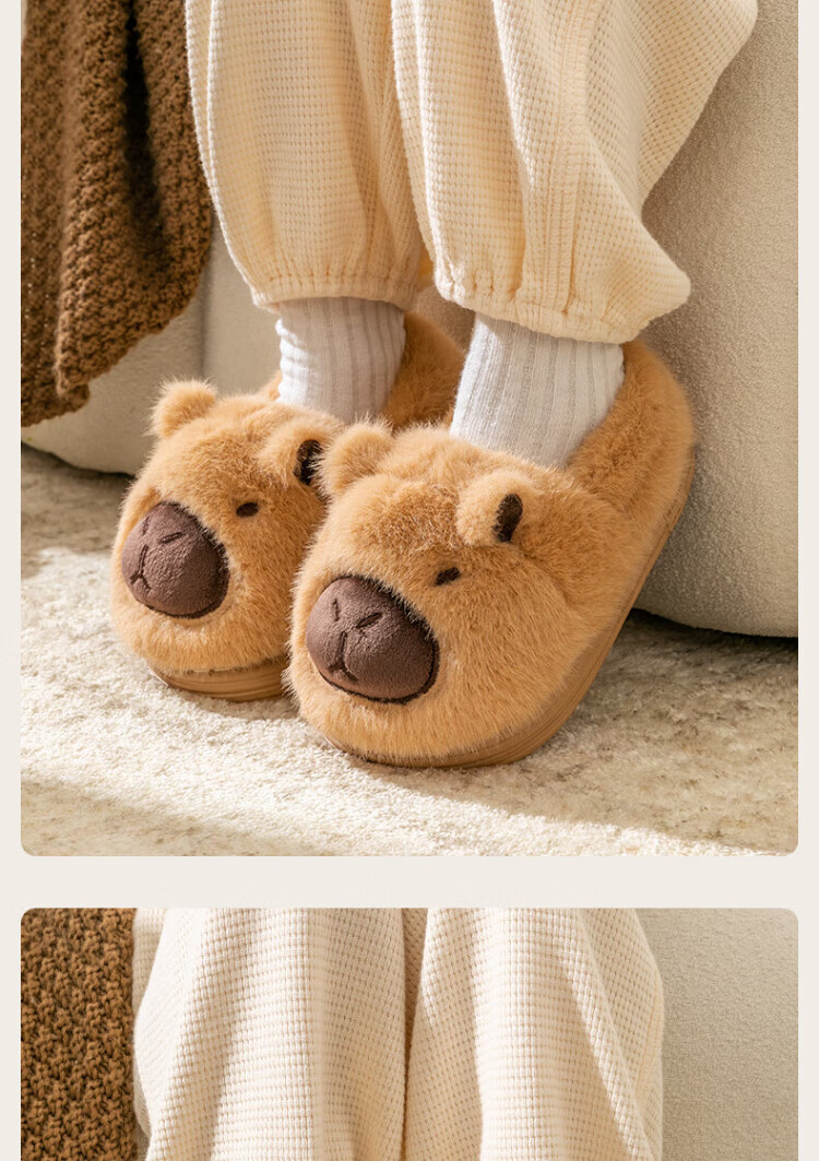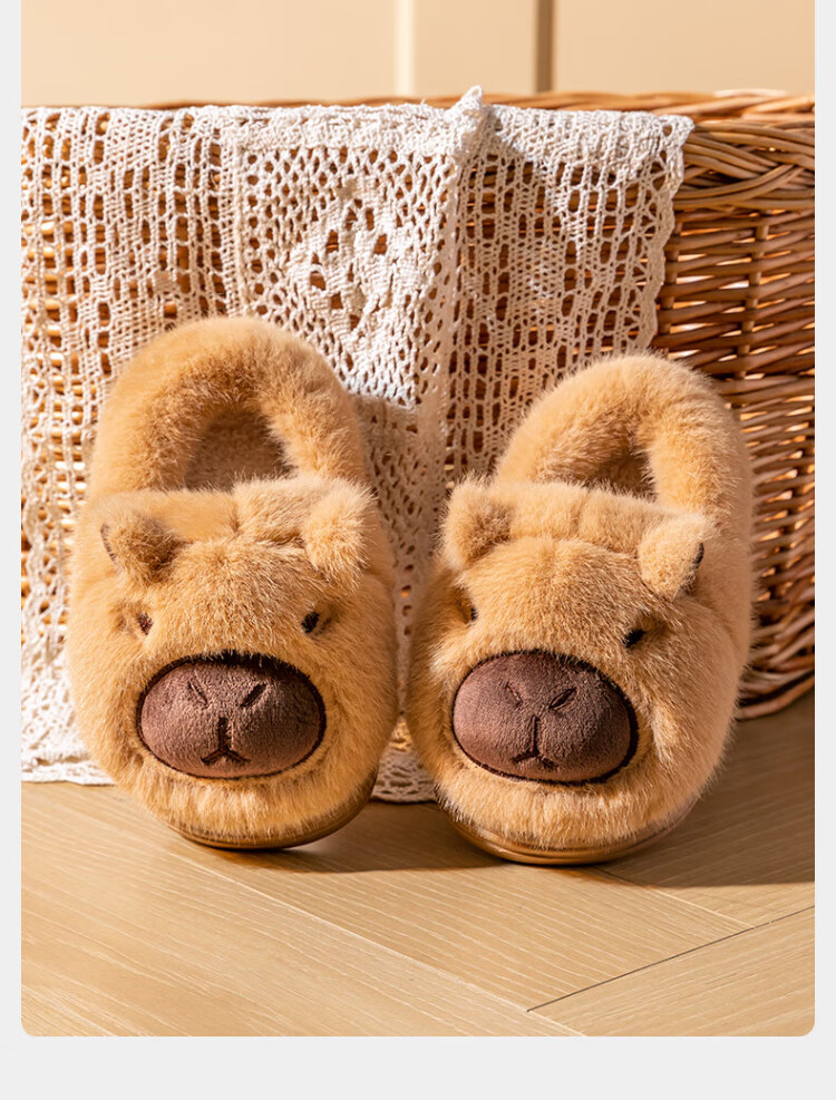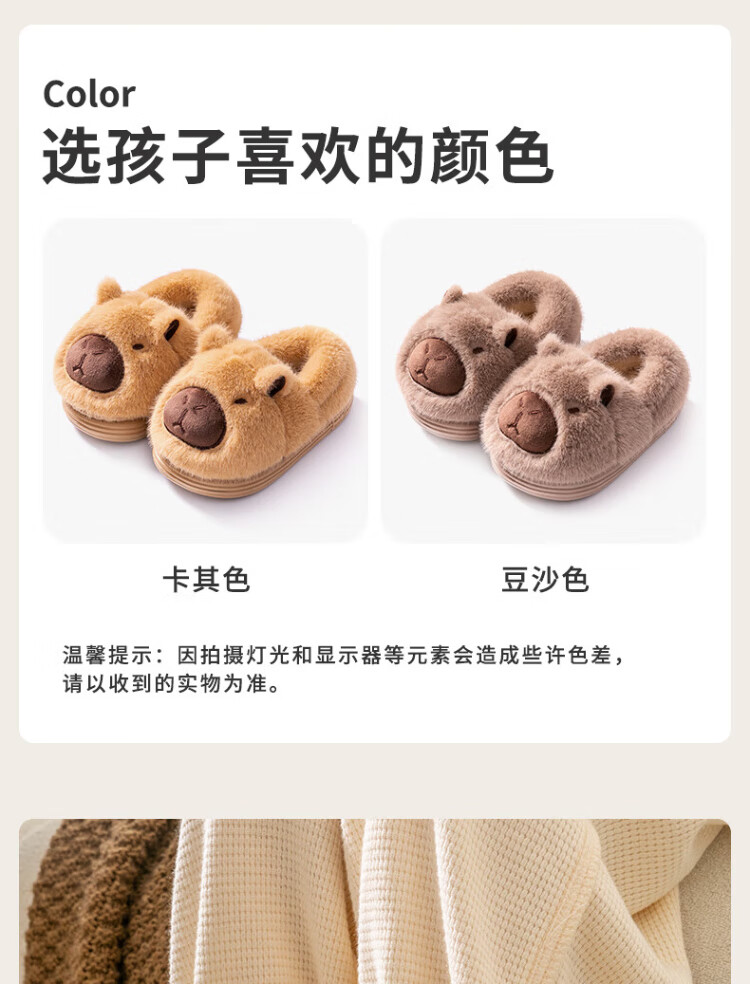 Pig Daddy Kapibara Children's Cotton Slippers Boys Autumn and Winter Girls Bag Heel Indoor Non-Slip Warm Cotton Shoes Khaki 21