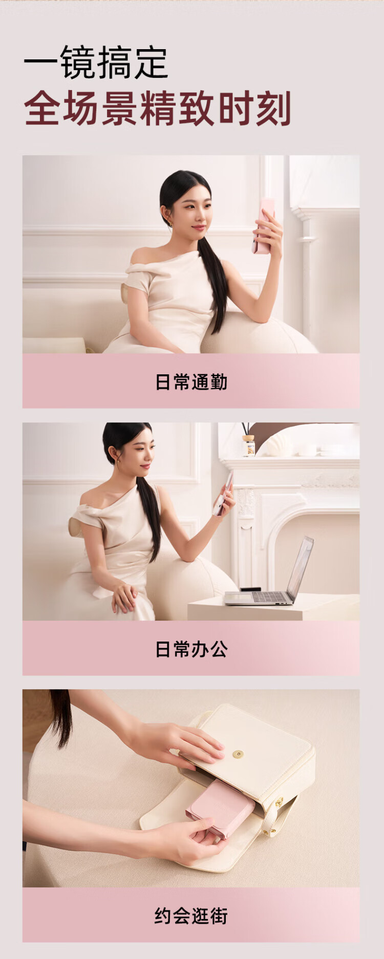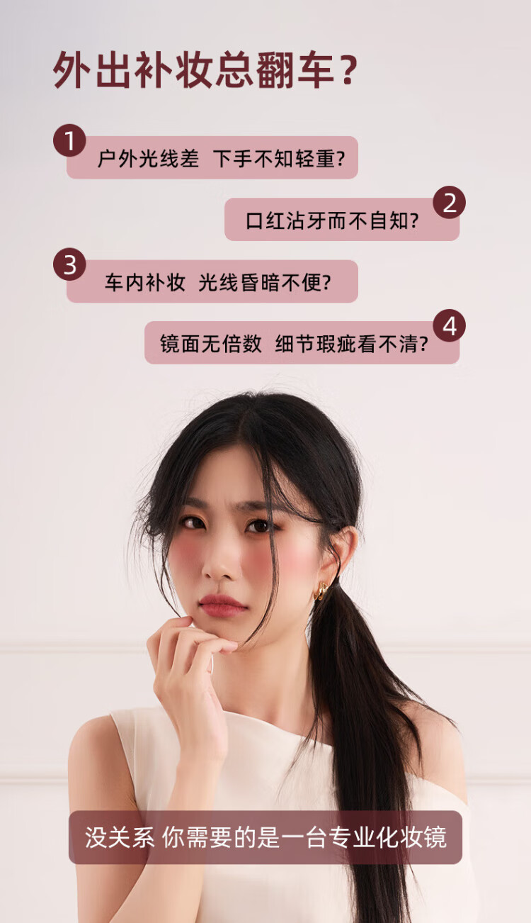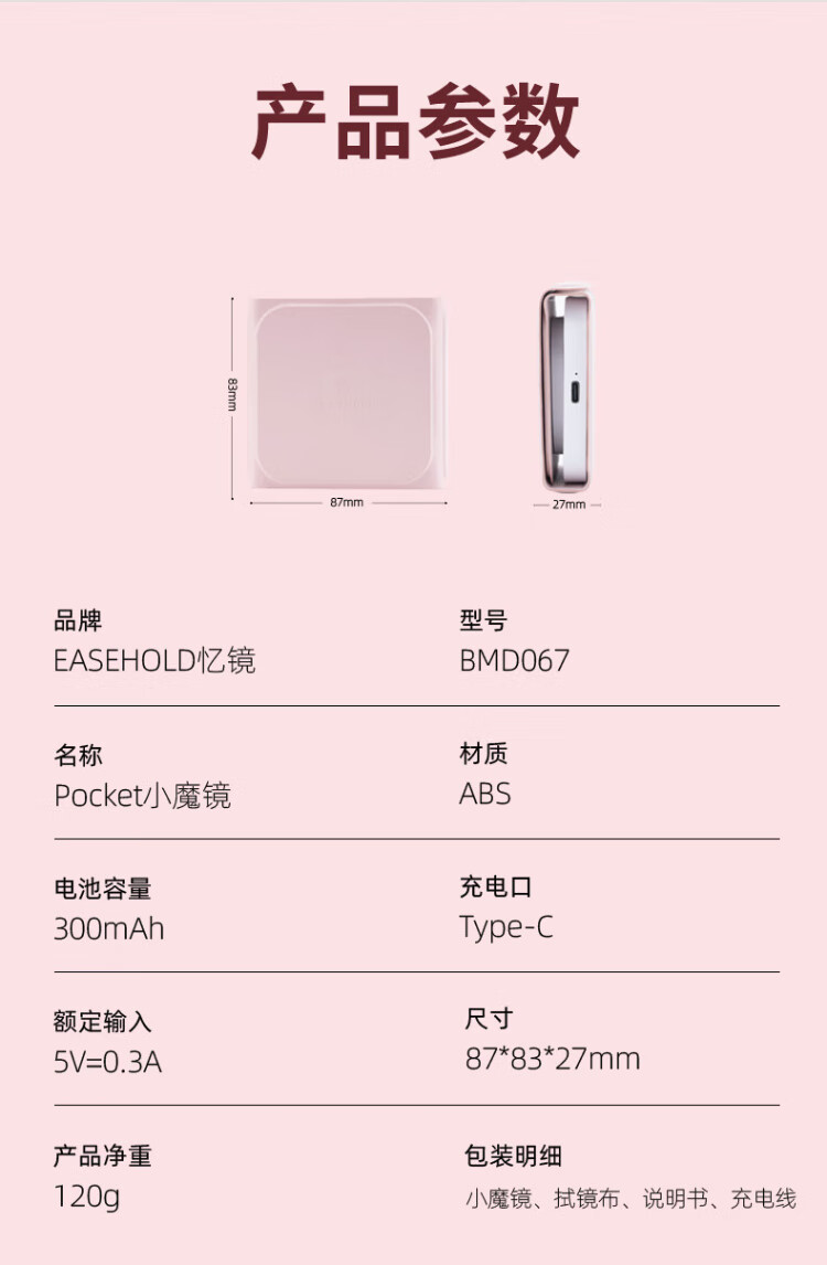 EASEHOLD Yi Jing Cosmetic Mirror Pocket Portable Mirror Carrying Small Mirror Women's Portable Handheld Luminous Light Mirror Christmas Birthday Gift