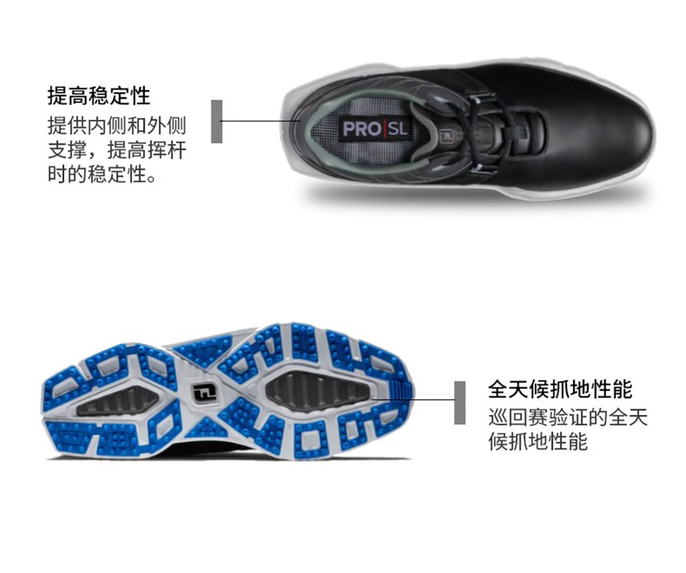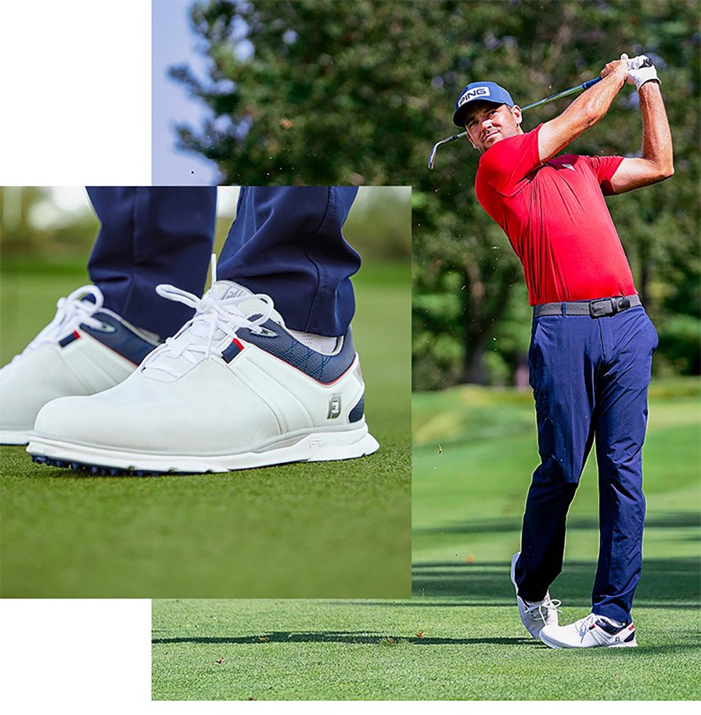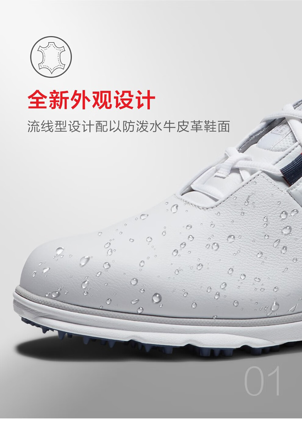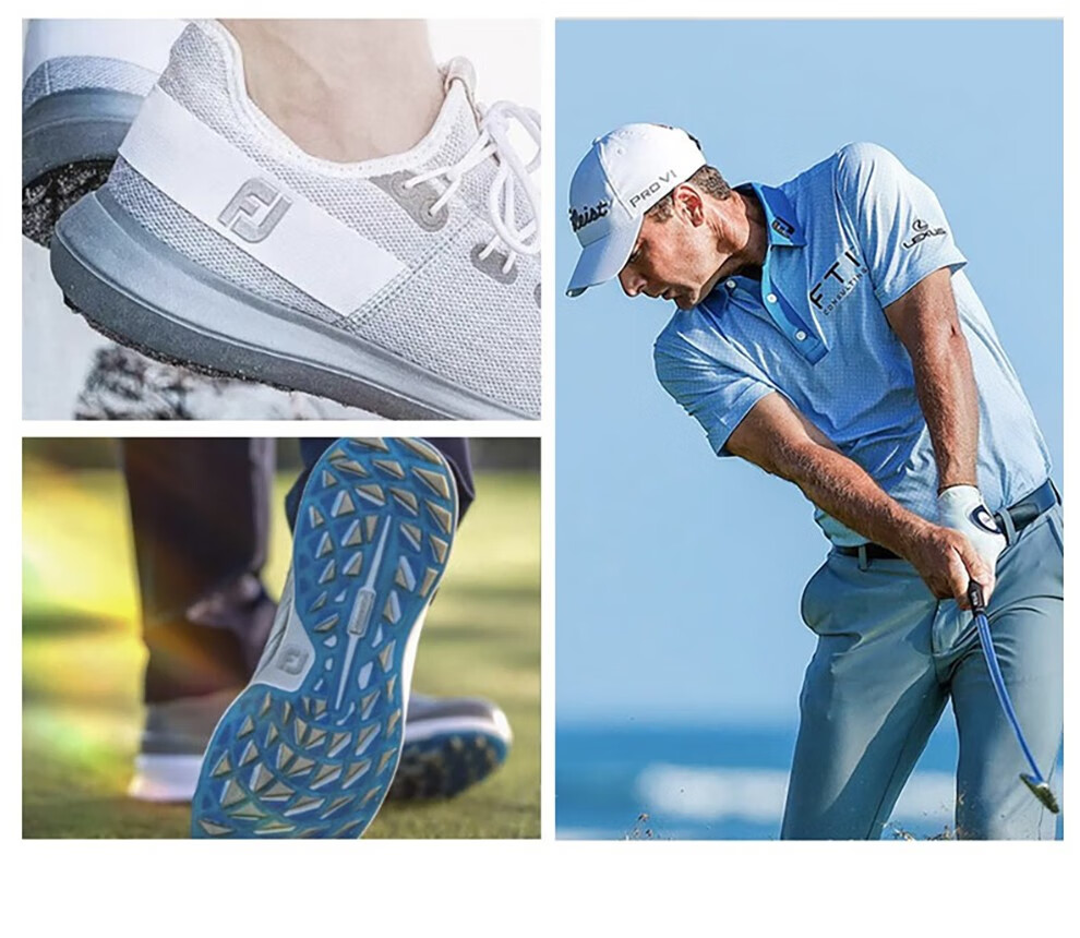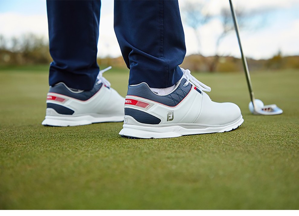FootJoy Golf Shoes Men's FJ Pro/SL Series Comfortable Cushioning Anti-Slip Breathable Sports Professional Spike-Free Shoes 53074 White/Blue/Red Lace Up Size 42-8.0