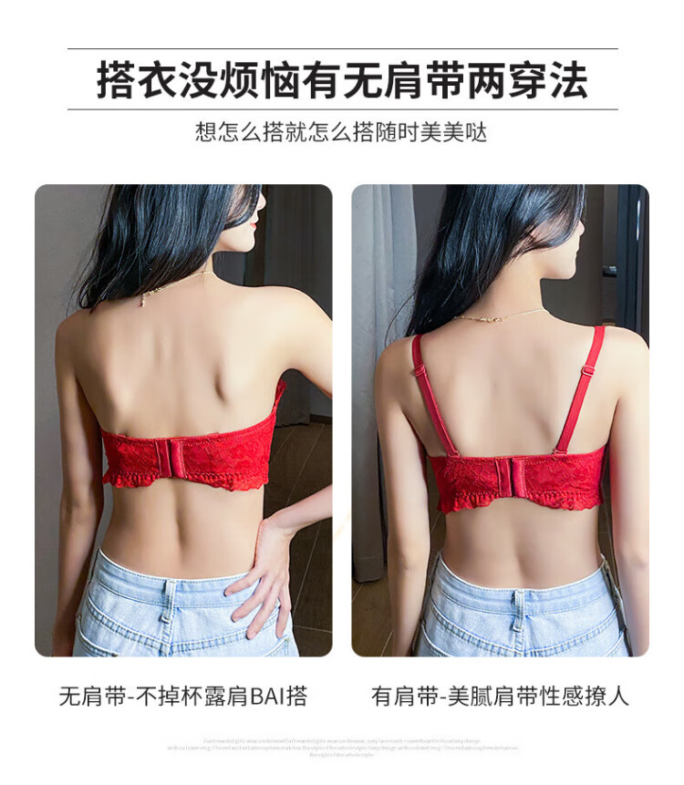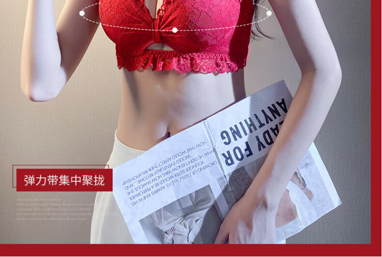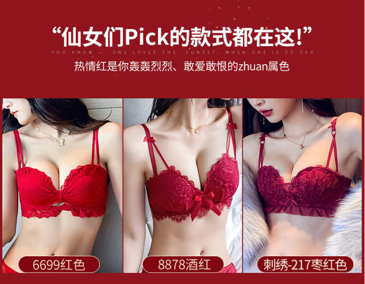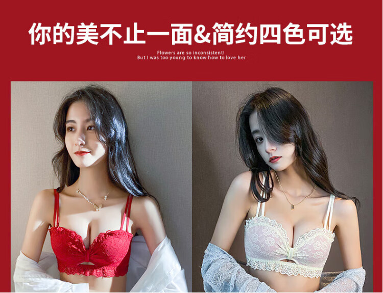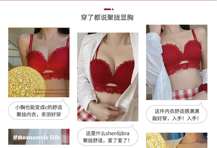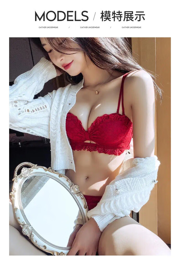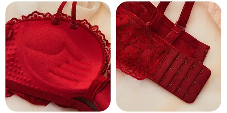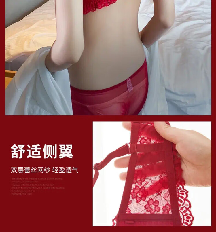 La Chapelle Wireless Small Breast Push Up Sexy Lace Underwear Women's Birthday Red Latex Bra Set Birthday Gift