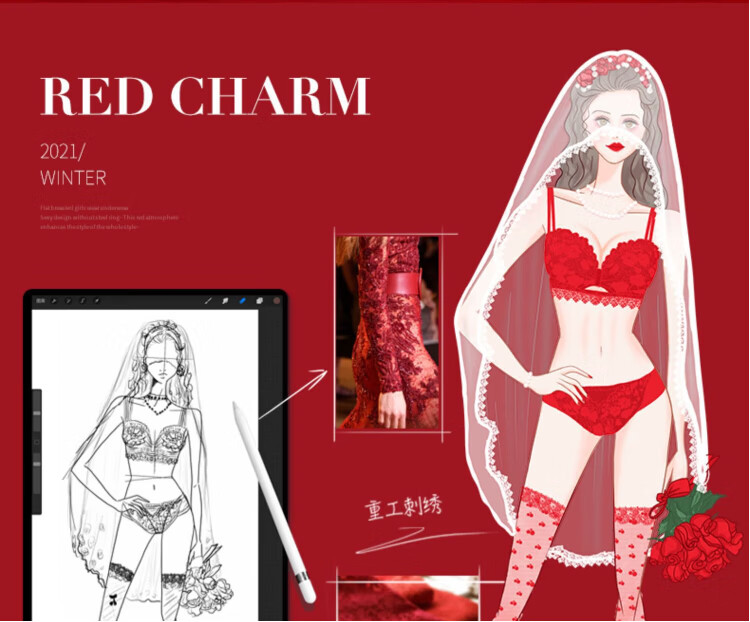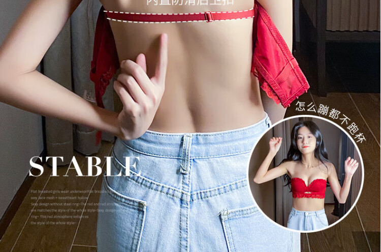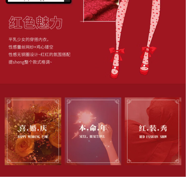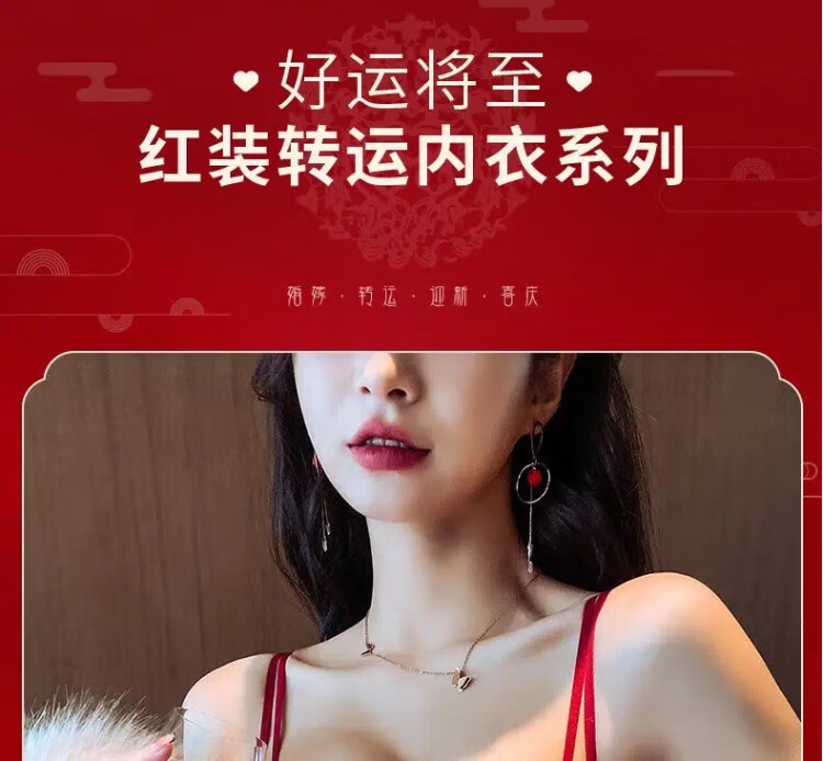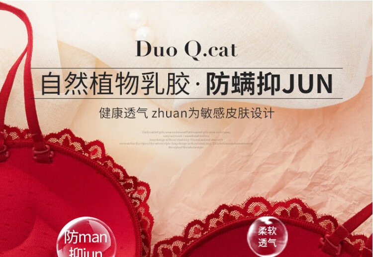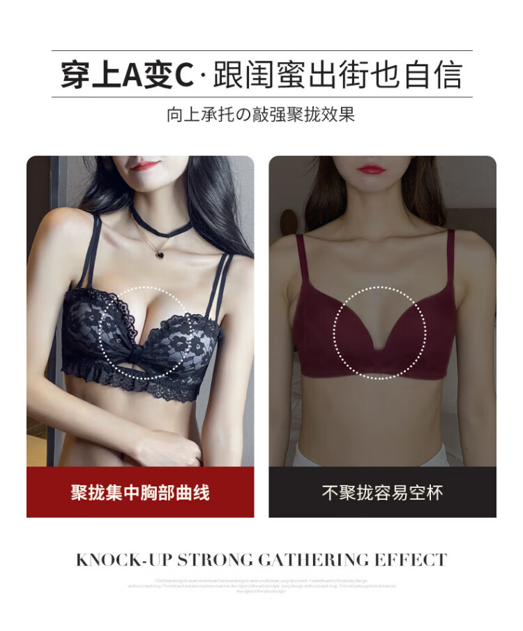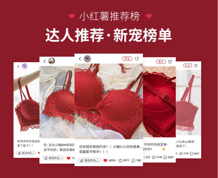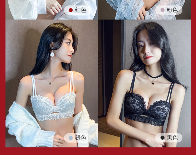 La Chapelle Wireless Small Breast Push Up Sexy Lace Underwear Women's Birthday Red Latex Bra Set Birthday Gift