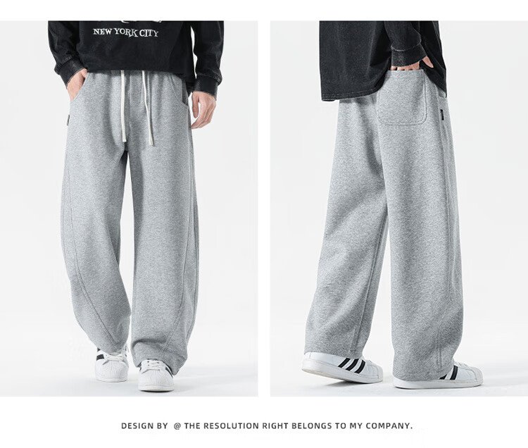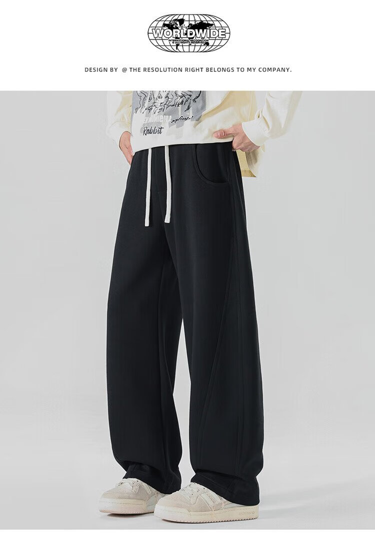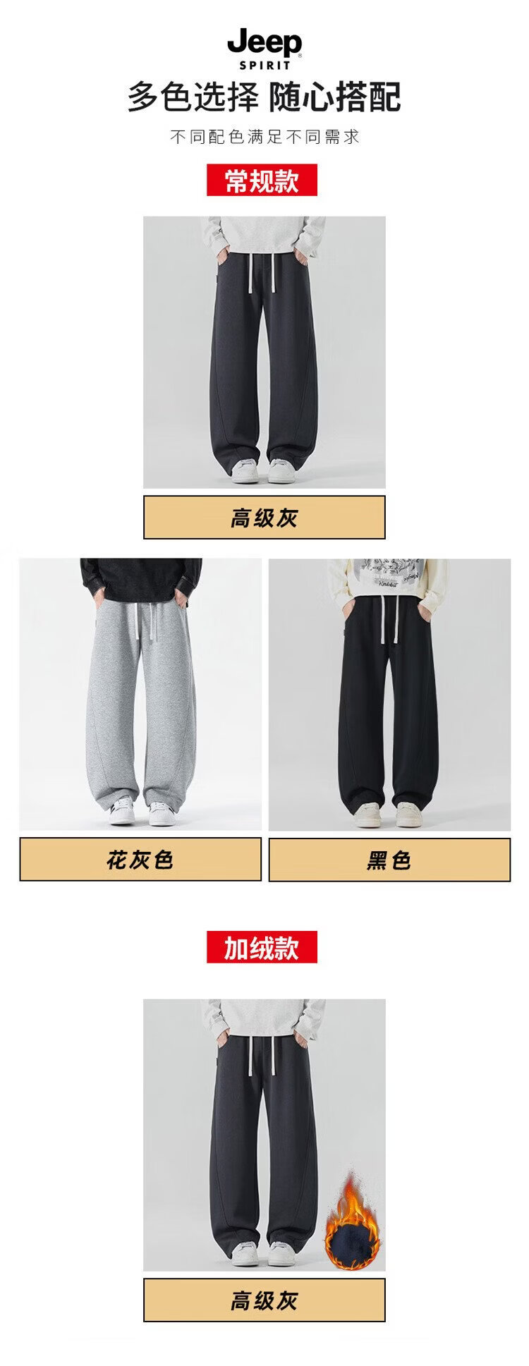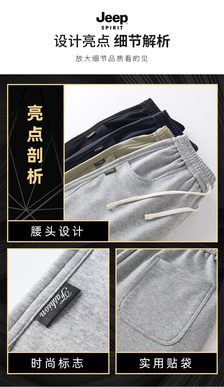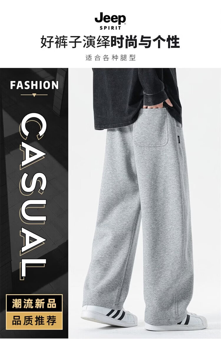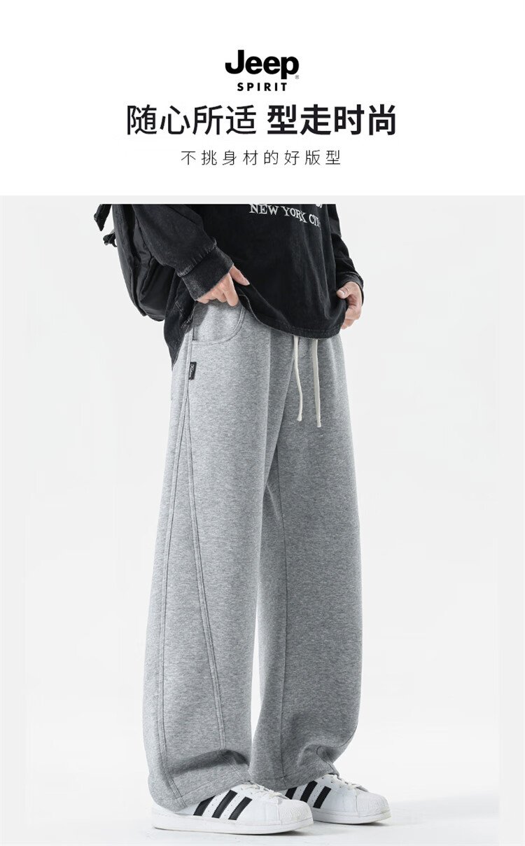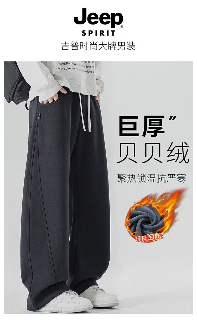 JEEP SPIRIT Jeep pants men's velvet casual pants men's autumn and winter straight loose wide-leg scimitar thickened warm sweatpants