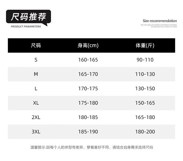 China (cm) 165 / 88-90 170 / 96-98 175 / 108-110 180 / 118-122 185 / 126-130