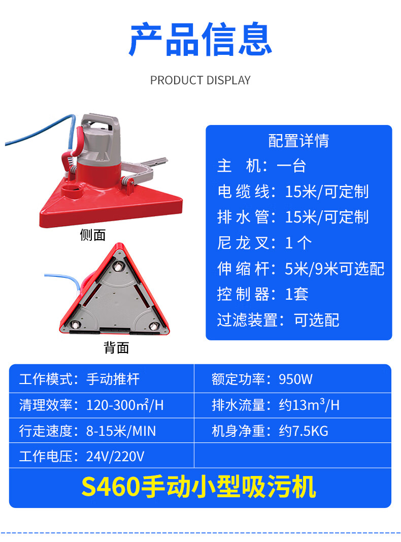 JENLER swimming pool suction machine fully automatic manual underwater robot fish pond bottom water turtle cleaner manual vacuum cleaner Y460 direct discharge + filter package