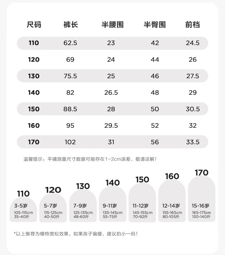 China (cm) 160-165/84-86 165-170 / 88-90 167-172 / 92-96 168-173 / 98-102 170-176 / 106-110