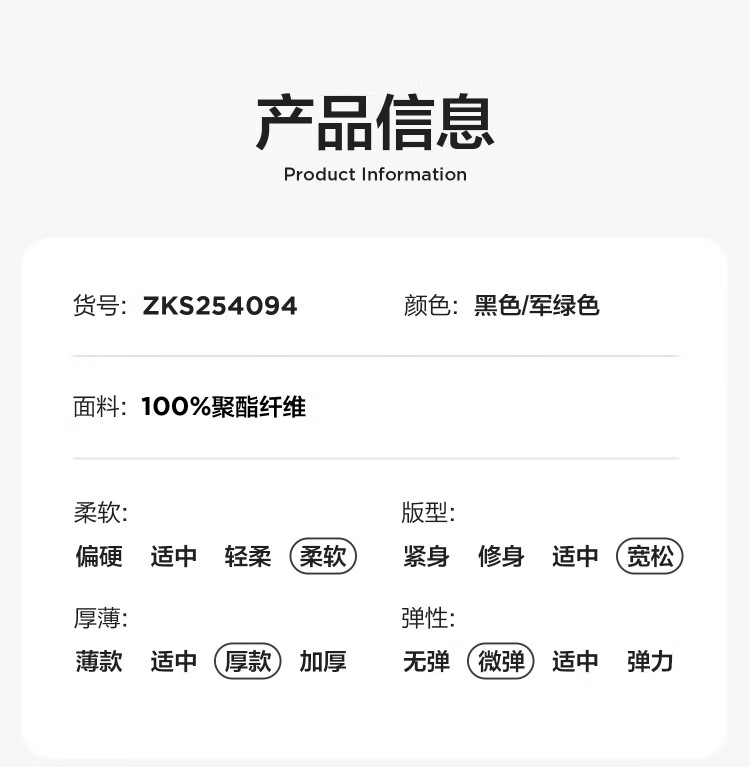 China (cm) 165 / 88-90 170 / 96-98 175 / 108-110 180 / 118-122 185 / 126-130