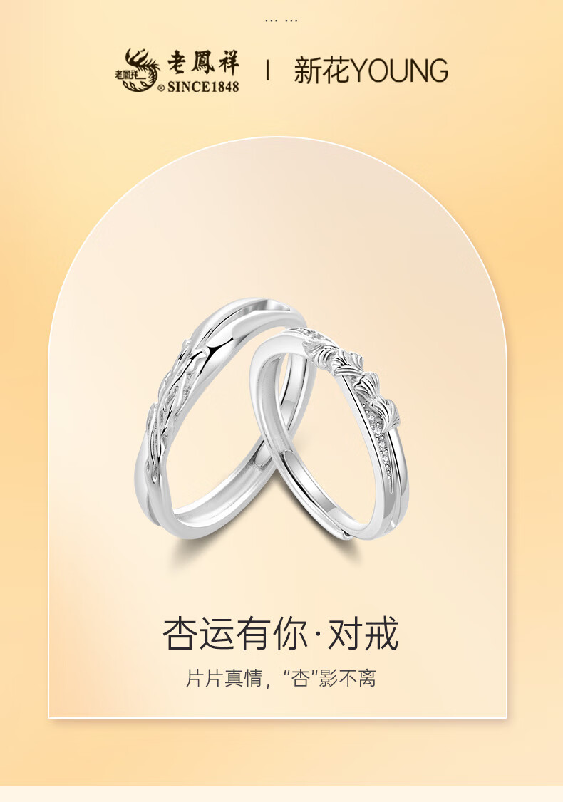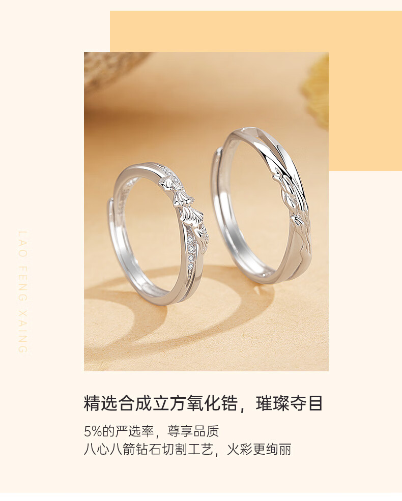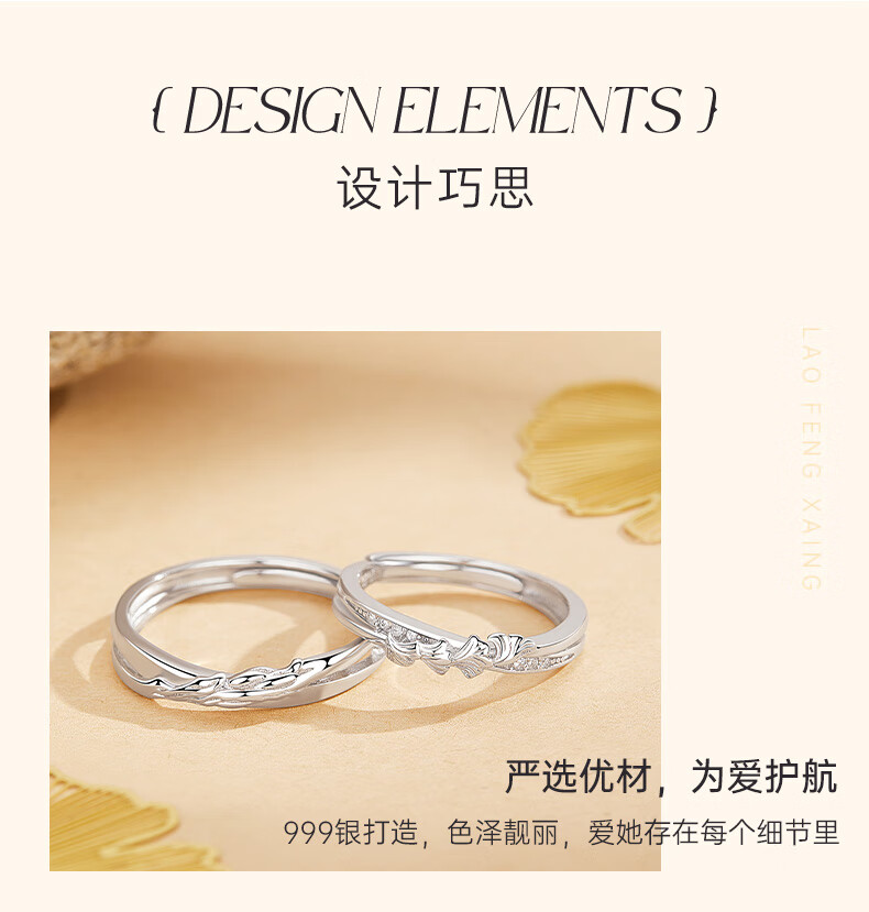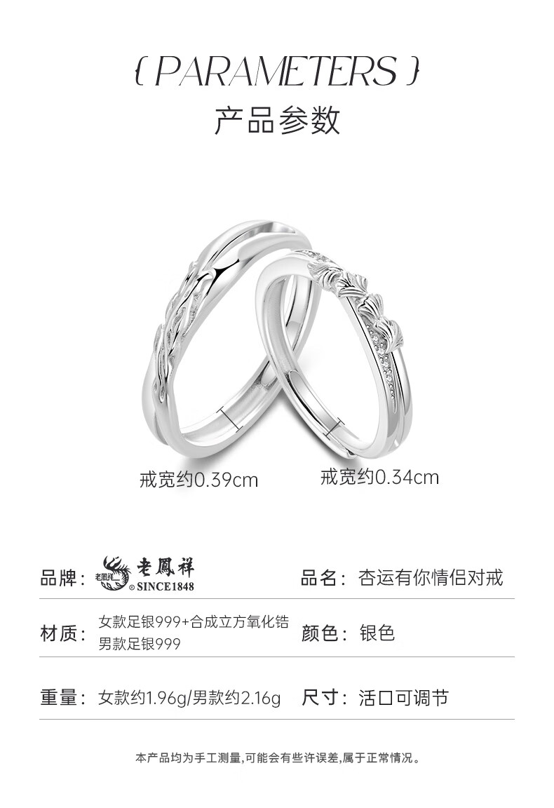 Lao Fengxiang 999 pure silver couple ring men's and women's life ring a pair of jewelry Valentine's Day birthday gift girlfriend and wife
