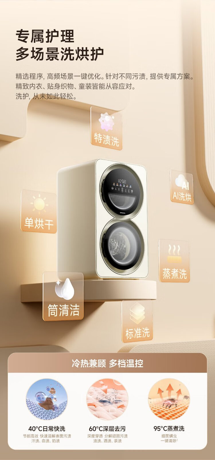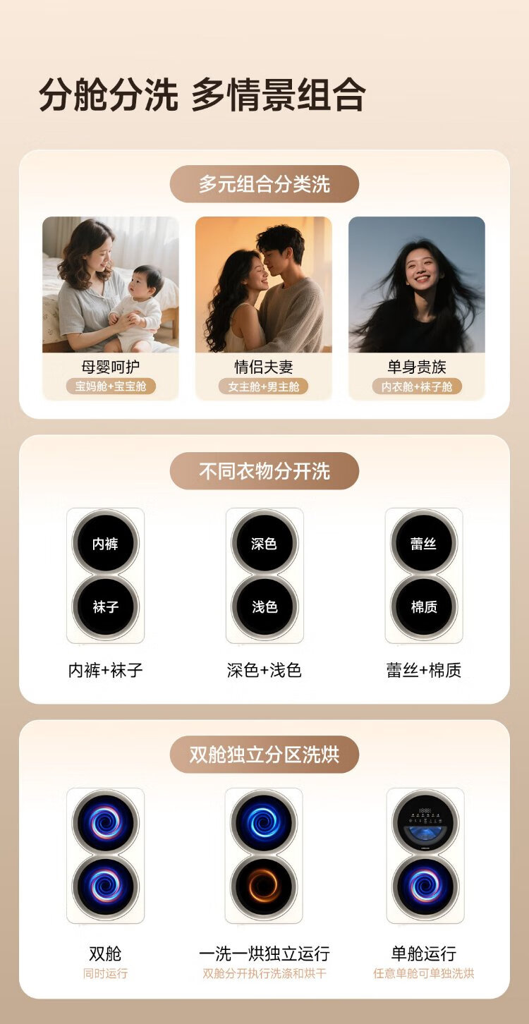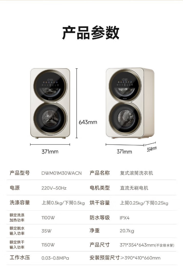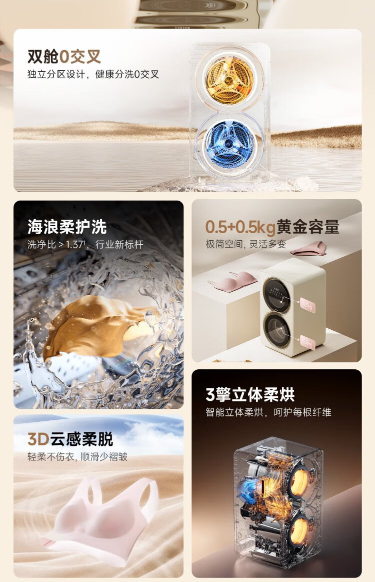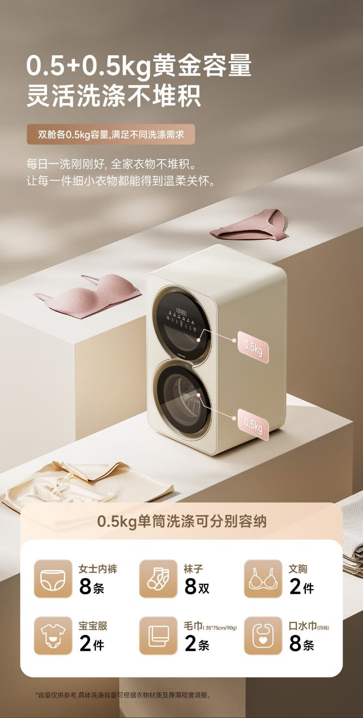 Chaimi double yolk egg double cabin underwear washing and drying machine 0.5+0.5kg maternal and infant sterilization fresh air underwear washing machine DWM01M30WACN