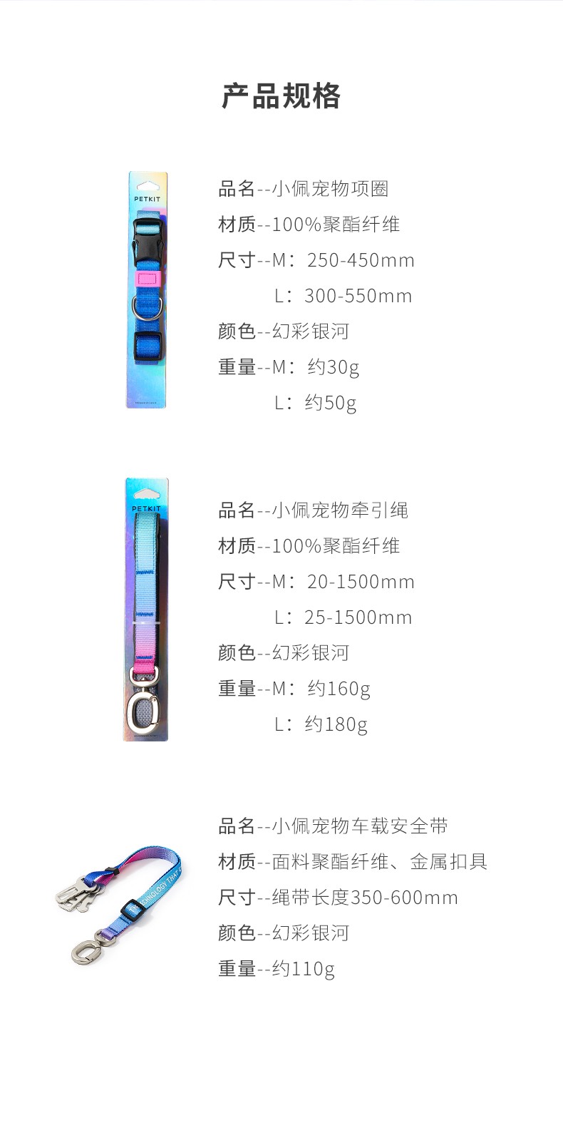 Xiaopei Pet Safety Belt Colorful Galaxy Collar Traction Rope Collar Pet Small and Medium-sized Dog Walking Leash Outing Supplies Car Safety Belt (Same Size) One Size