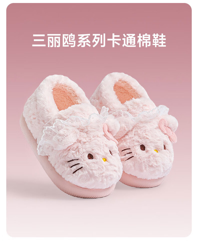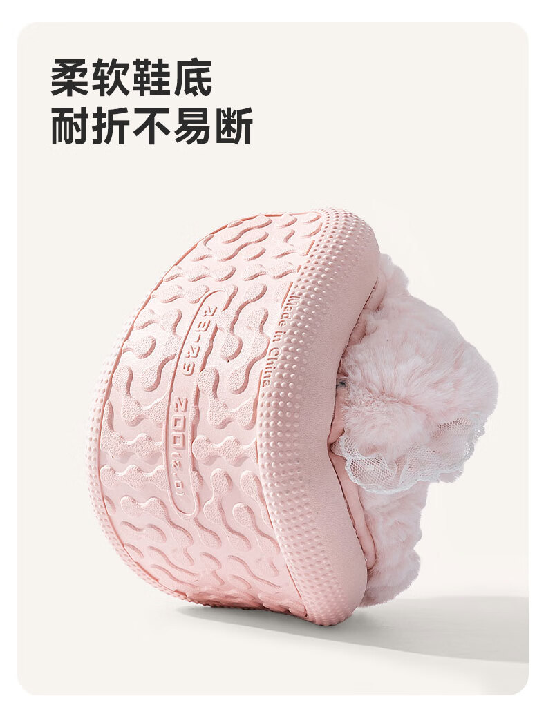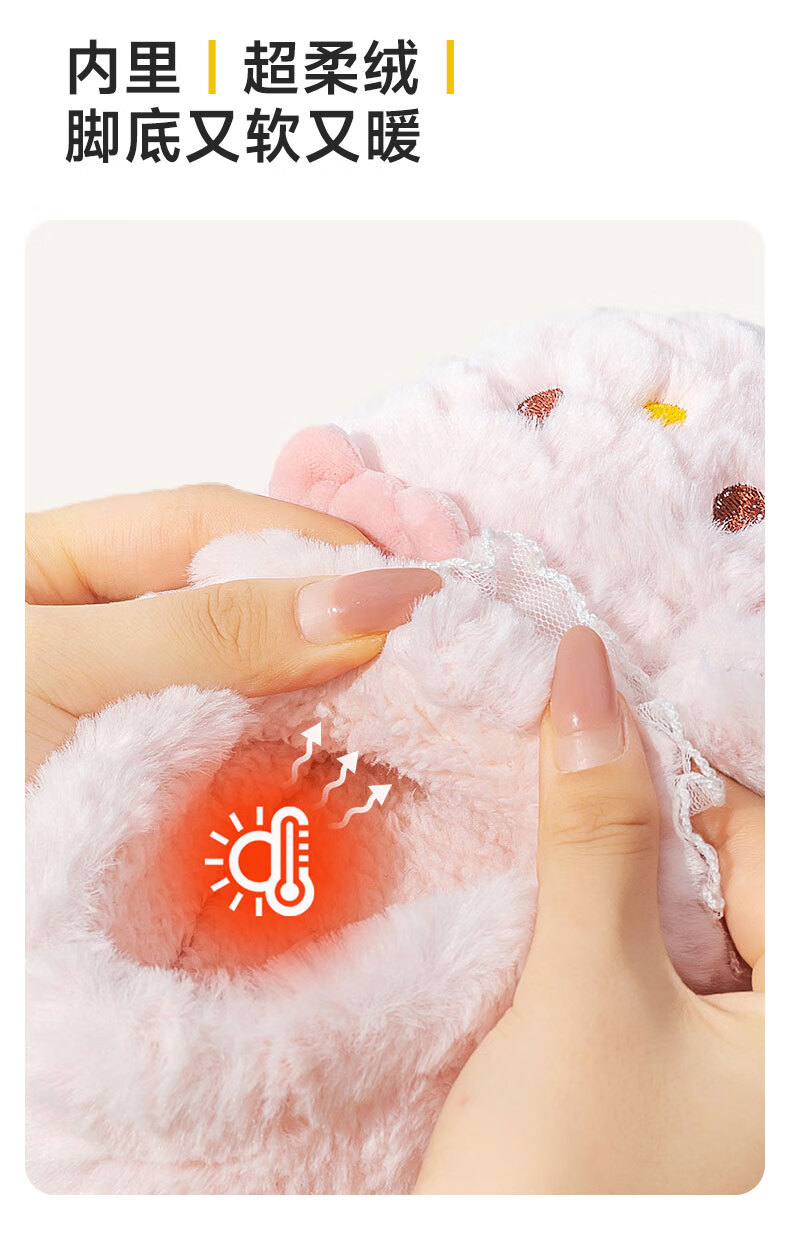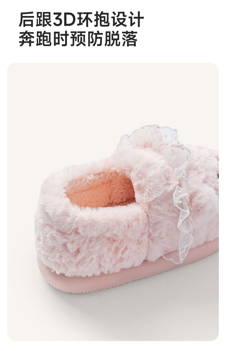 Pig Daddy Children's Cotton Slippers Girls Winter Indoor Heel Anti-Slip Warm Middle and Large Children Cartoon Comfortable Soft Soled Slippers Powder 22
