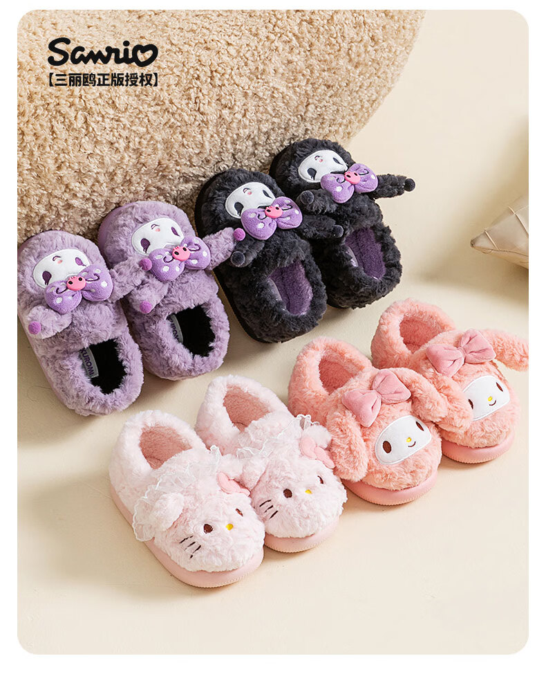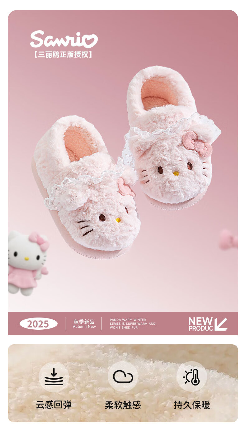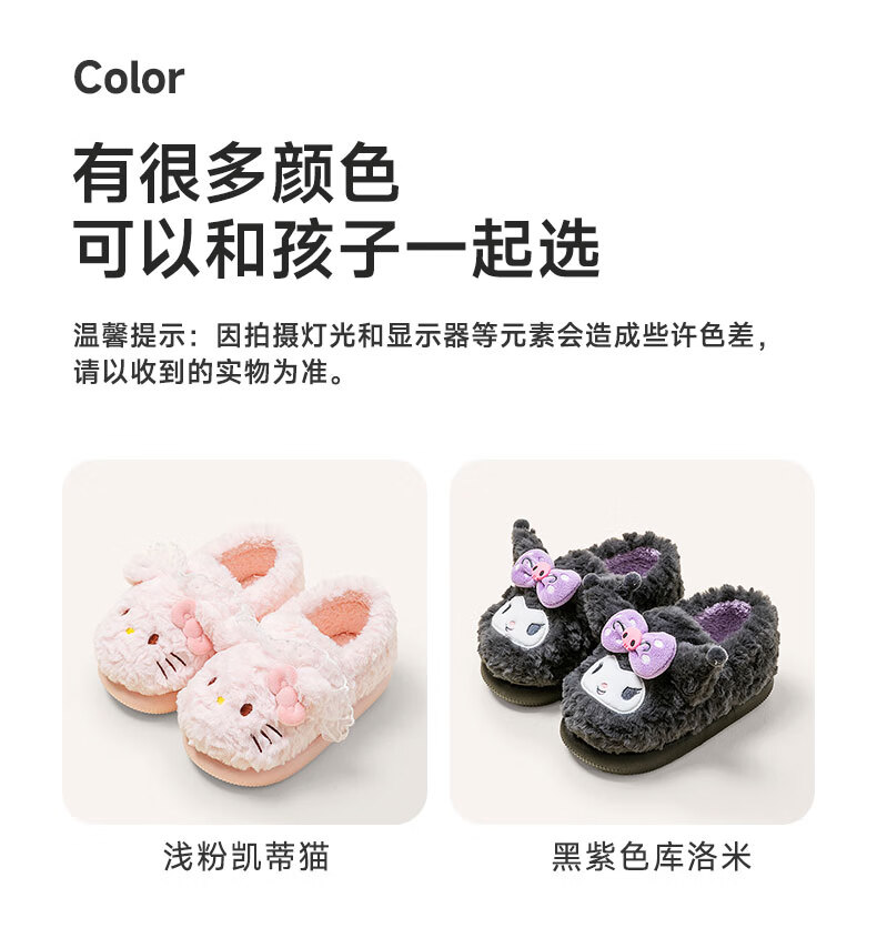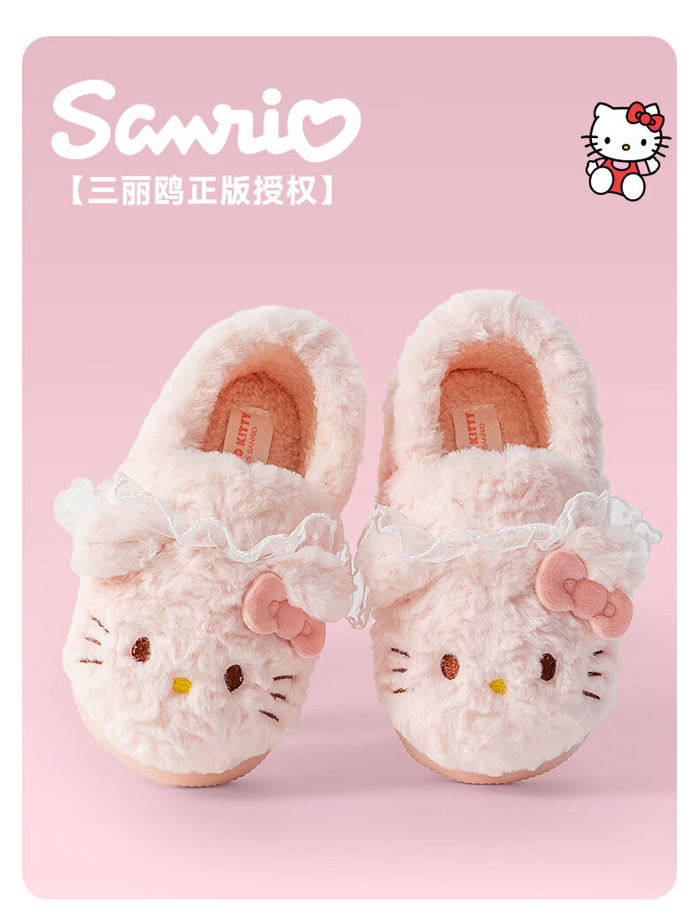 Pig Daddy Children's Cotton Slippers Girls Winter Indoor Heel Anti-Slip Warm Middle and Large Children Cartoon Comfortable Soft Soled Slippers Powder 22