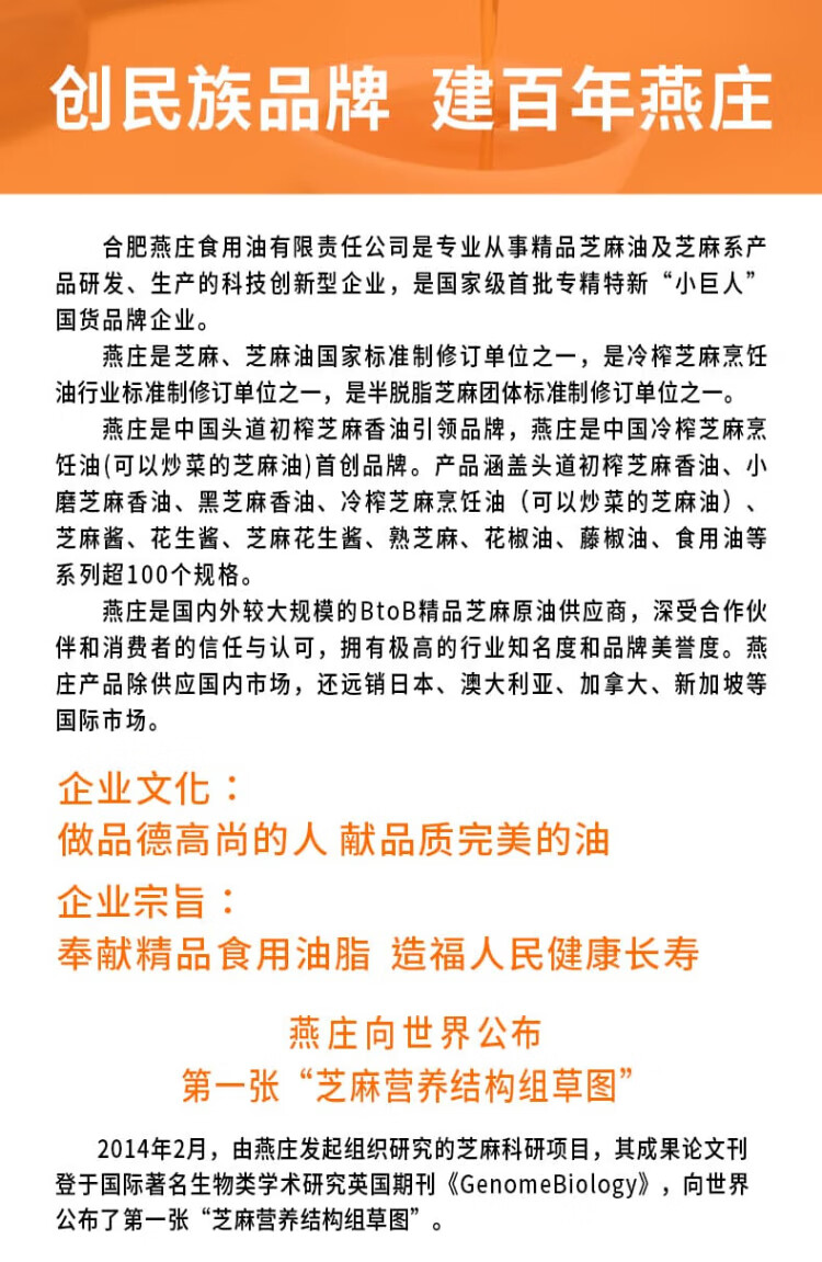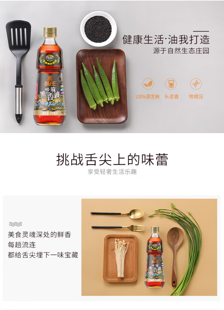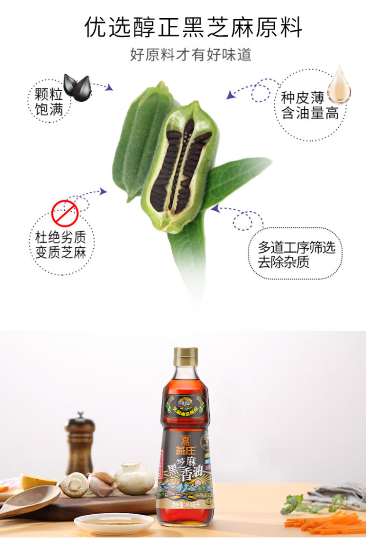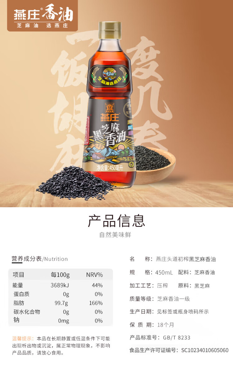 Yanzhuang sesame oil 450ml first grade pure black sesame oil cold hot pot oil dish seasoning