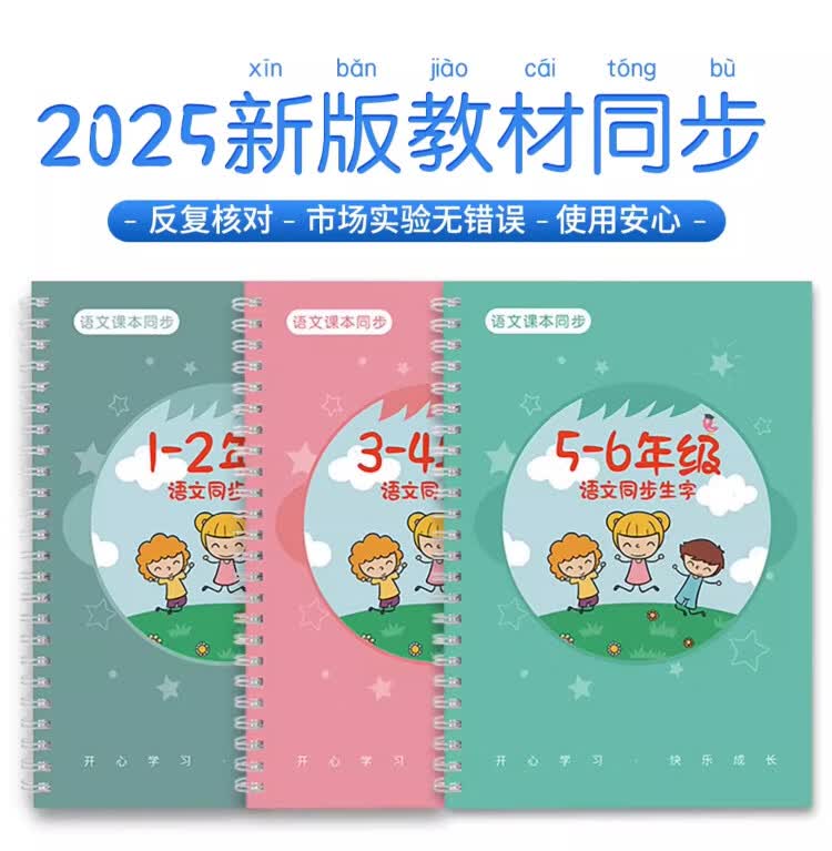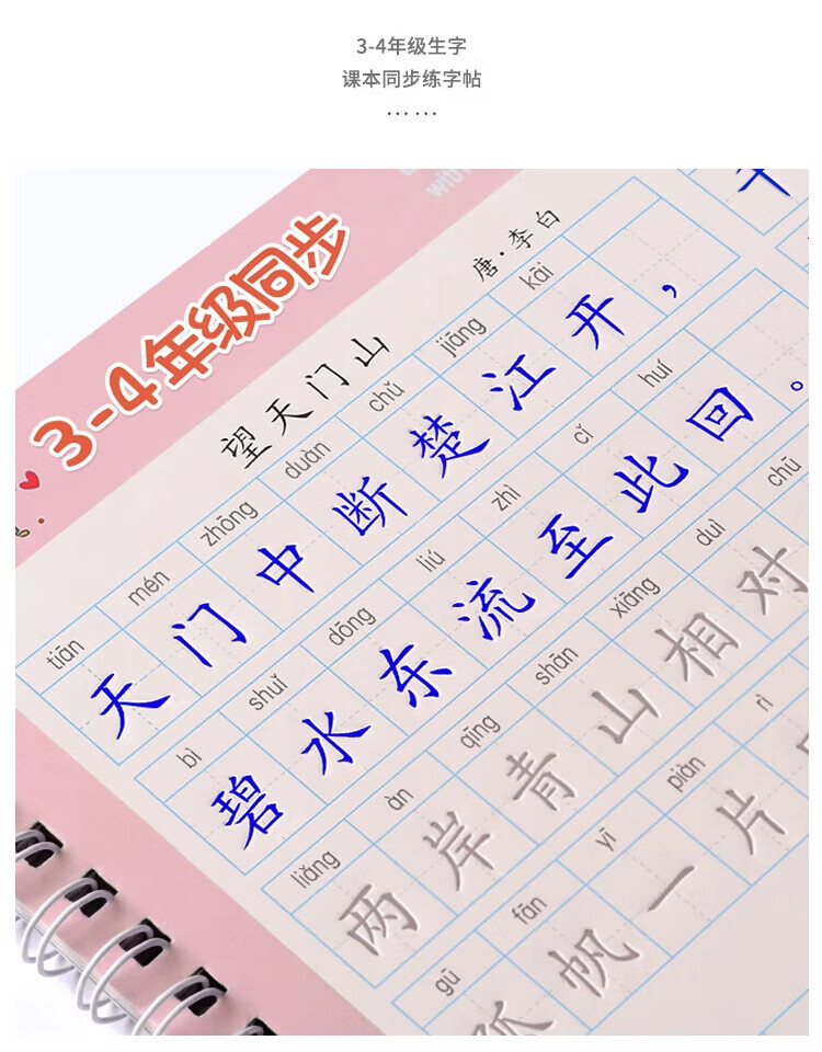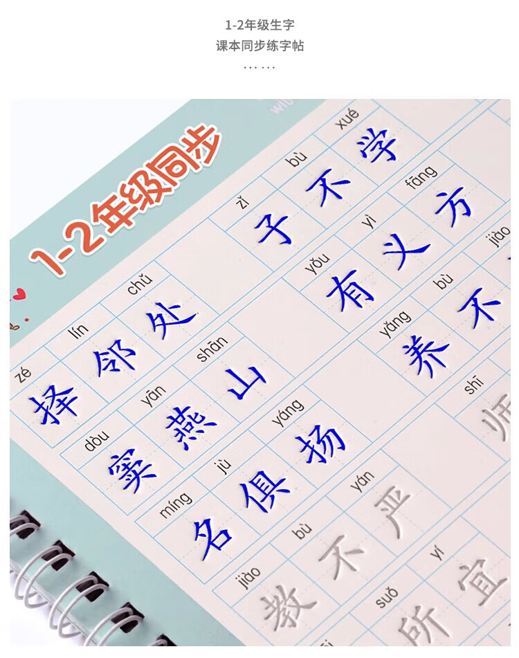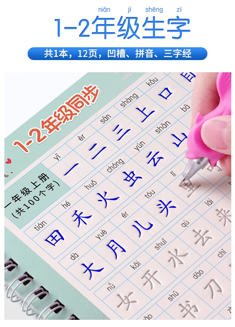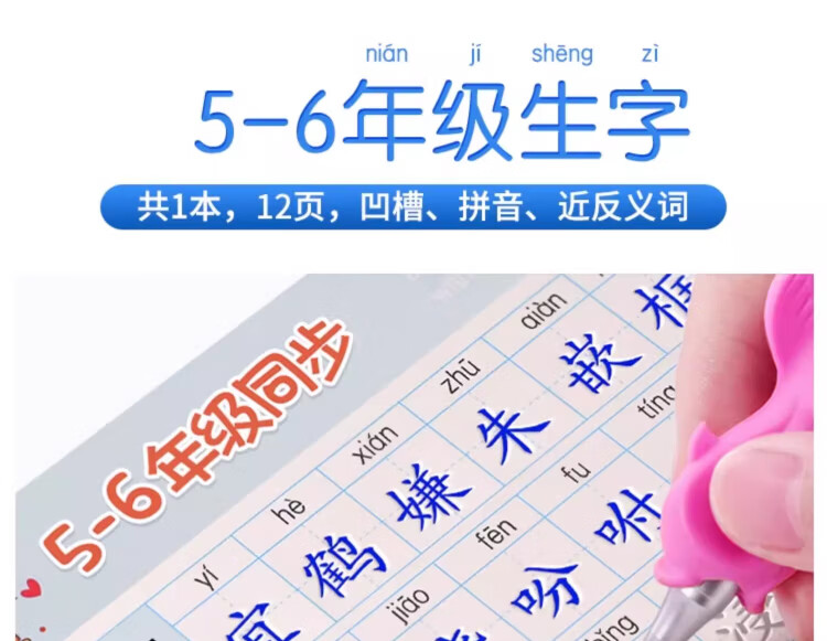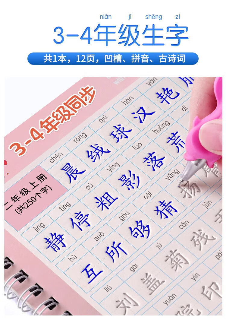 Jinzhiye 1-2 grade groove practice calligraphy book for primary school students, special People's Education version of the Chinese language copybook, daily practice of four, five and six synchronized new words, hard-pen calligraphy practice book, children's pen control training