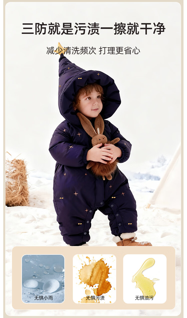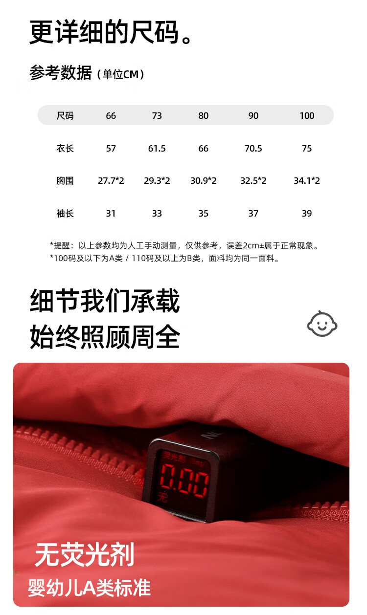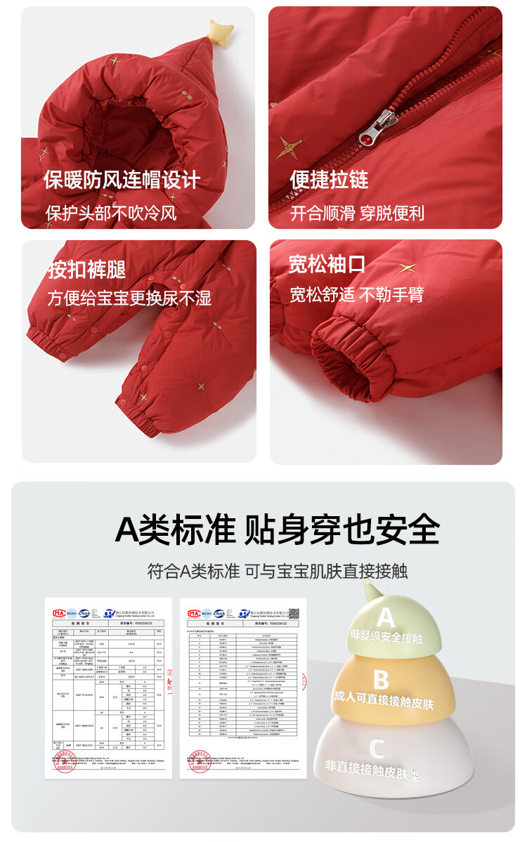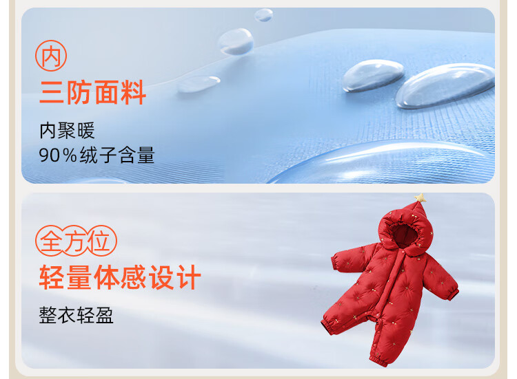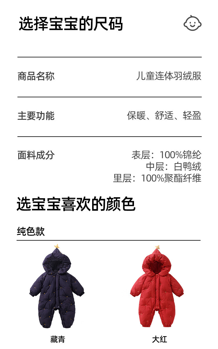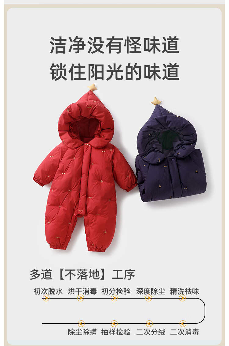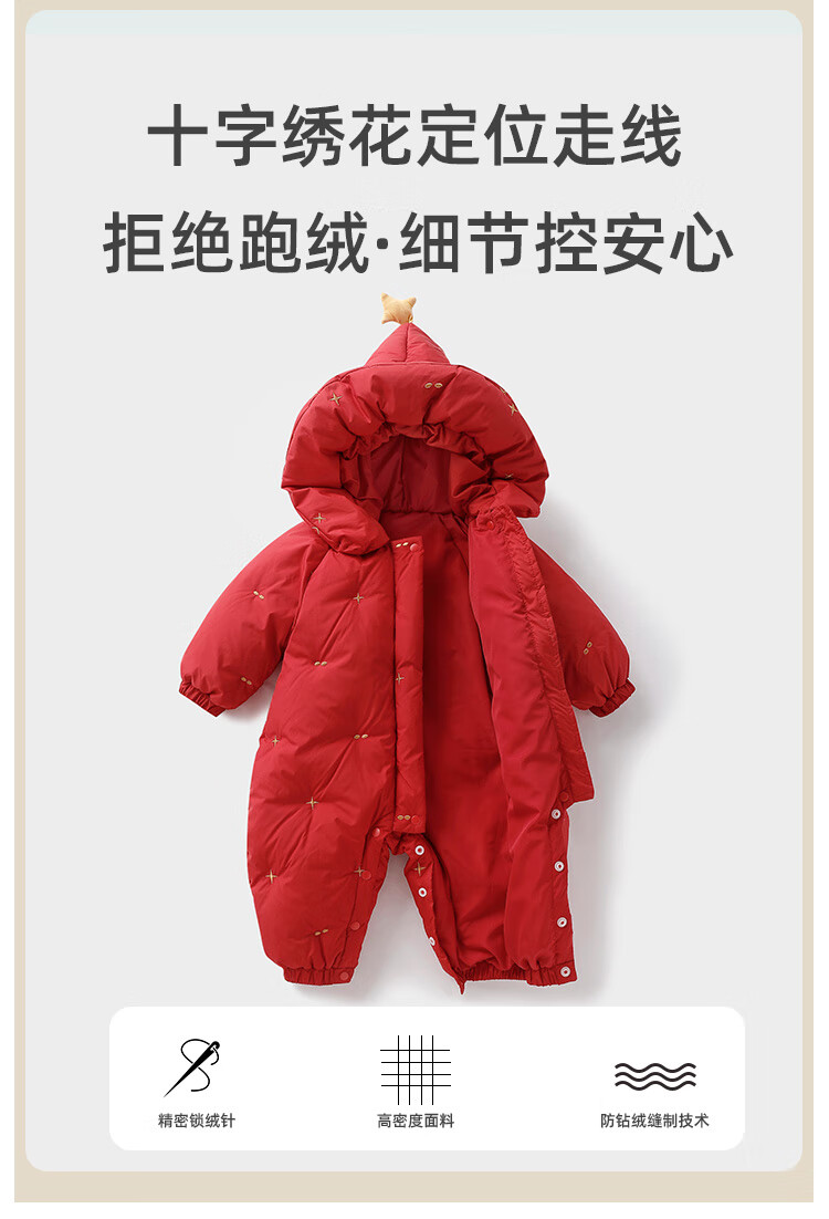 Yishuanger Baby Down Jumpsuit Autumn and Winter Baby Warm Clothes Newborn Romper Suit Big Red 90cm