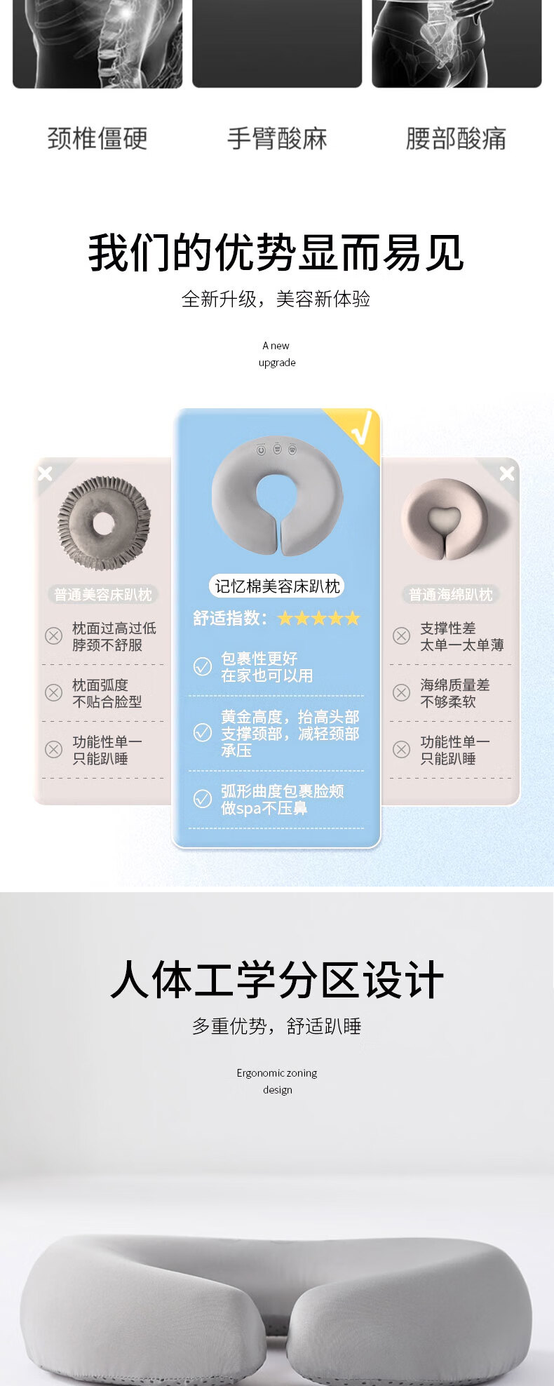 Chuangmaxi lying pillow beauty bed lying sleeping pillow multi-functional memory foam rebound beauty salon massage massage bed U-shaped lying sleeping pillow