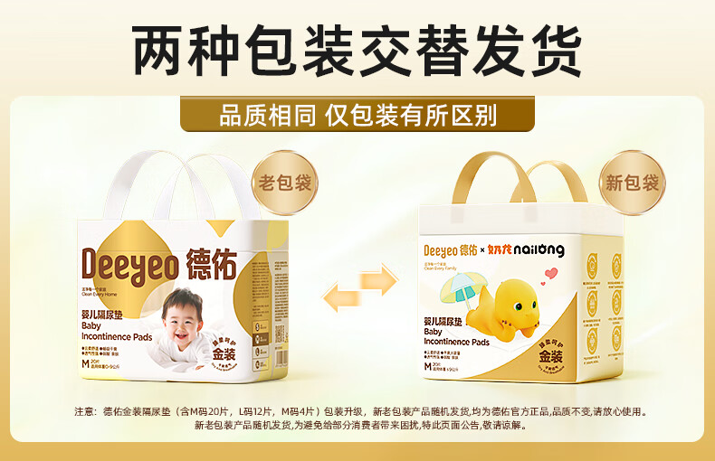 Deyou baby diaper pad, newborn baby disposable mattress care pad, water-absorbent and breathable diaper pad, new upgrade, gold size M, 46 pieces