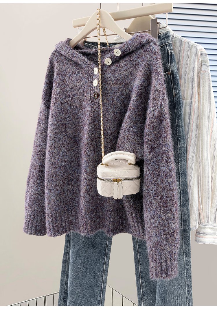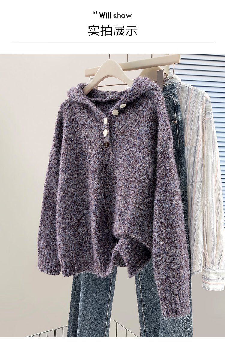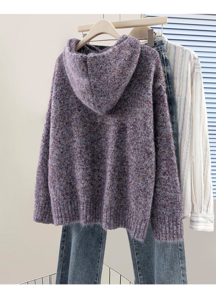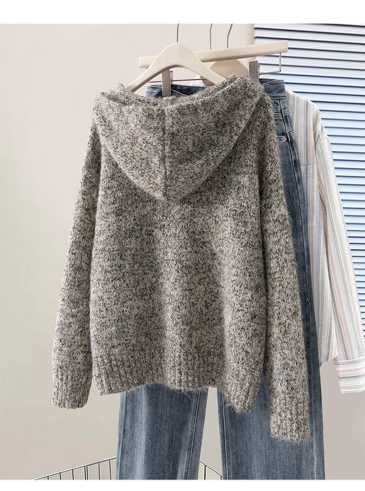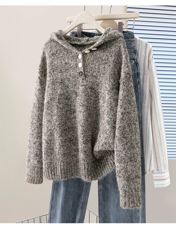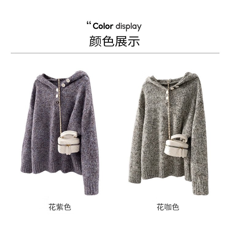 She Chihan Sheep Wool Hooded Loose Sweater Women's 2025 Winter New Soft Waxy Lazy Style Pullover Top