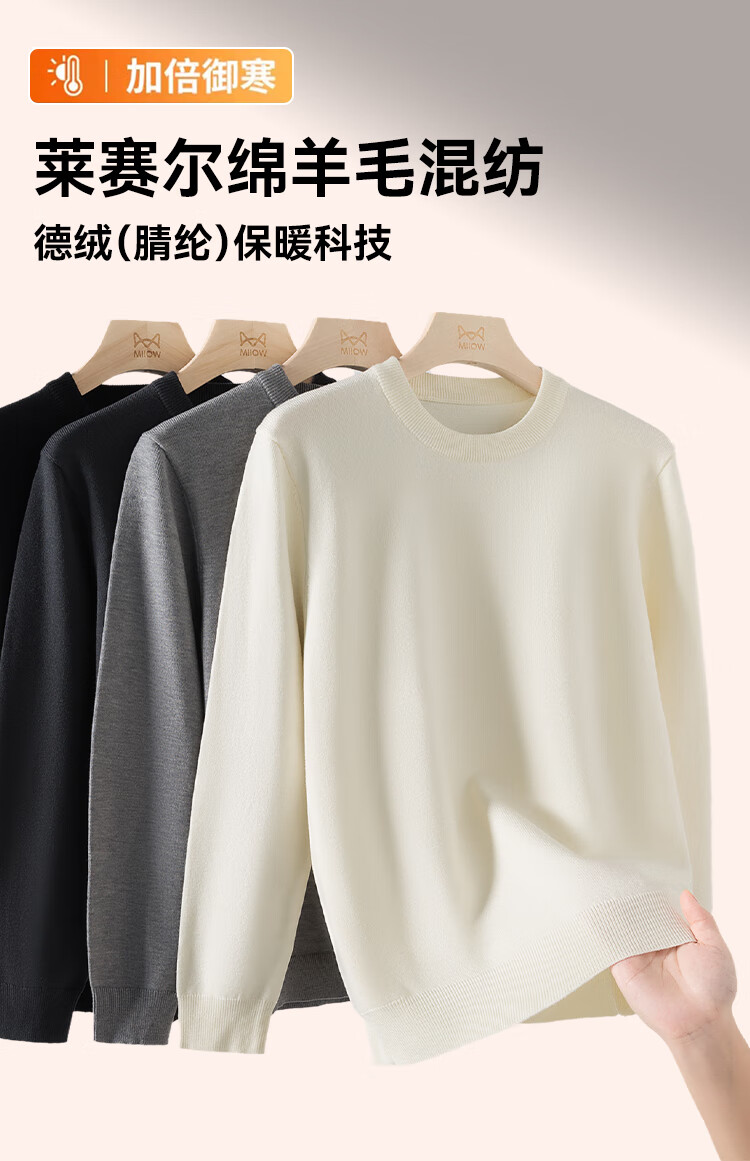 Catman sweater men's knitted sweater one-piece thickened velvet pullover autumn and winter youth mid-collar warm men's sweater