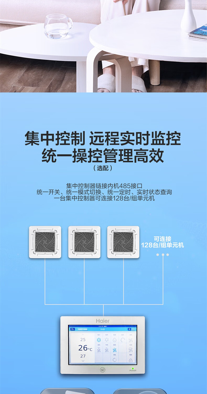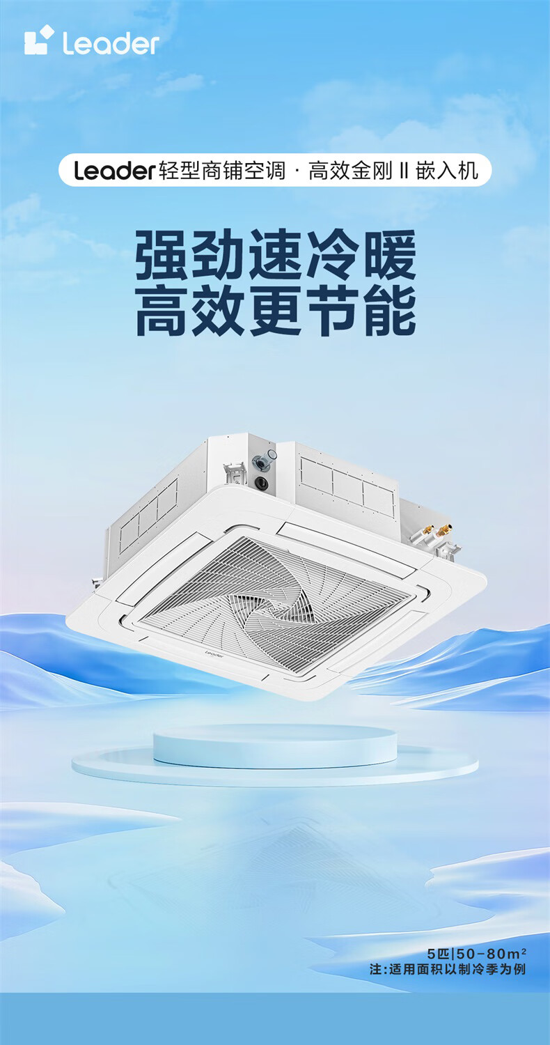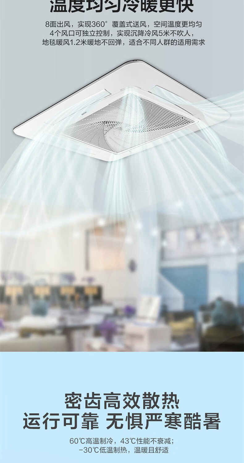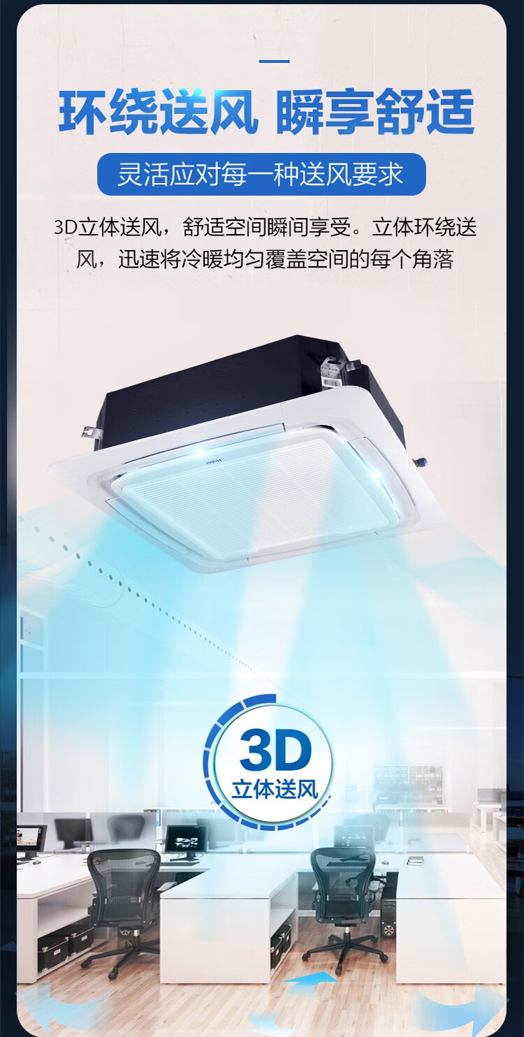 Haier 15% renewal subsidy Smart home central air conditioner ceiling air conditioner 3 hp\5 hp inverter heating and cooling one-to-one four-side air supply commercial built-in shop dedicated heating and cooling 5 hp second-level energy-efficiency energy-saving frequency conversion + fast cooling and heating + 3D four-side air supply