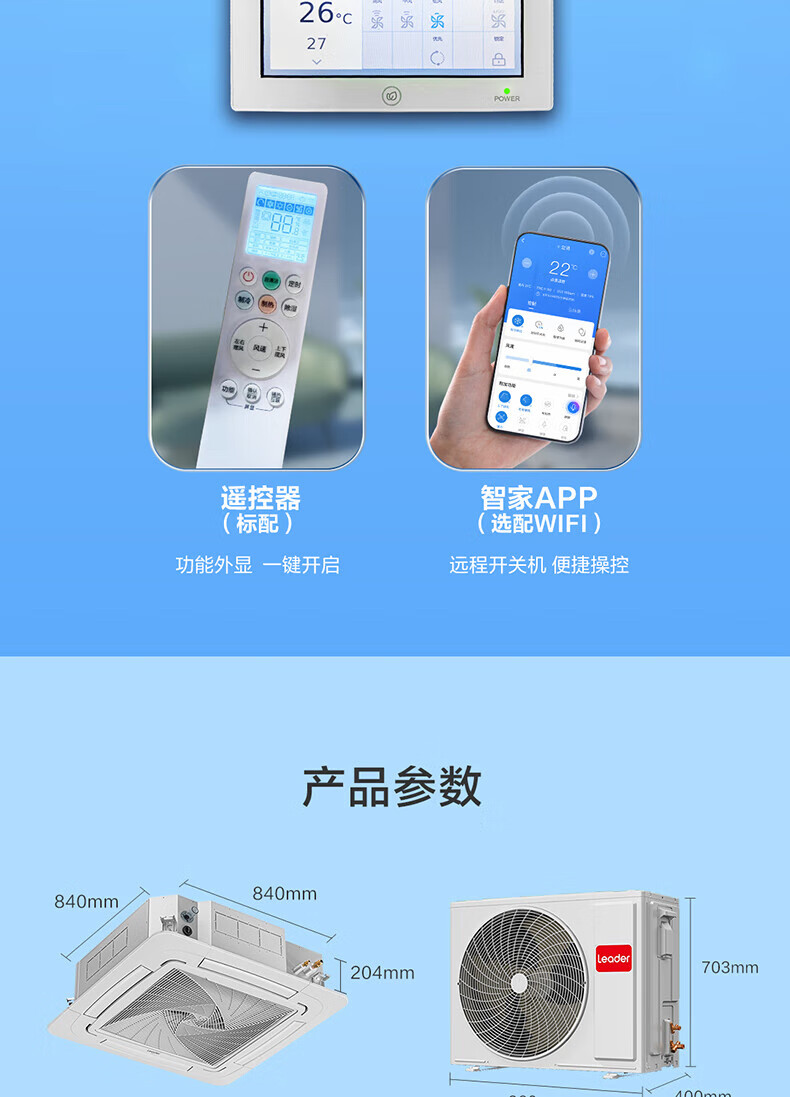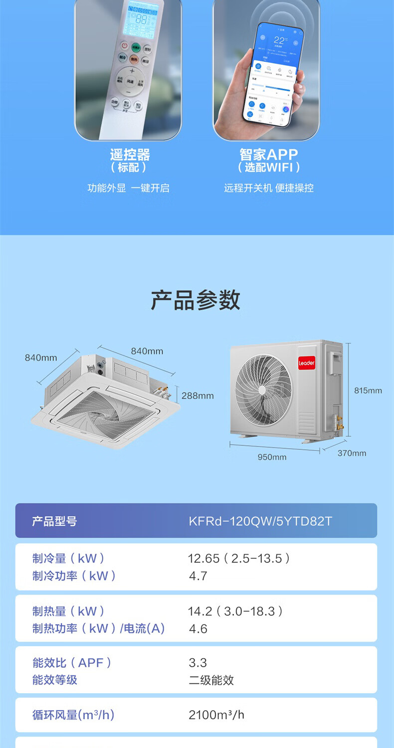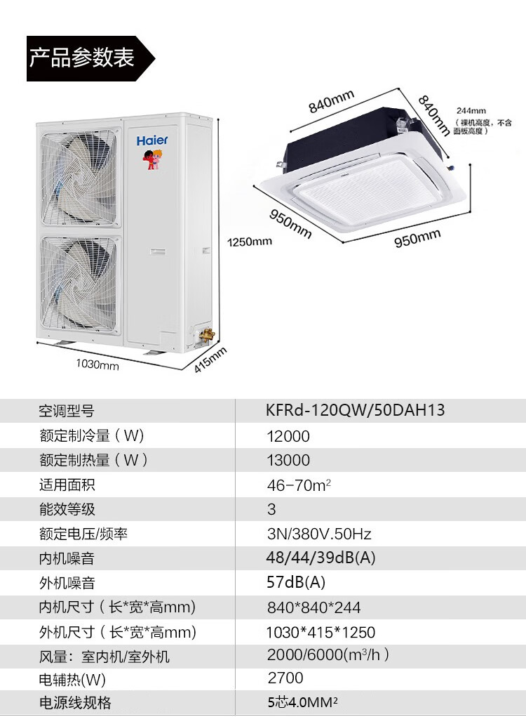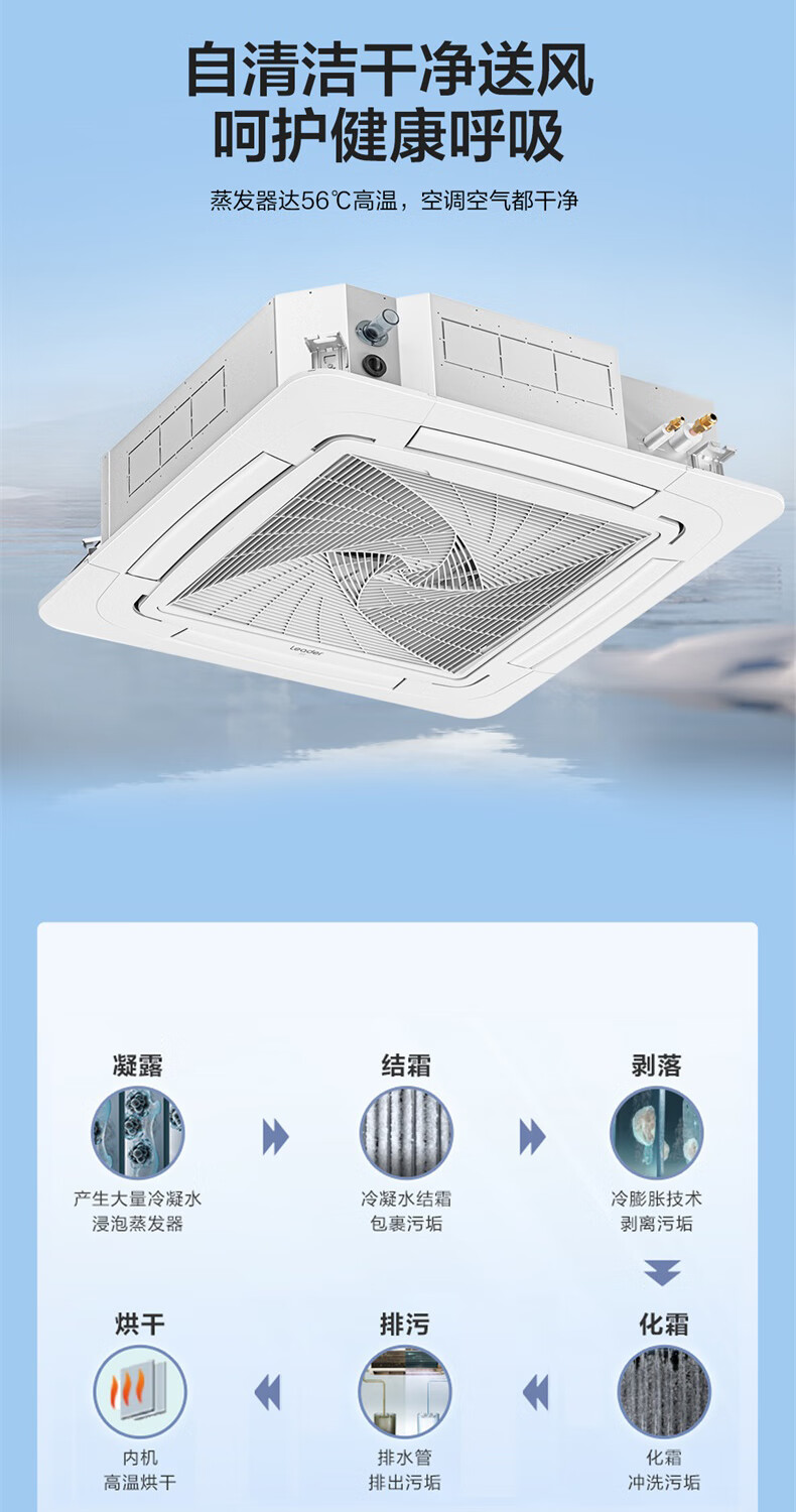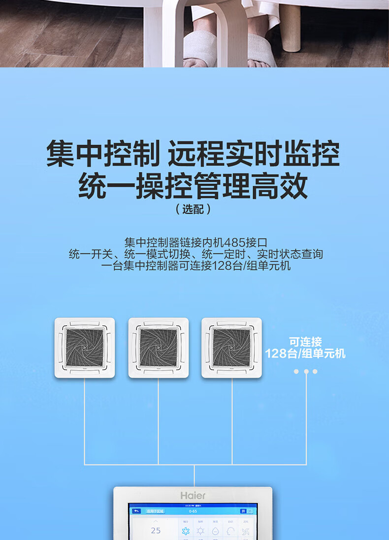 Haier 15% renewal subsidy Smart home central air conditioner ceiling air conditioner 3 hp\5 hp inverter heating and cooling one-to-one four-side air supply commercial built-in shop dedicated heating and cooling 5 hp second-level energy-efficiency energy-saving frequency conversion + fast cooling and heating + 3D four-side air supply