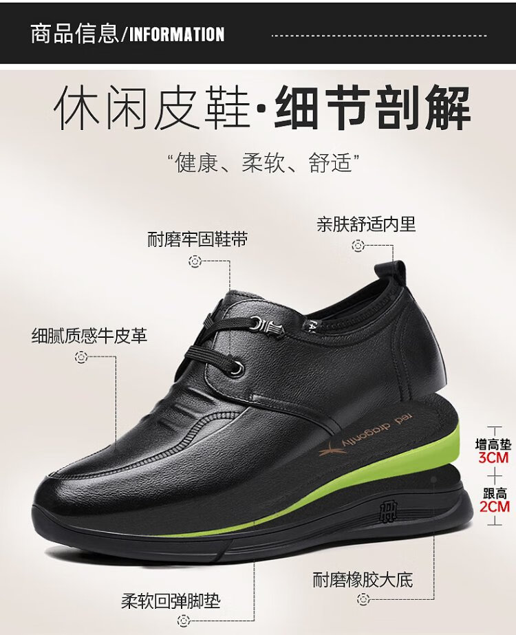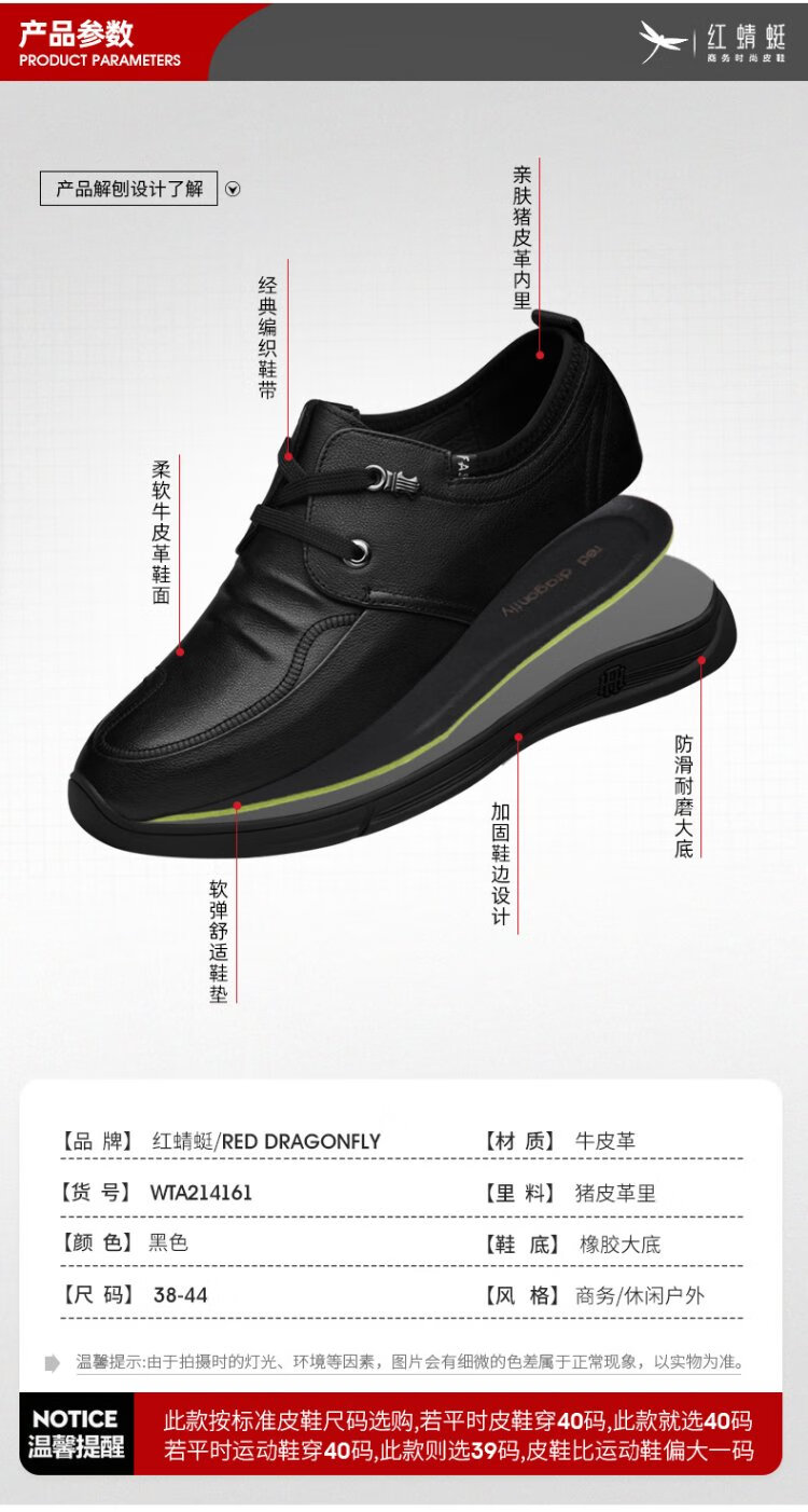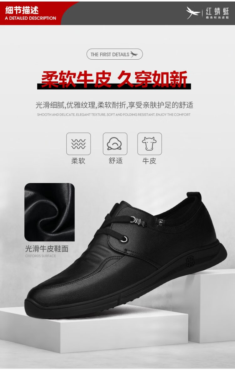 RED DRAGONFLY Men's Shoes Business Casual Shoes Men's Versatile Genuine Leather Soft Sole Commuting Leather Shoes Fashionable Low-top Lace-up Dress Shoes Men WTA214161 Black 41